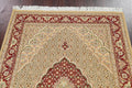 A Beautiful Genuine Pakistan Tabriz rug is Hand Knotted by skillful weavers in Pakistan with Wool & Silk Material. This rug is in New, First Quality condition. dimensions are 6' 4'' X 4' 0'' in foot and 193 X 122 in centimeter. the primary color is Beige & Ivories.