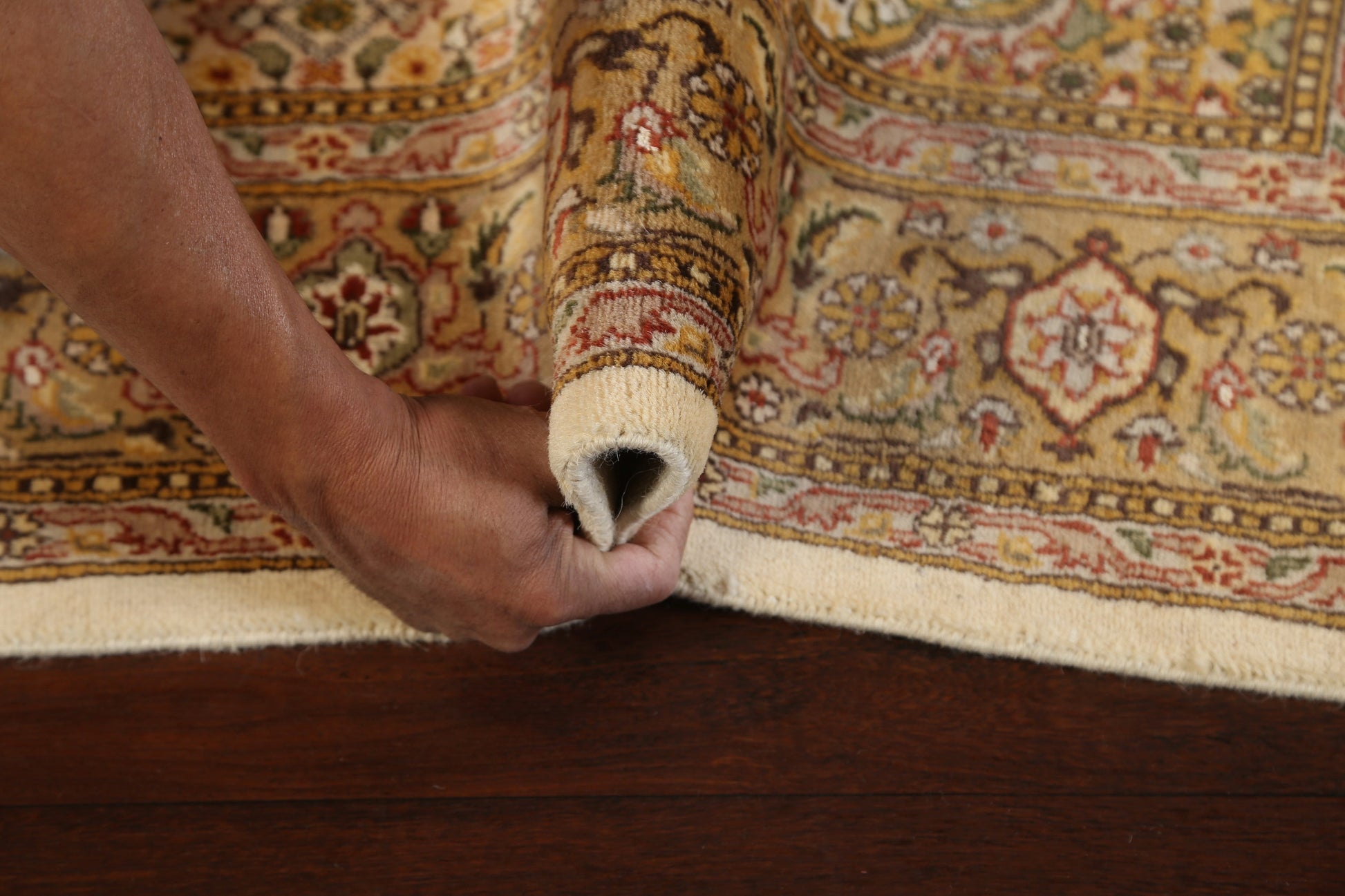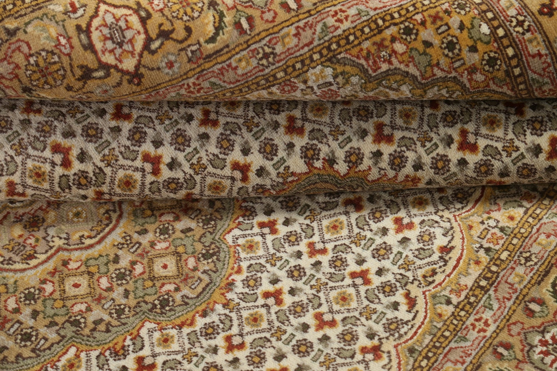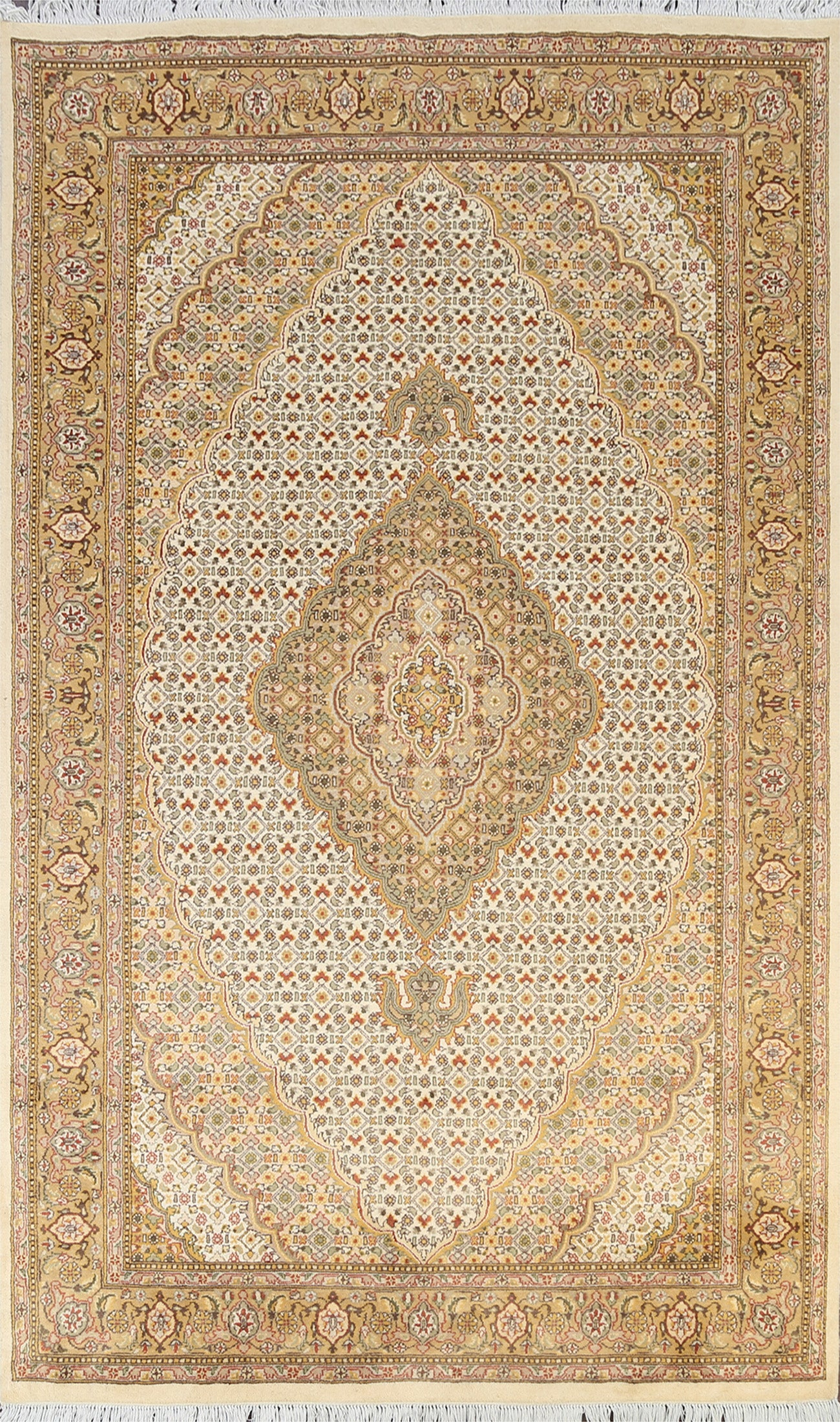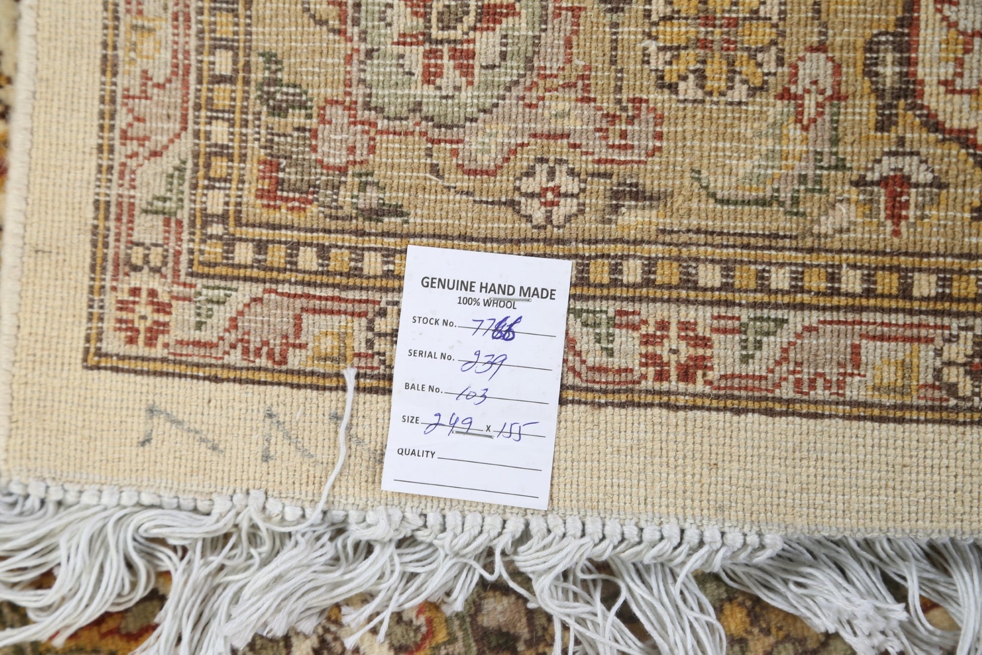 A Beautiful Genuine Pakistan Tabriz rug is Hand Knotted by skillful weavers in Pakistan with Wool & Silk Material. This rug is in New, First Quality condition. dimensions are 8' 2'' X 5' 1'' in foot and 249 X 155 in centimeter. the primary color is Beige & Ivories.