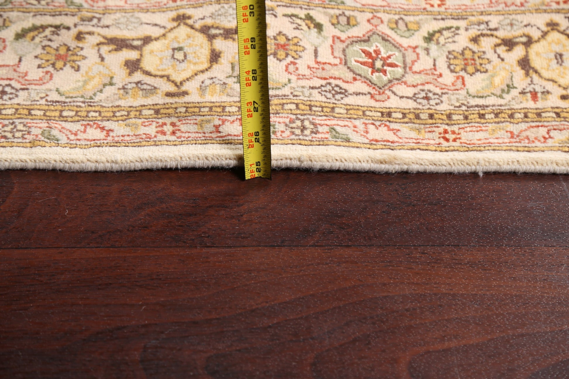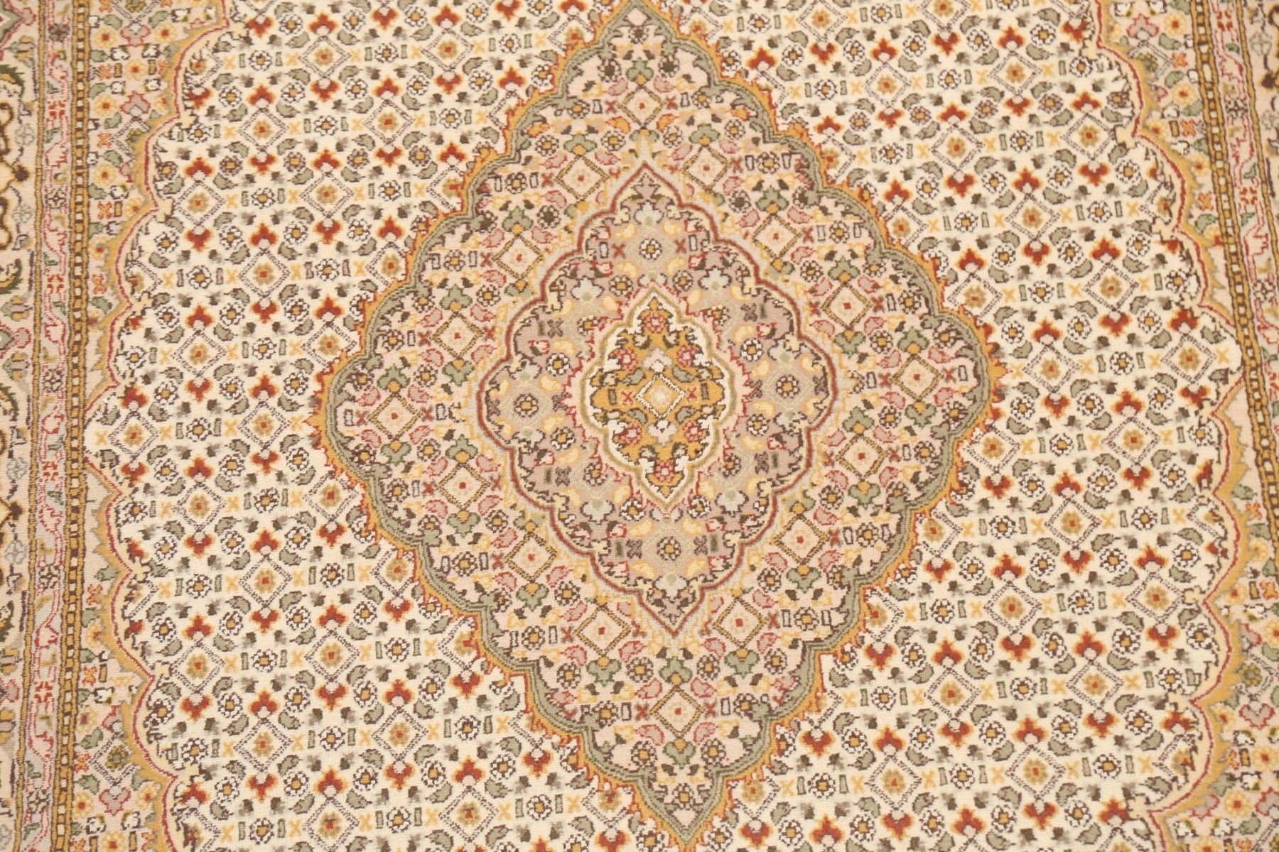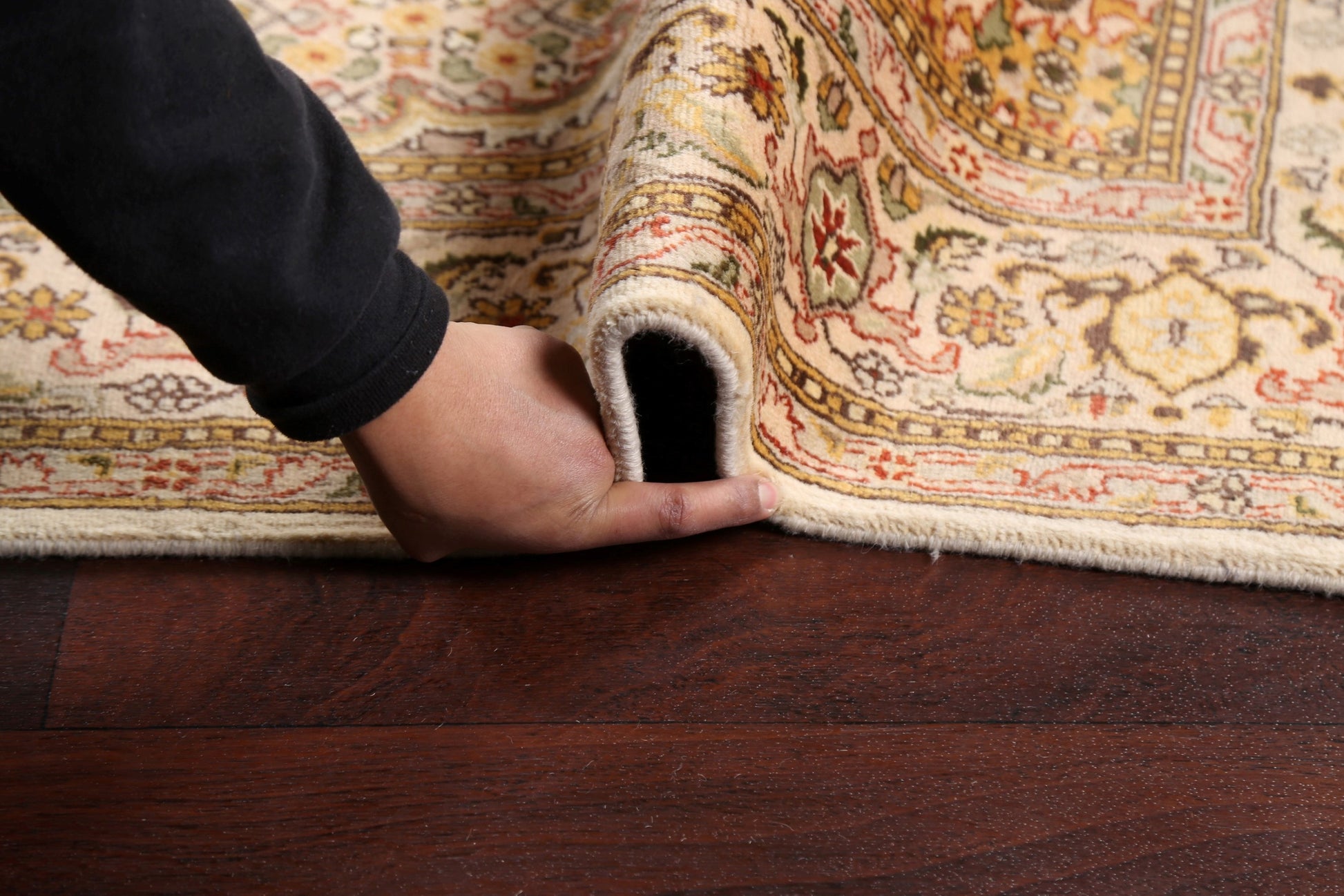 A Beautiful Genuine Pakistan Tabriz rug is Hand Knotted by skillful weavers in Pakistan with Wool & Silk Material. This rug is in New, First Quality condition. dimensions are 8' 9'' X 5' 0'' in foot and 267 X 152 in centimeter. the primary color is Beige & Ivories.