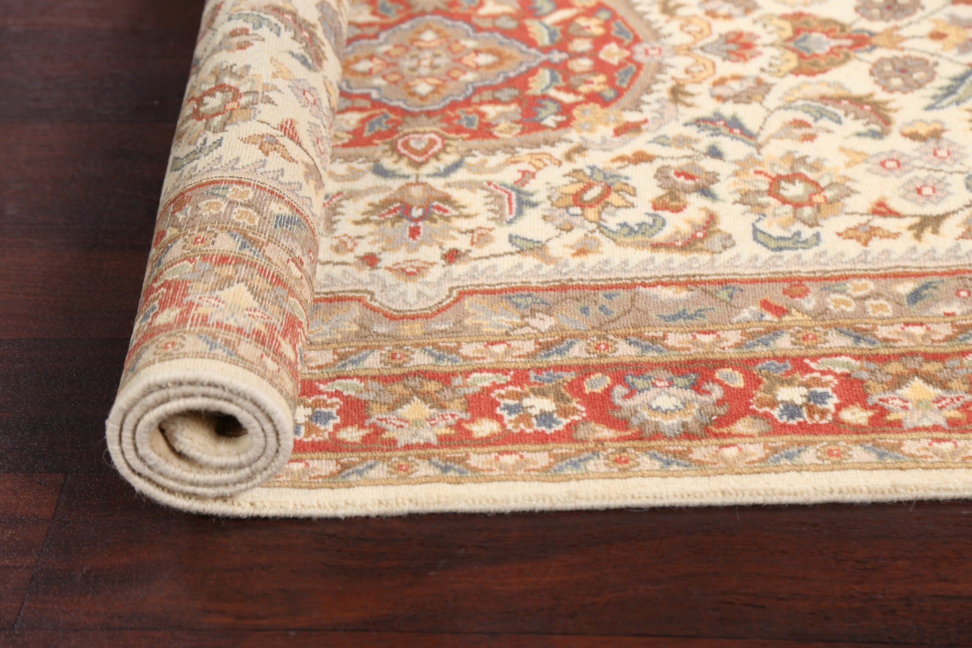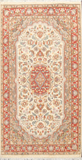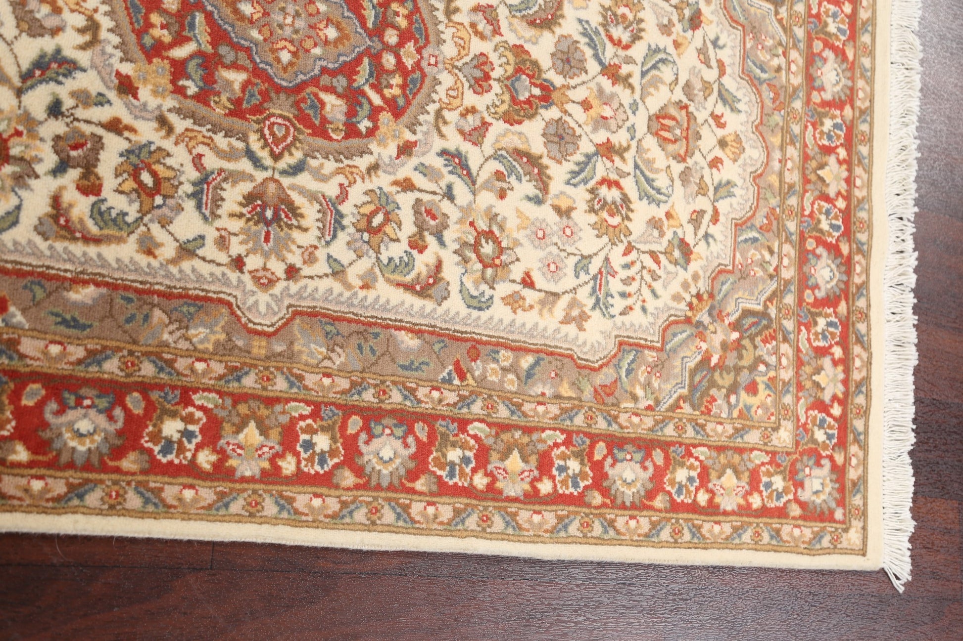 A Beautiful Genuine Pakistan Tabriz rug is Hand Knotted by skillful weavers in Pakistan with 100% Wool Material. This rug is in New, First Quality condition. dimensions are 5' 6'' X 3' 2'' in foot and 168 X 97 in centimeter. the primary color is Beige & Ivories.