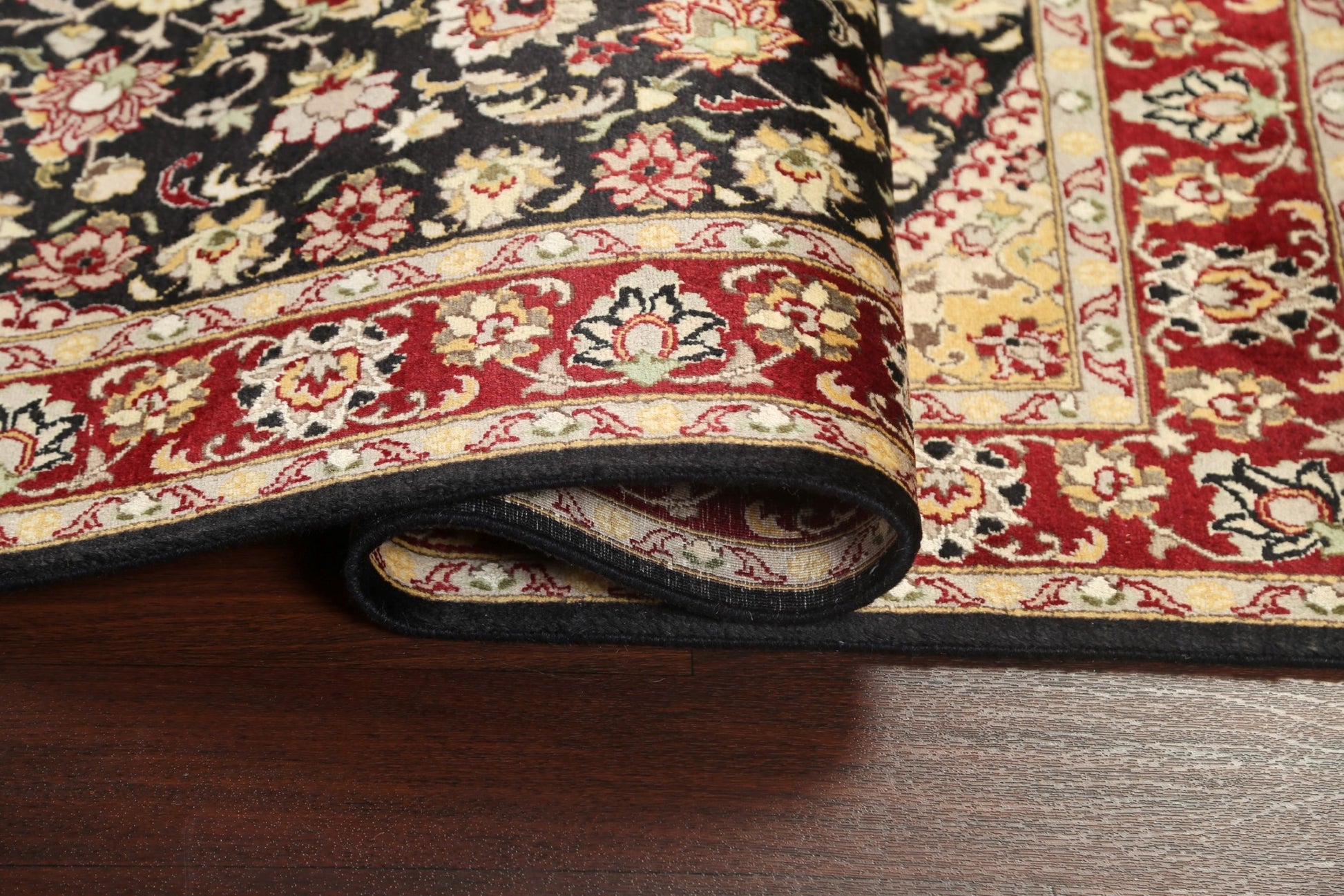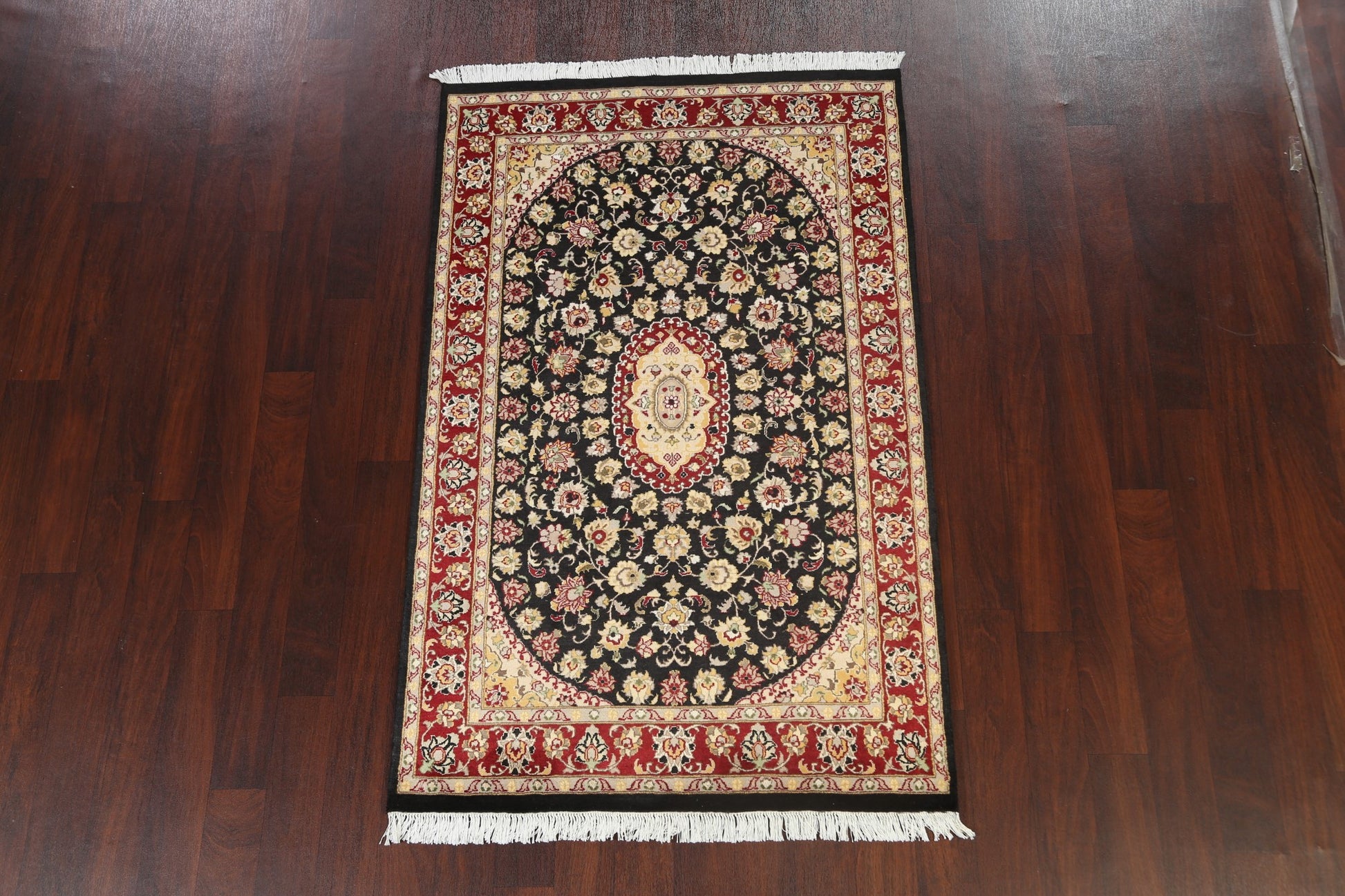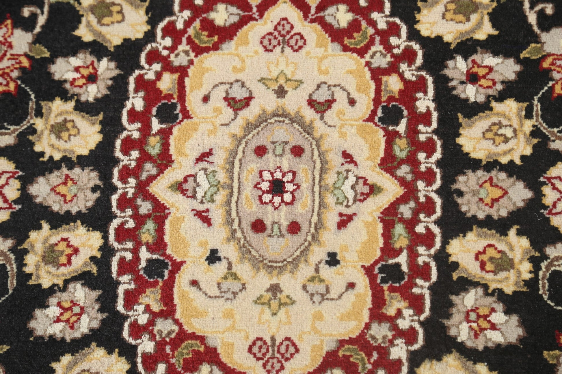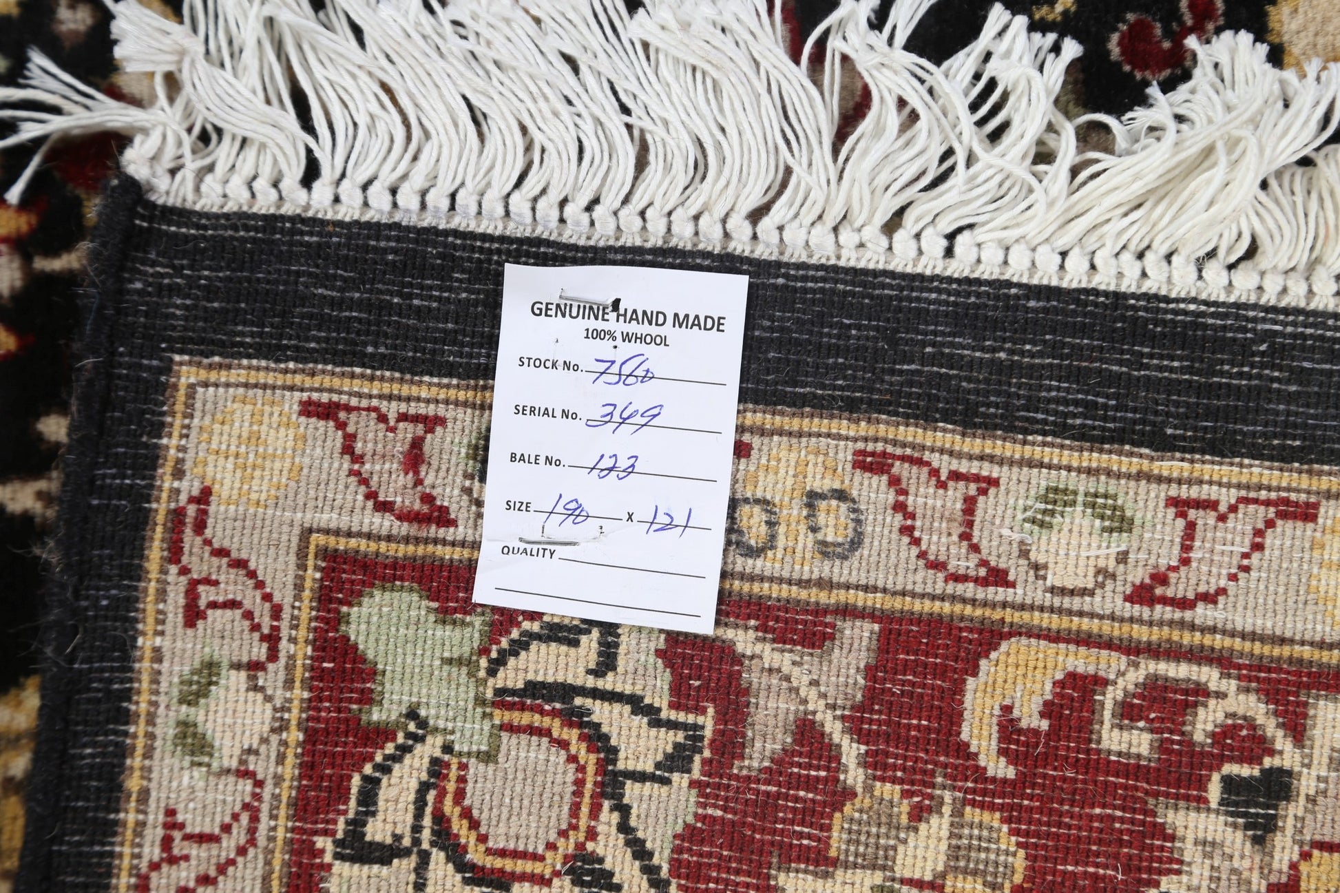 A Beautiful Genuine Pakistan Tabriz rug is Hand Knotted by skillful weavers in Pakistan with Wool & Silk Material. This rug is in New, First Quality condition. dimensions are 6' 3'' X 4' 0'' in foot and 191 X 122 in centimeter. the primary color is Black.