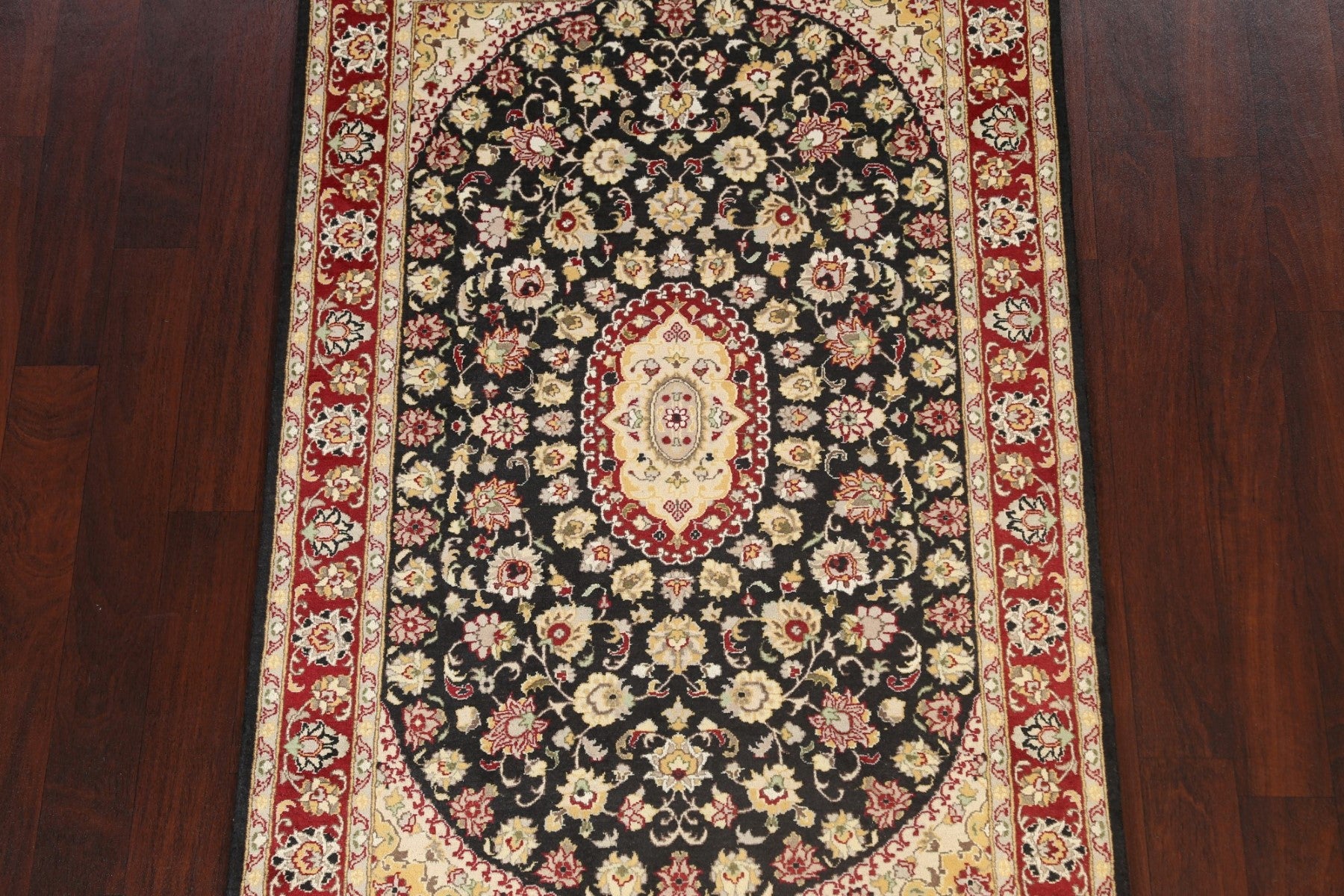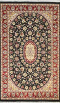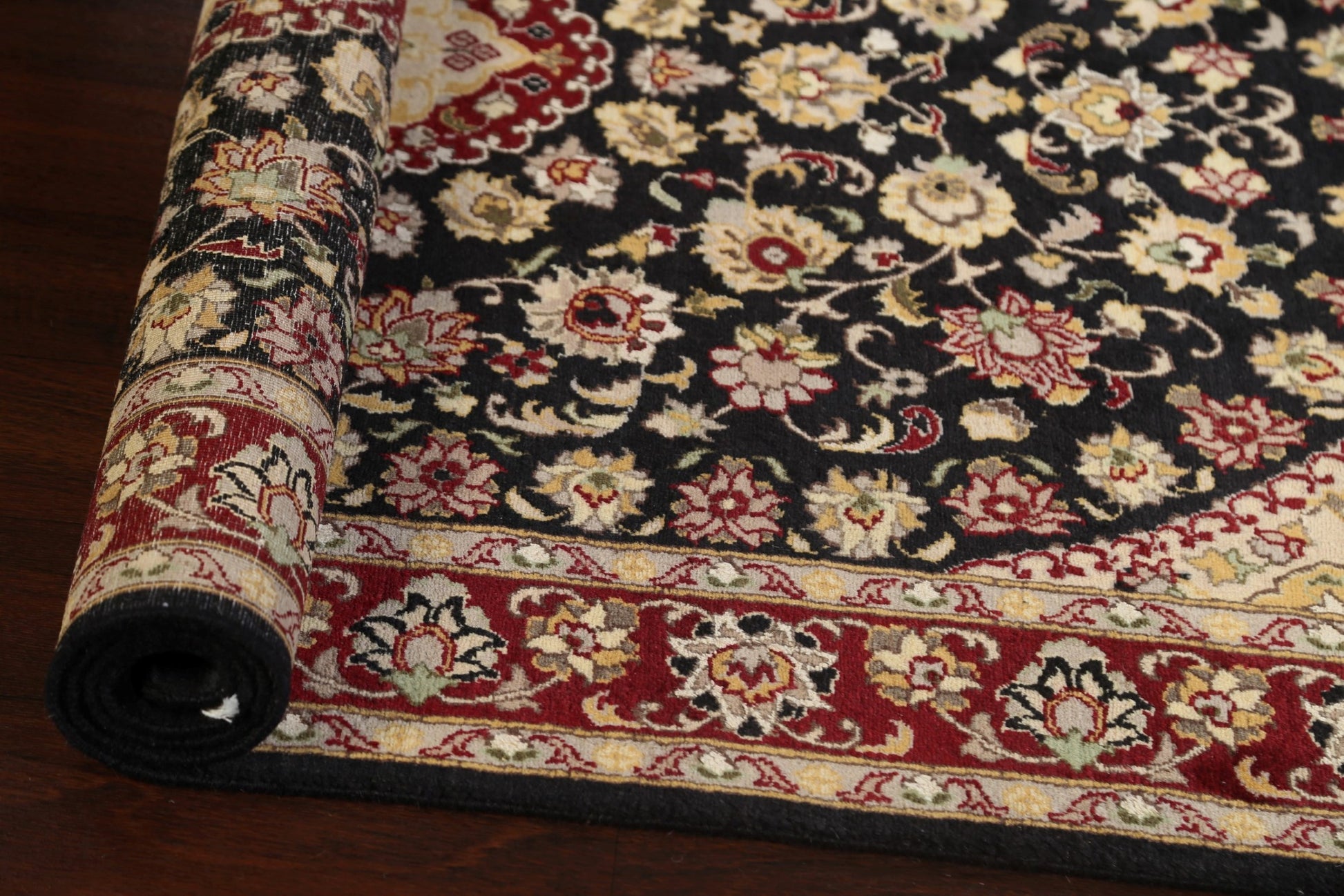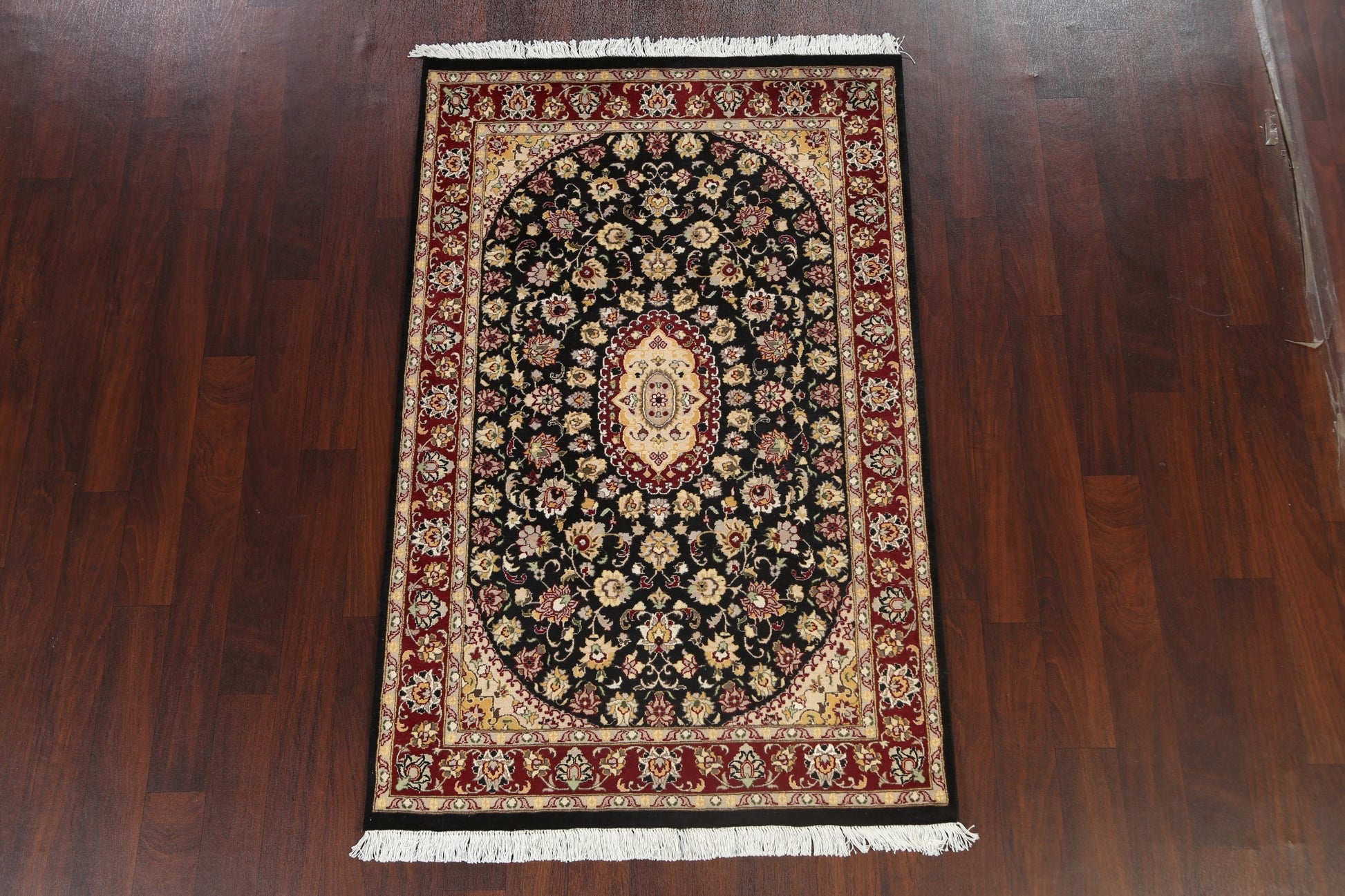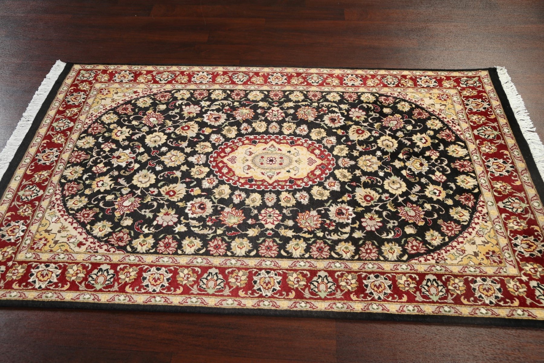 A Beautiful Genuine Pakistan Tabriz rug is Hand Knotted by skillful weavers in Pakistan with Wool & Silk Material. This rug is in New, First Quality condition. dimensions are 6' 3'' X 4' 0'' in foot and 191 X 122 in centimeter. the primary color is Black.