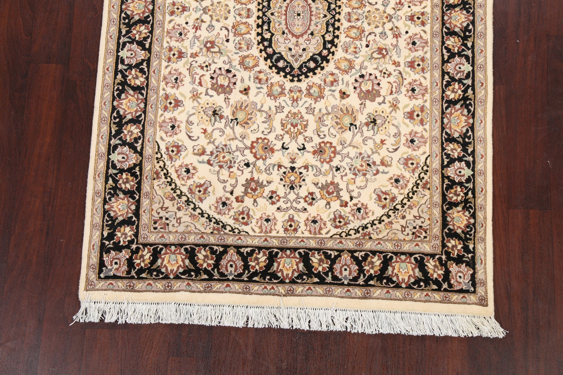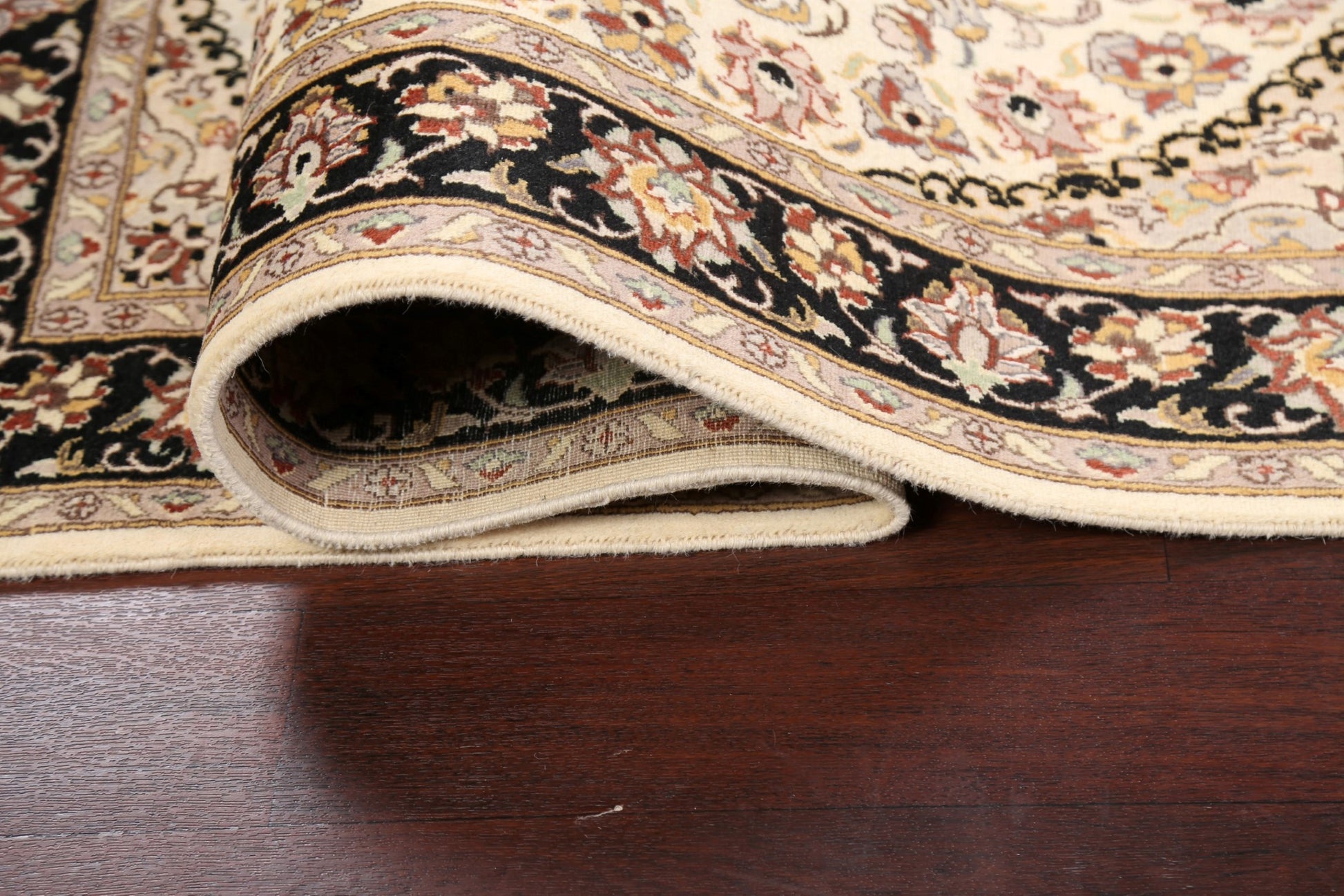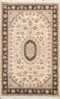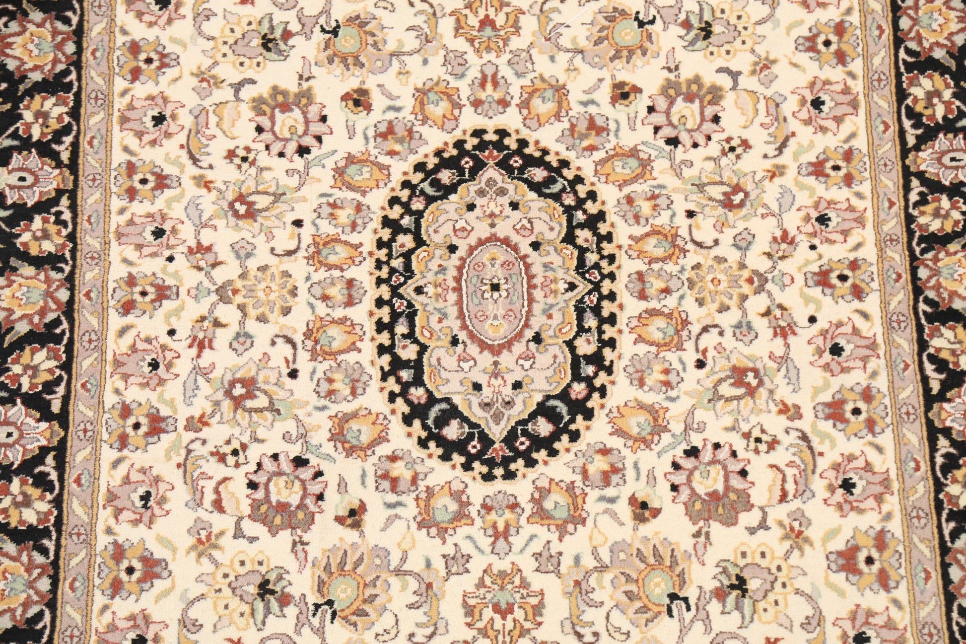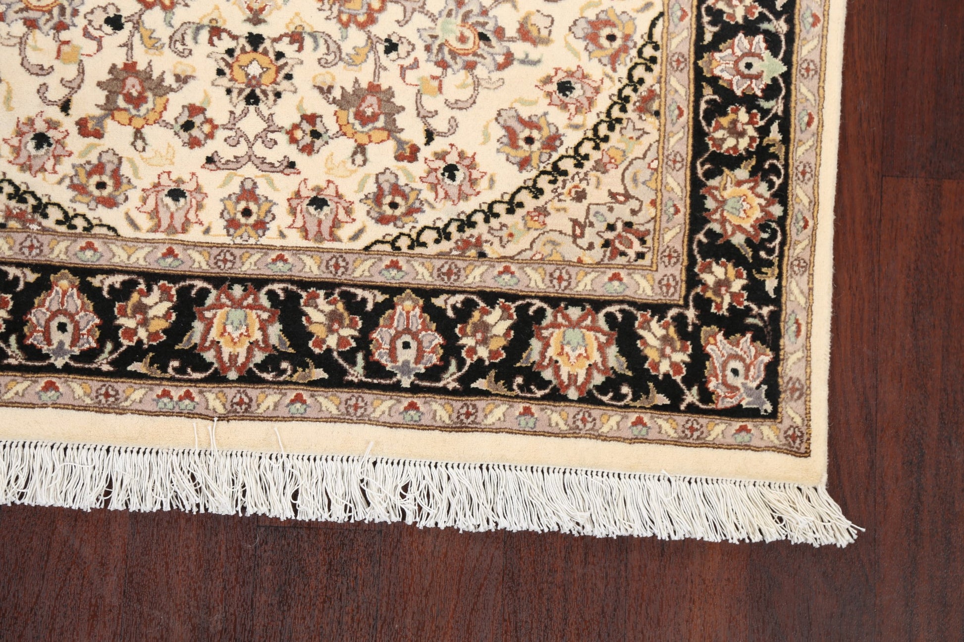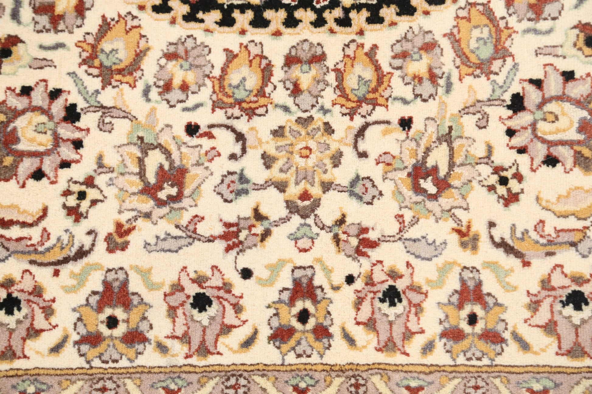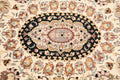 A Beautiful Genuine Pakistan Tabriz rug is Hand Knotted by skillful weavers in Pakistan with Wool & Silk Material. This rug is in New, First Quality condition. dimensions are 6' 2'' X 4' 0'' in foot and 188 X 122 in centimeter. the primary color is Beige & Ivories.