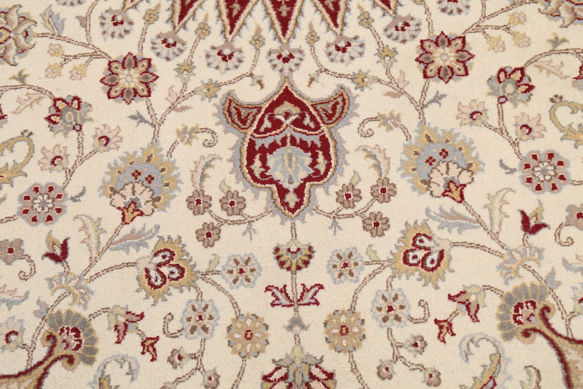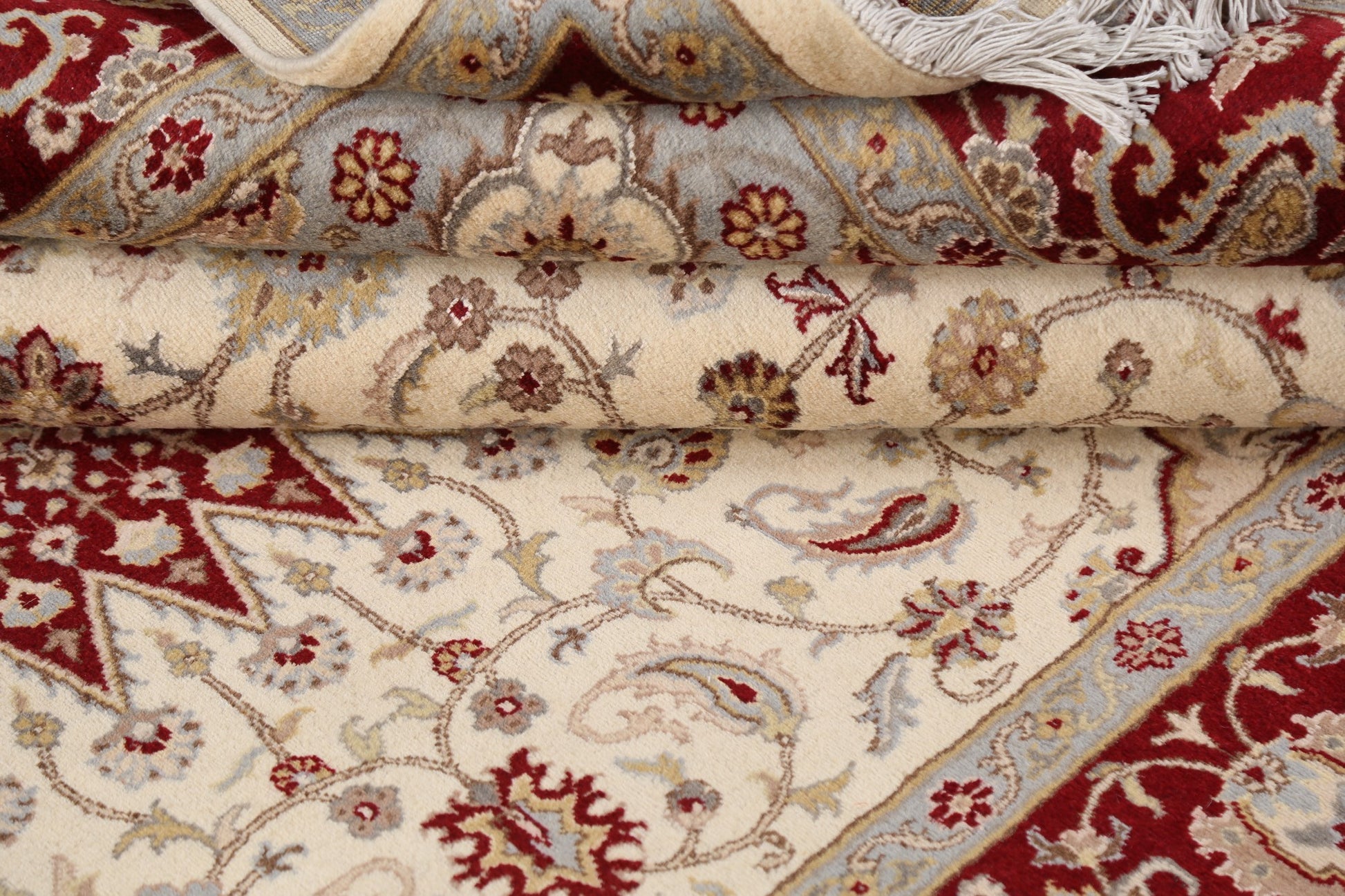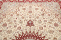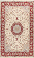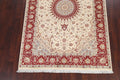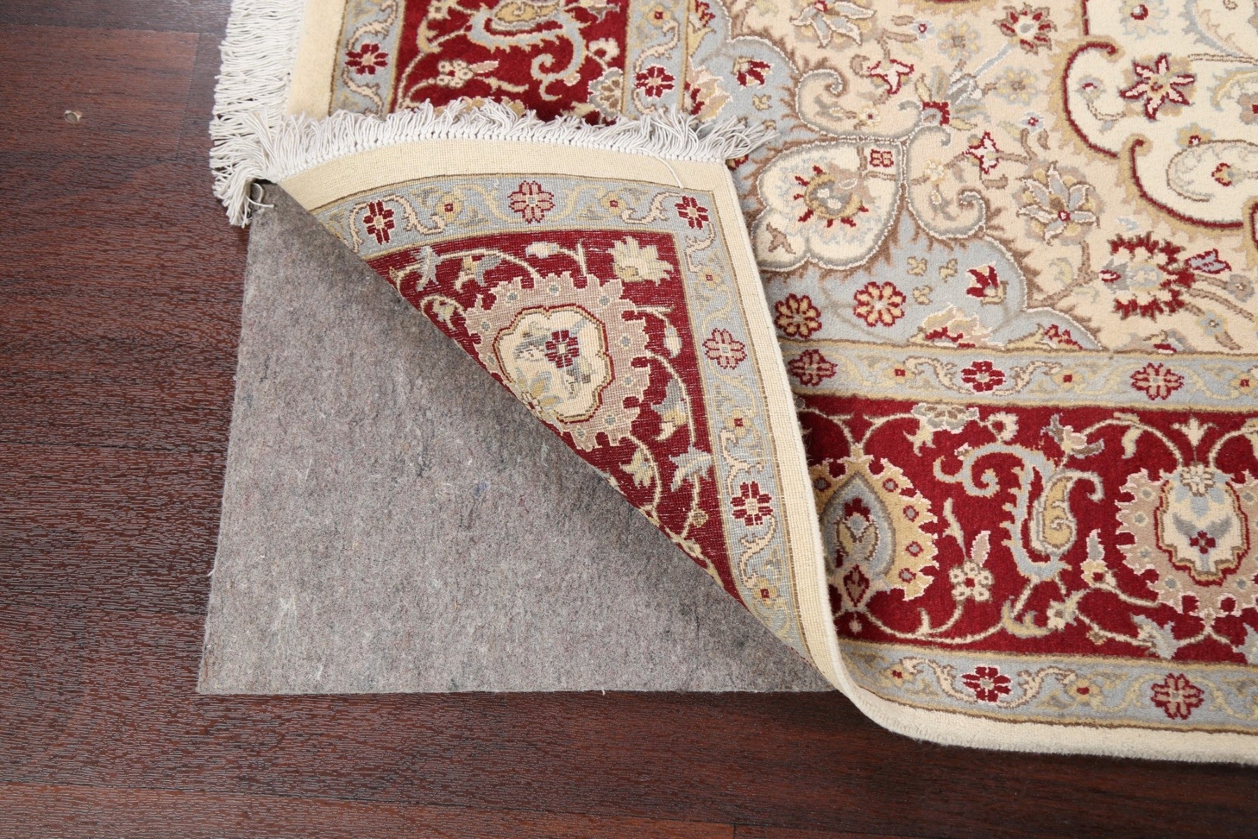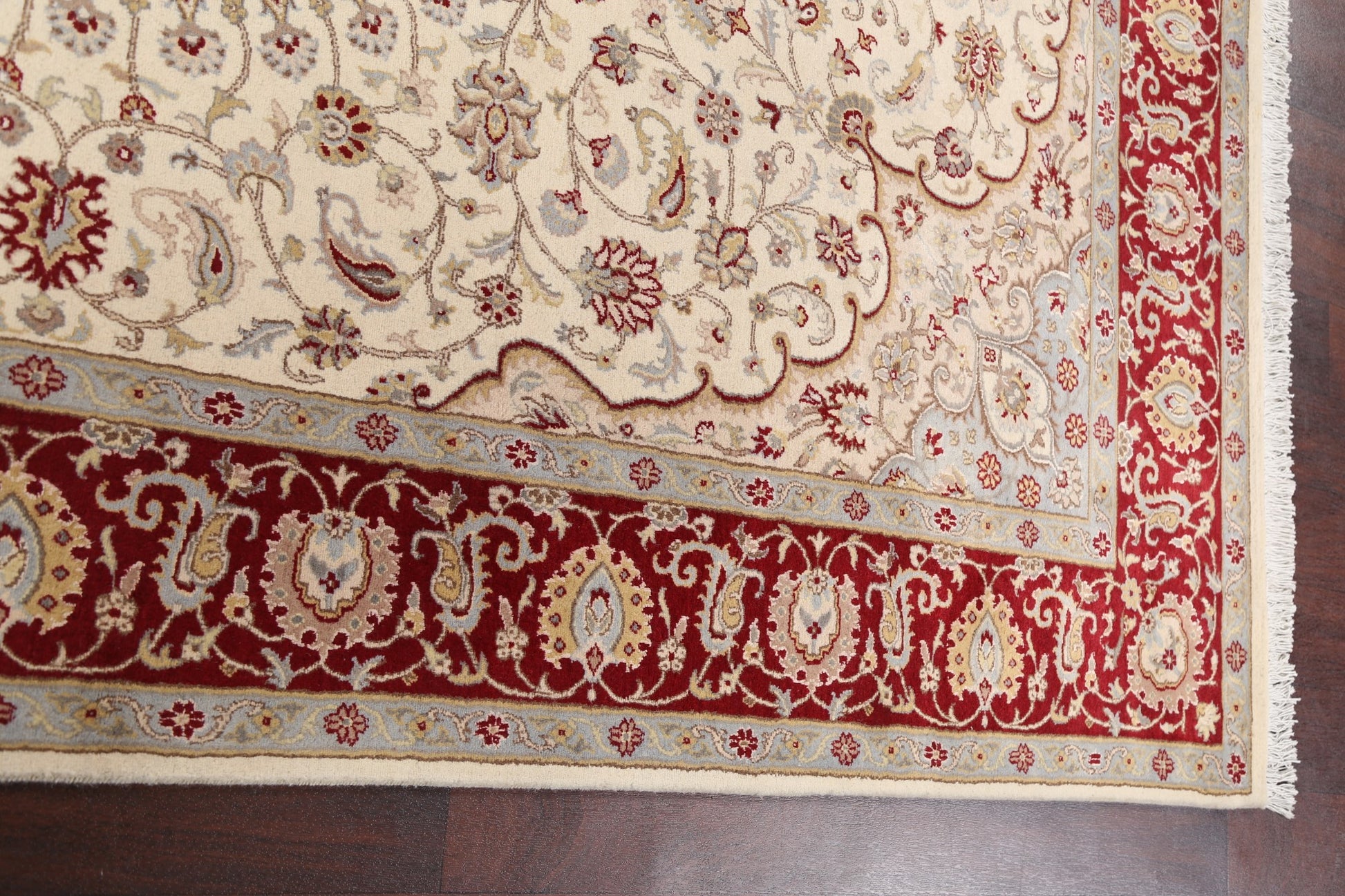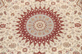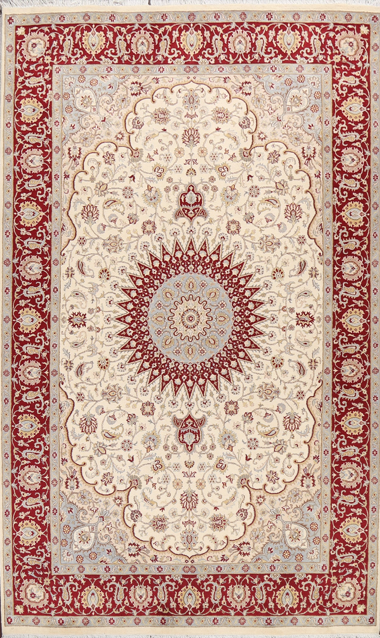 A Beautiful Genuine Pakistan Tabriz rug is Hand Knotted by skillful weavers in Pakistan with Wool & Silk Material. This rug is in New, First Quality condition. dimensions are 9' 3'' X 6' 1'' in foot and 282 X 185 in centimeter. the primary color is Beige & Ivories.