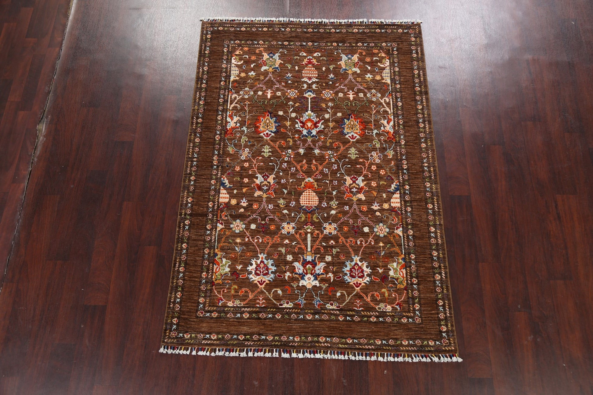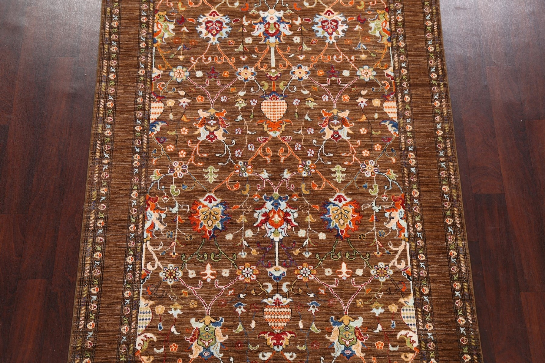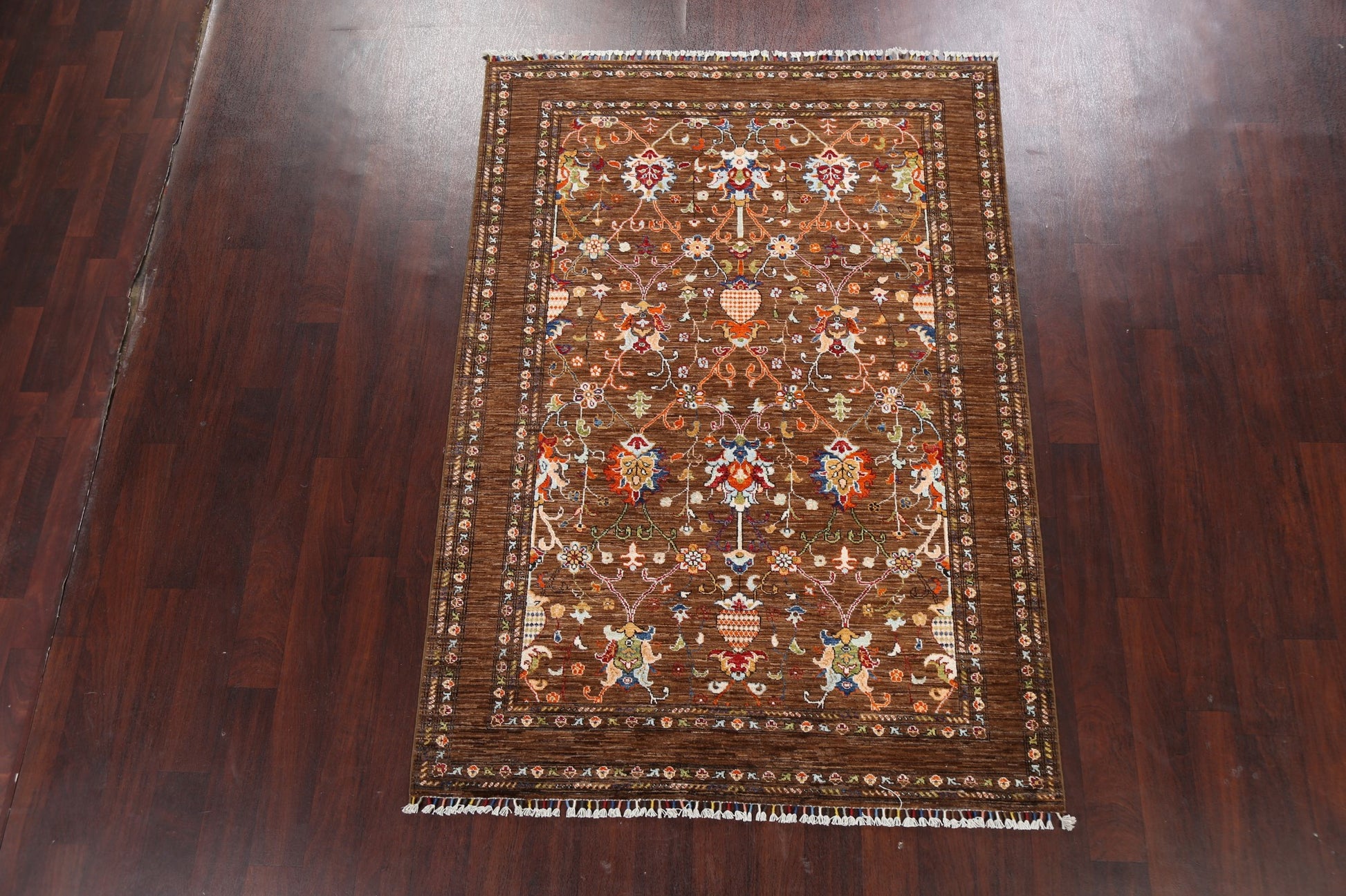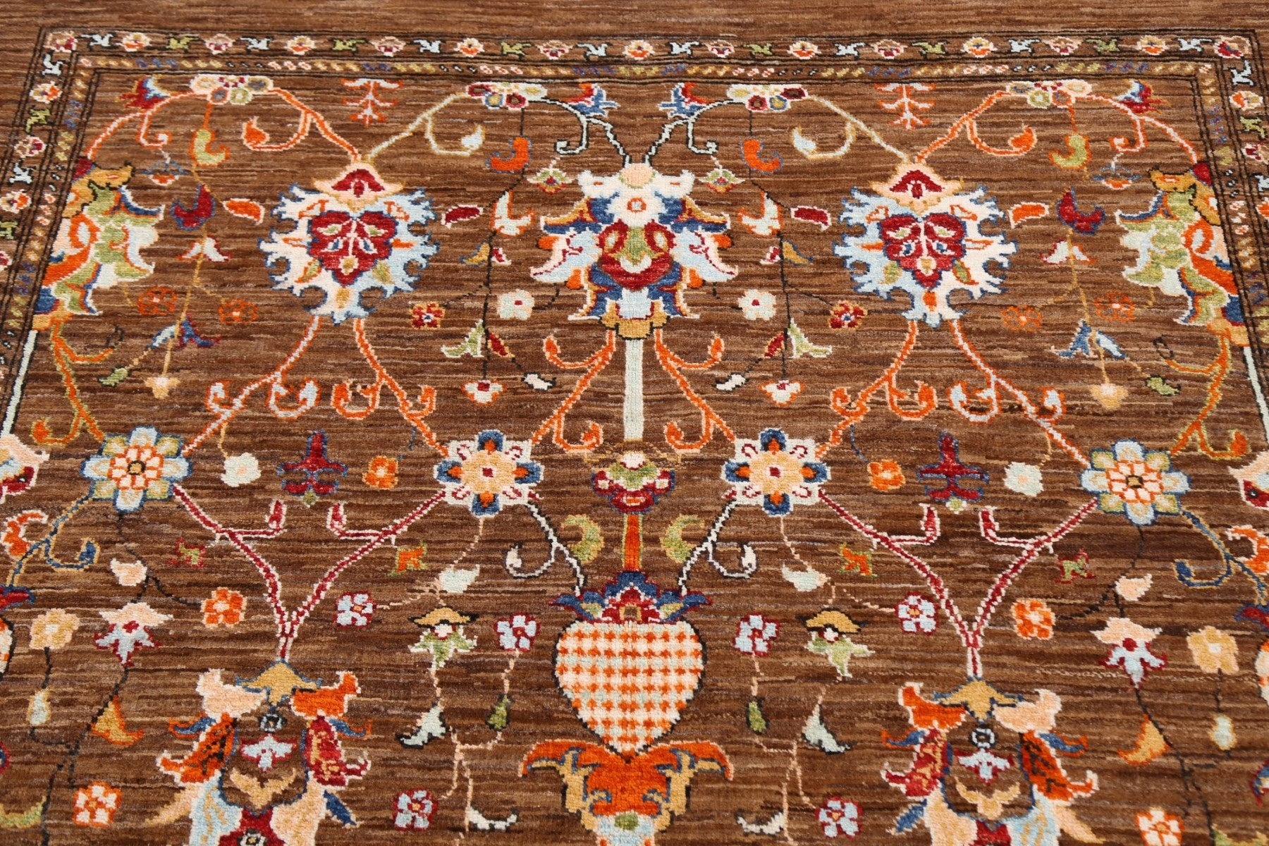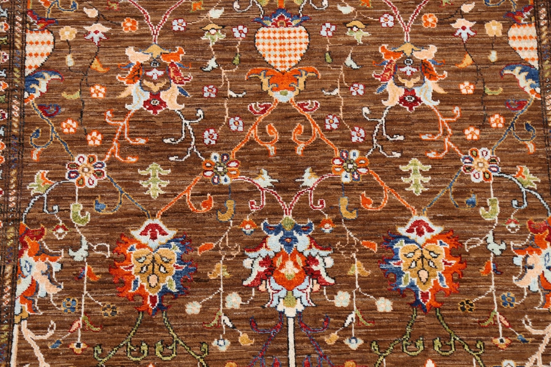 A Beautiful Genuine Pakistan Ziegler rug is Hand Knotted by skillful weavers in Pakistan with 100% Wool Material. This rug is in New, First Quality condition. dimensions are 7' 0'' X 4' 11'' in foot and 213 X 150 in centimeter. the primary color is Brown.