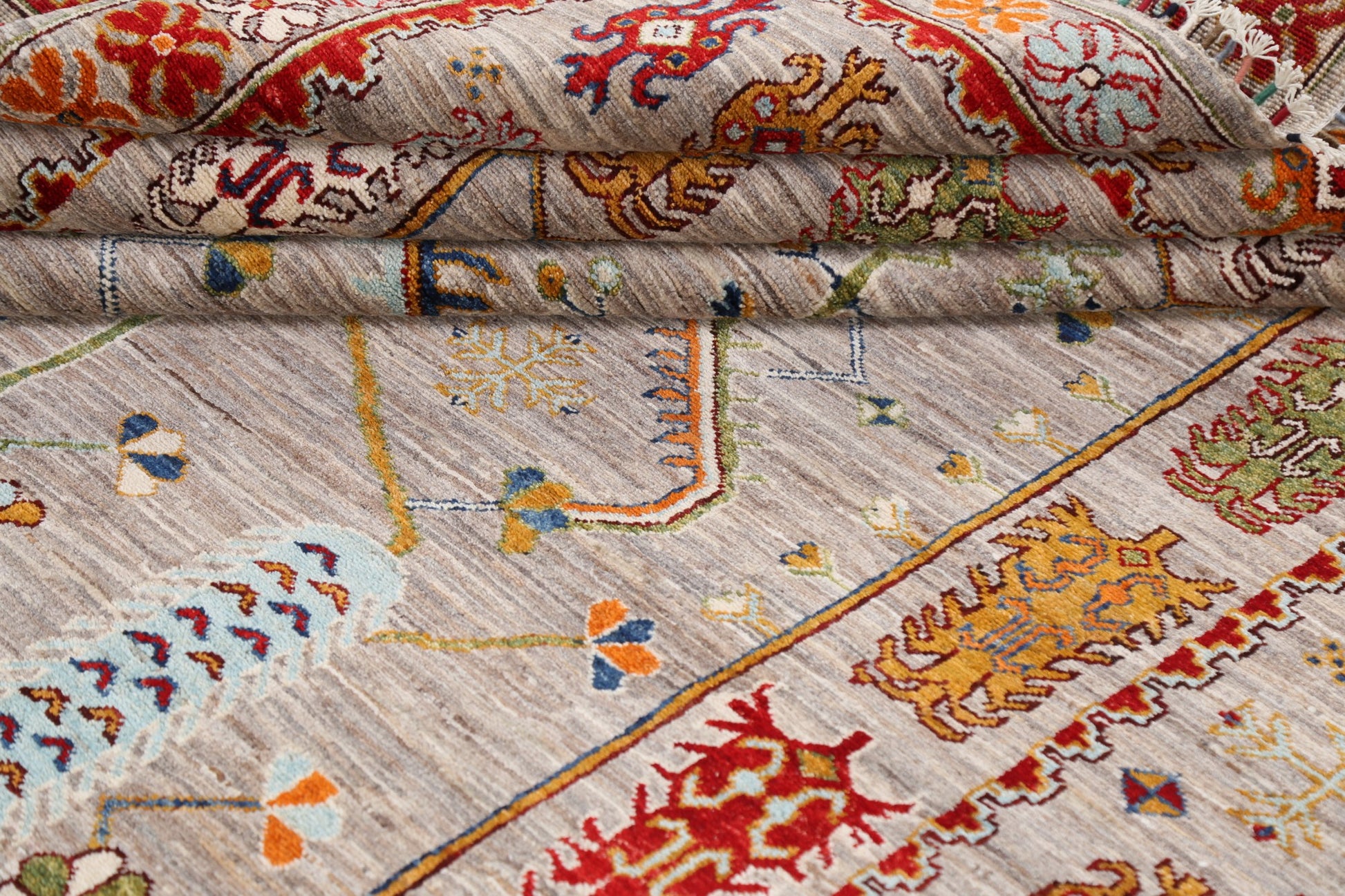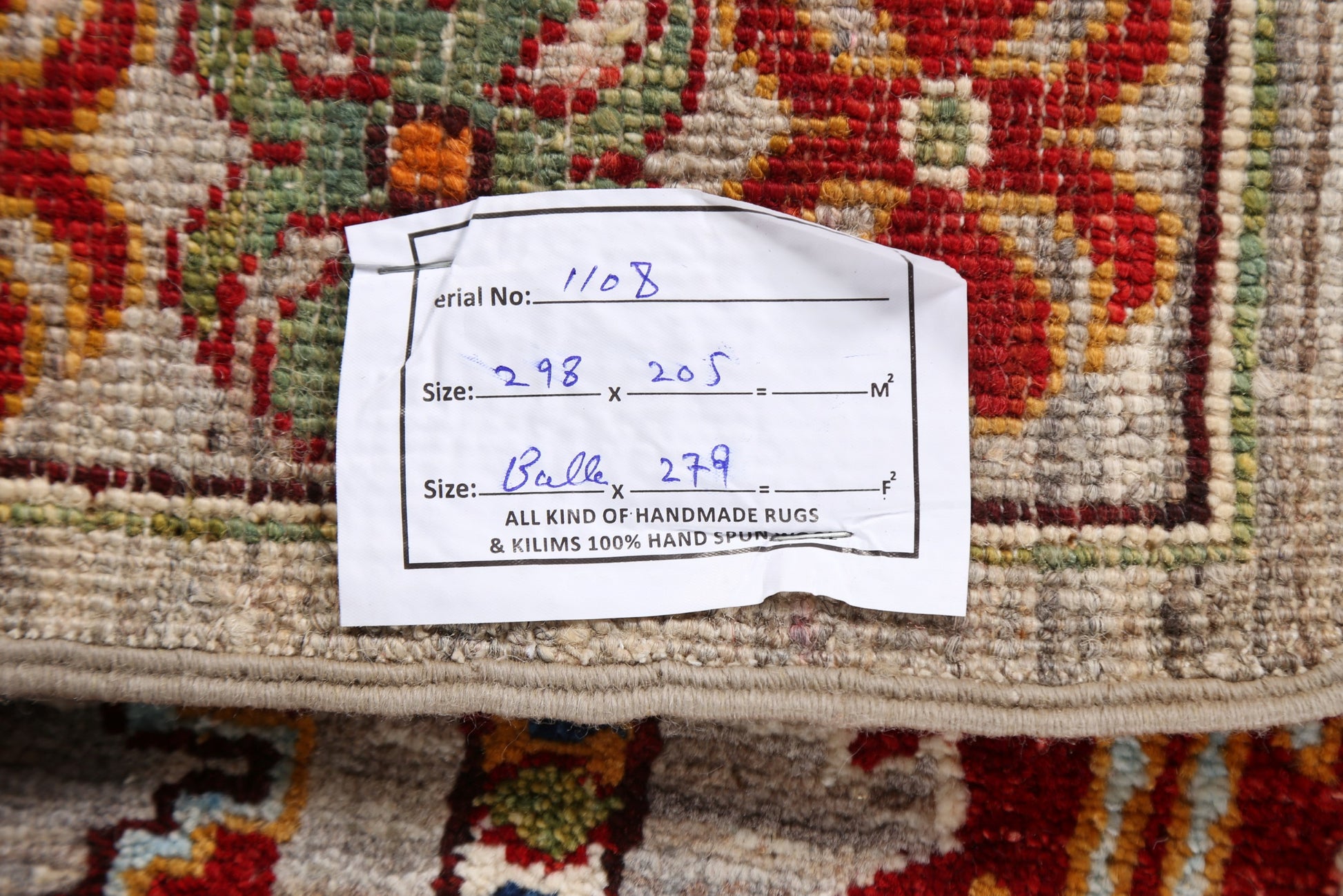 A Beautiful Genuine Pakistan Ziegler rug is Hand Knotted by skillful weavers in Pakistan with 100% Wool Material. This rug is in New, First Quality condition. dimensions are 9' 10'' X 6' 9'' in foot and 300 X 206 in centimeter. the primary color is Beige & Ivories.