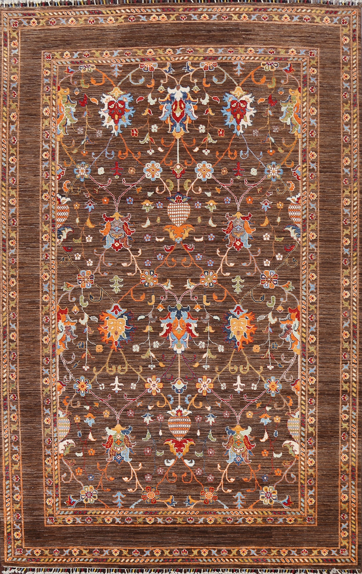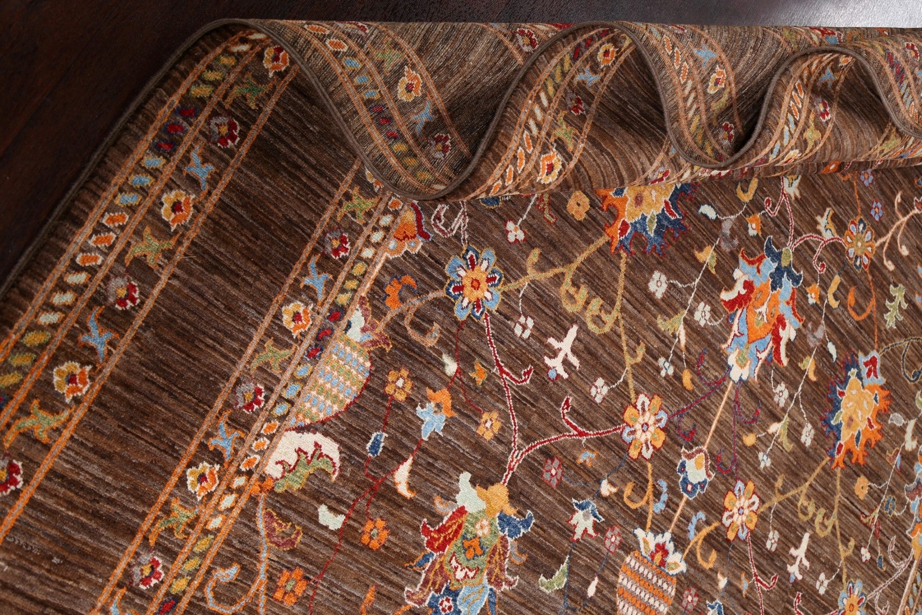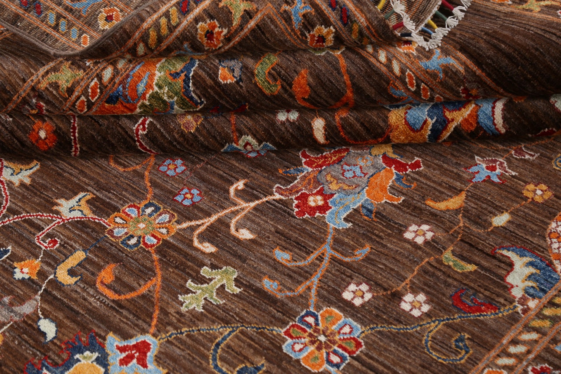A Beautiful Genuine Pakistan Ziegler rug is Hand Knotted by skillful weavers in Pakistan with 100% Wool Material. This rug is in New, First Quality condition. dimensions are 9' 8'' X 6' 6'' in foot and 295 X 198 in centimeter. the primary color is Brown.