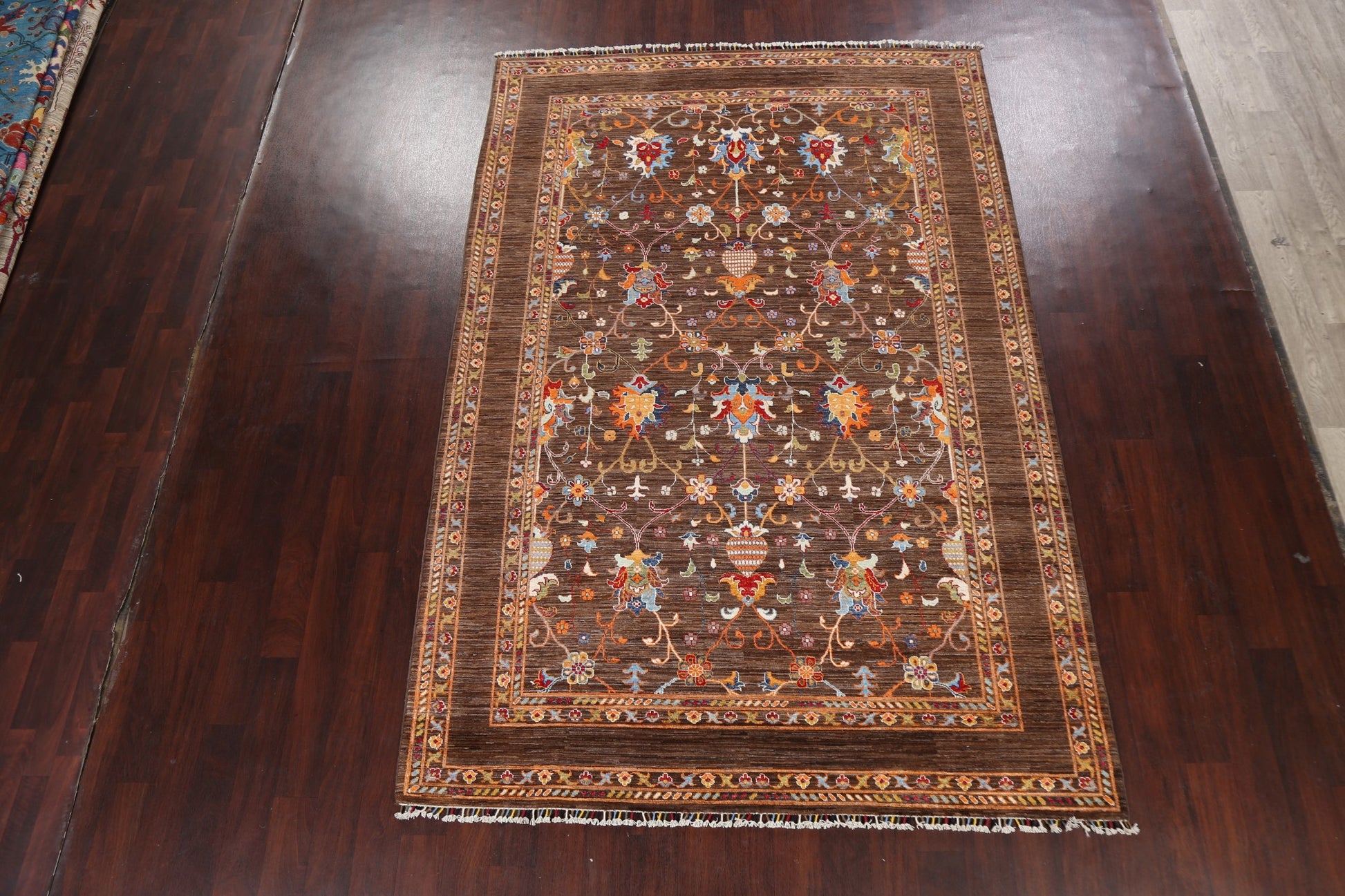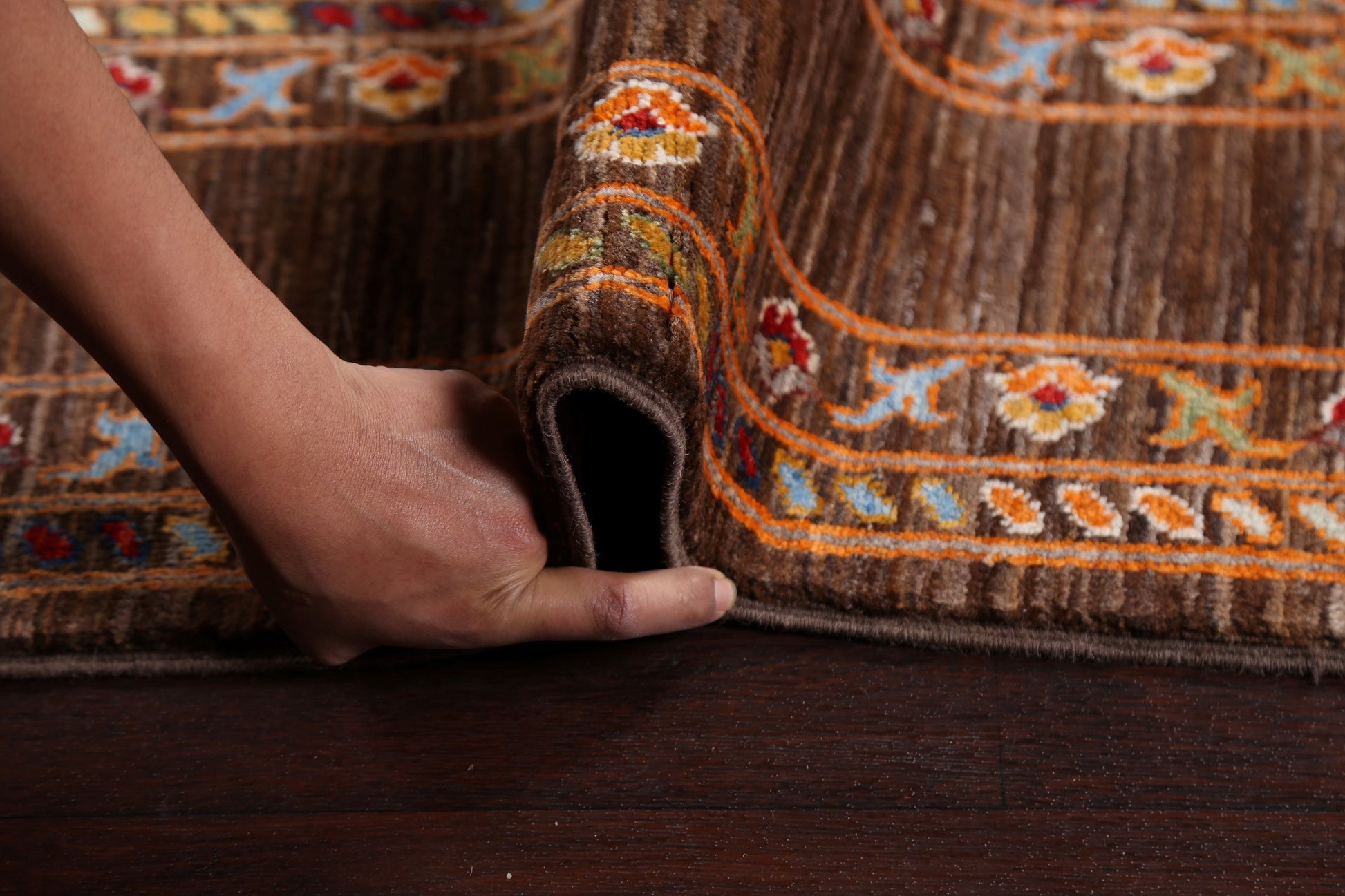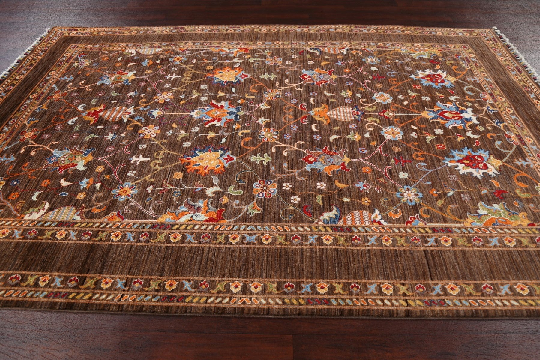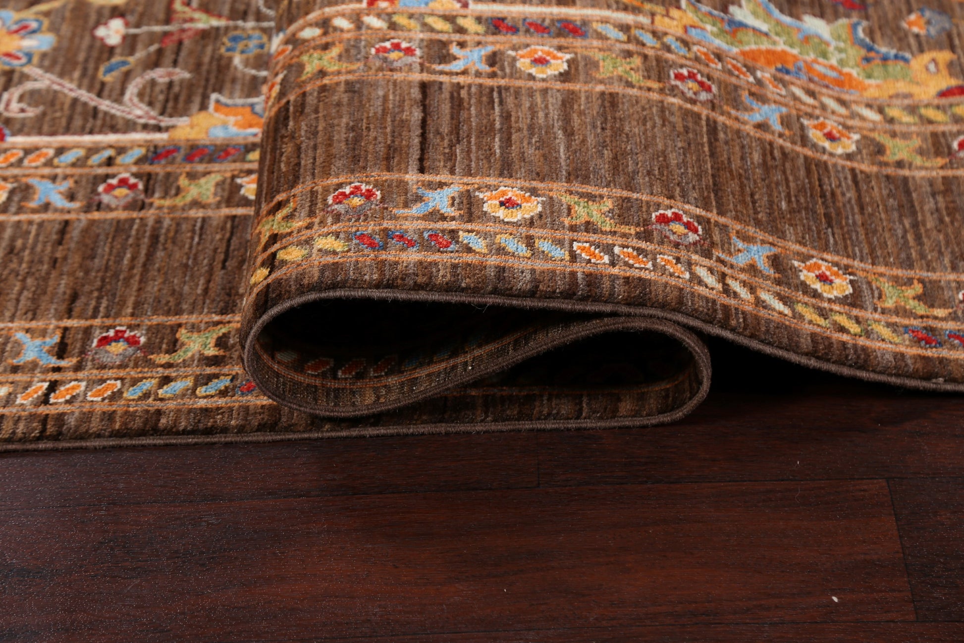 A Beautiful Genuine Pakistan Ziegler rug is Hand Knotted by skillful weavers in Pakistan with 100% Wool Material. This rug is in New, First Quality condition. dimensions are 9' 8'' X 6' 6'' in foot and 295 X 198 in centimeter. the primary color is Brown.