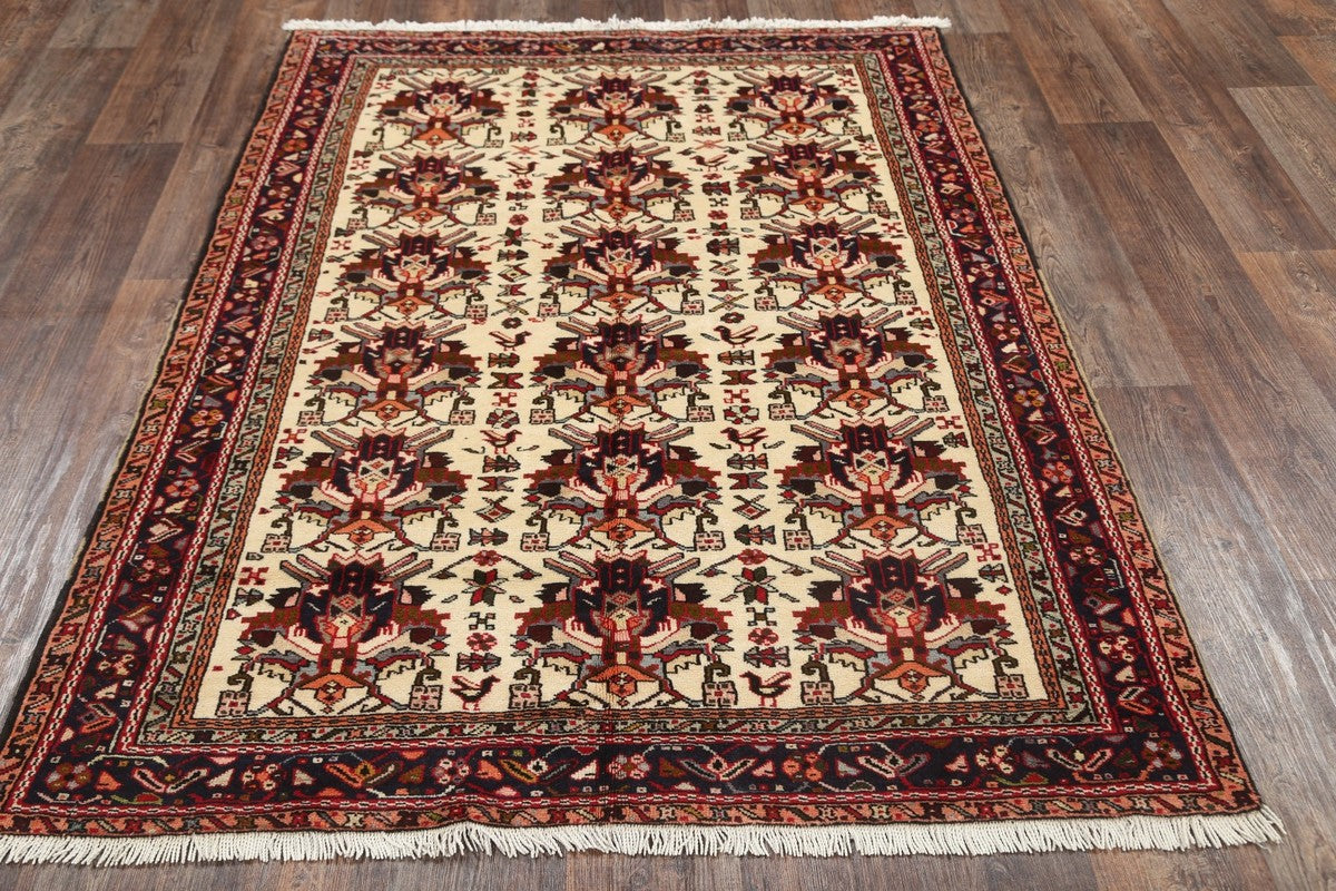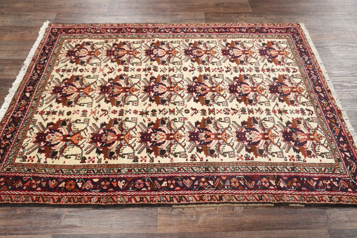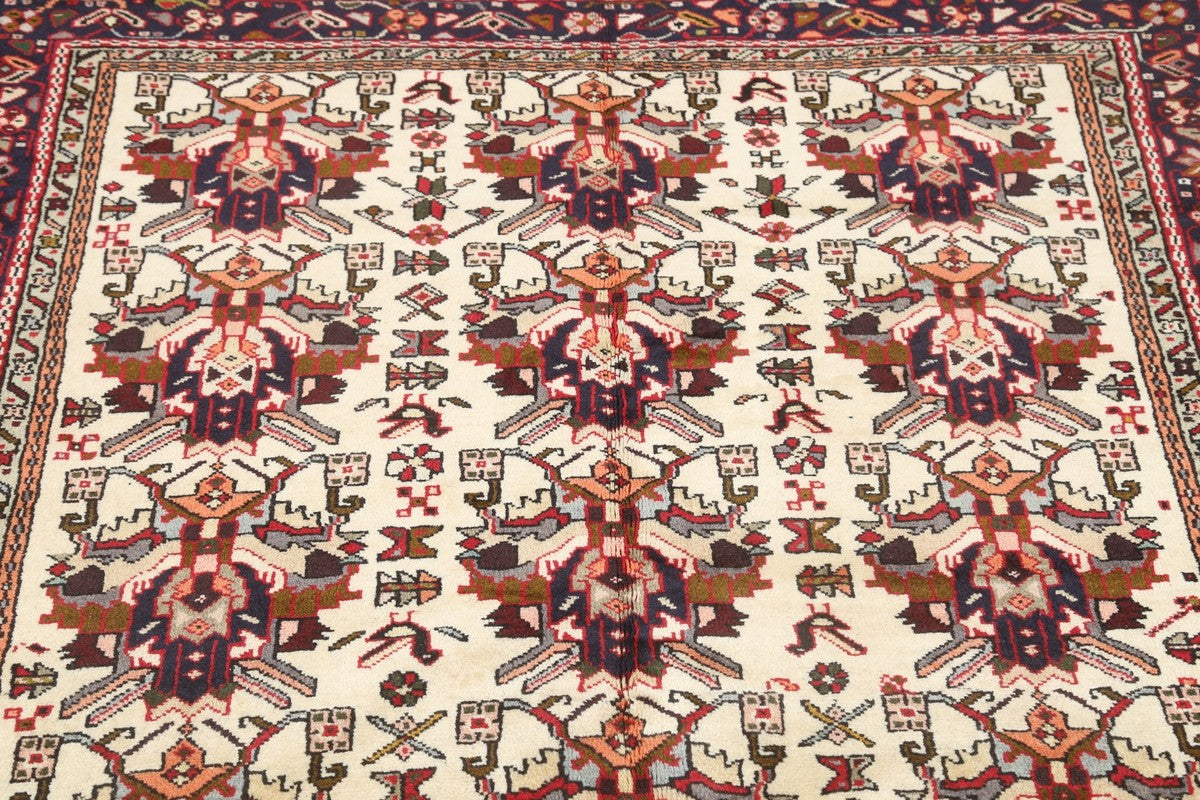 A Beautiful Genuine Persia ( Persia ) Gharajeh rug is Hand Knotted by skillful weavers in Persia ( Persia ) with 100% Wool Material. This rug is in New, First Quality condition. dimensions are 6' 5'' X 5' 0'' in foot and 196 X 152 in centimeter. the primary color is Beige & Ivories.