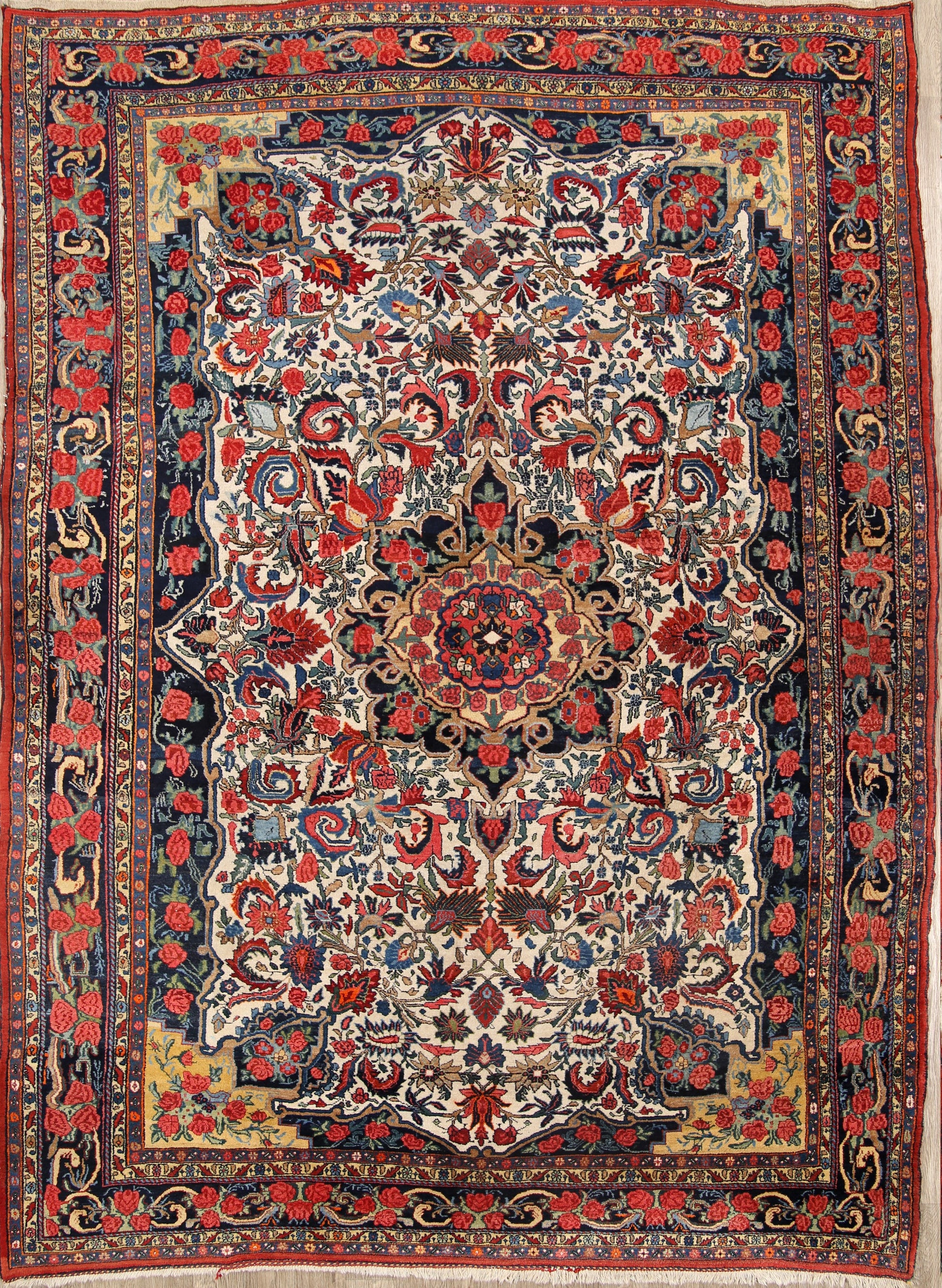 A Beautiful Genuine Persia ( Persia ) Bidjar (Halvaei) rug is Hand Knotted by skillful weavers in Persia ( Persia ) with 100% Wool Material. This rug is in Very Good condition. dimensions are 12' 6'' X 8' 7'' in foot and 381 X 262 in centimeter. the primary color is Beige & Ivories.