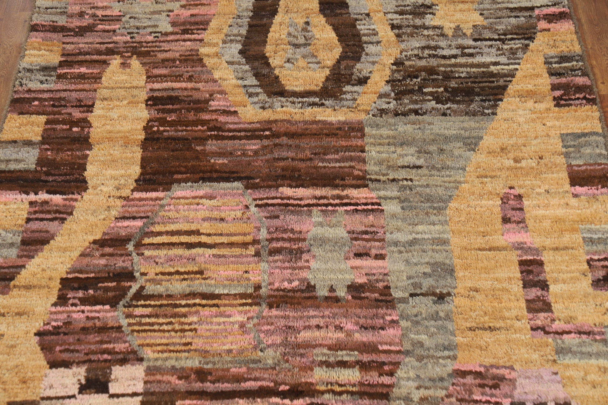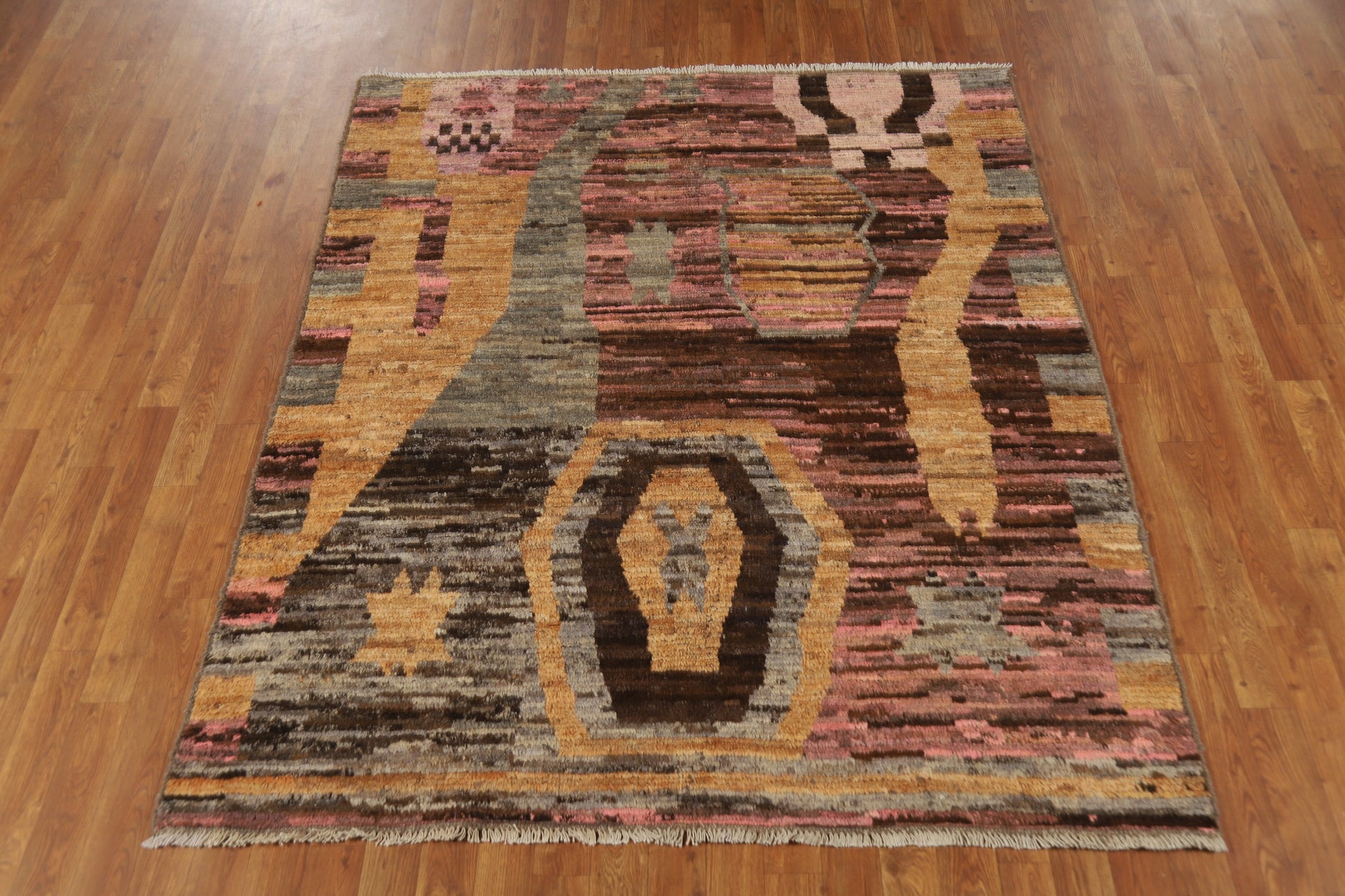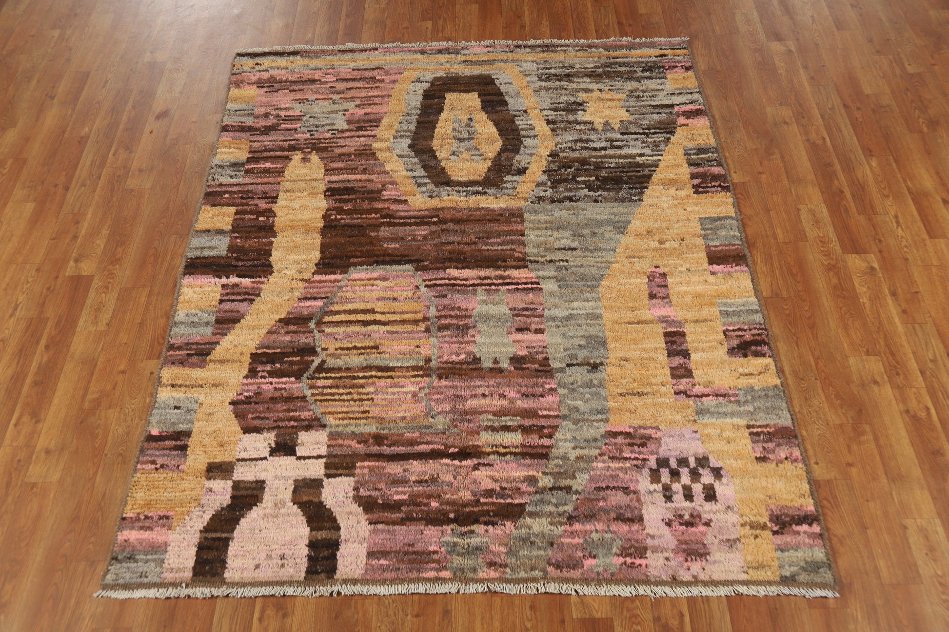 A Beautiful Genuine Pakistan Moroccan rug is Hand Knotted by skillful weavers in Pakistan with 100% Wool Material. This rug is in New, First Quality condition. dimensions are 6' 6'' X 5' 3'' in foot and 198 X 160 in centimeter. the primary color is Multi-Colored.