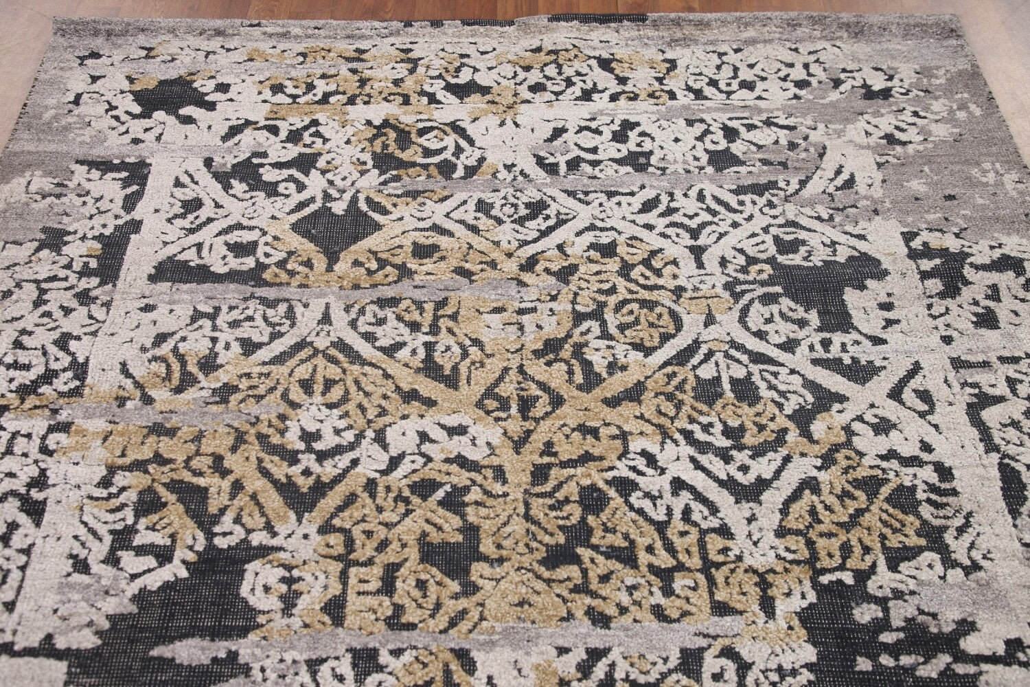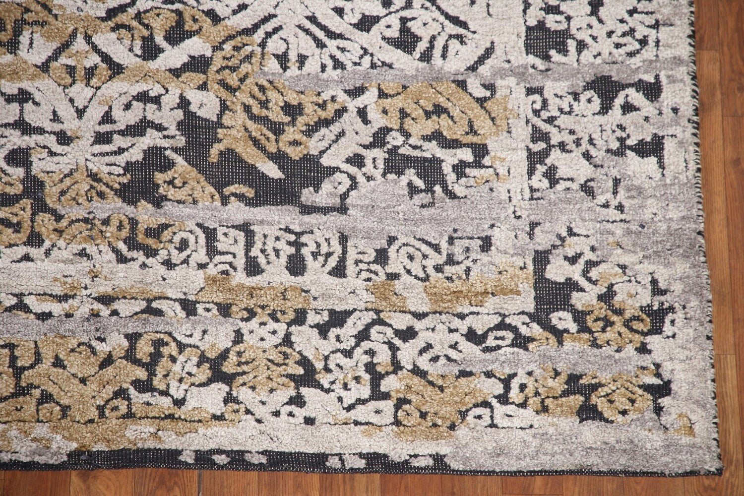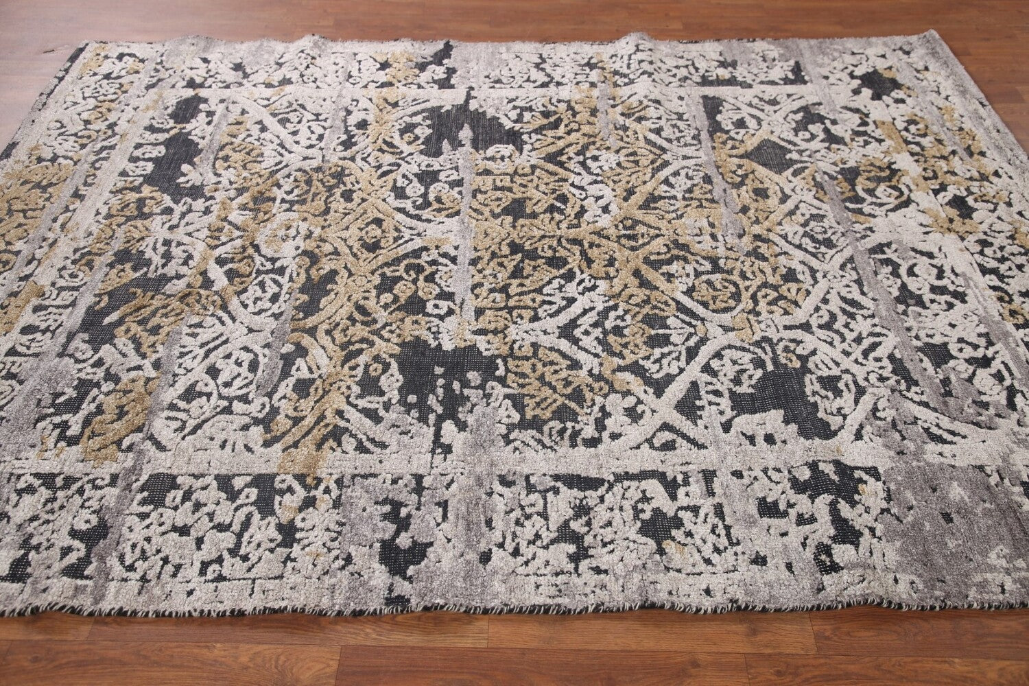 A Beautiful Genuine India Abstract rug is Hand Knotted by skillful weavers in India with 100% Wool Material. This rug is in New, First Quality condition. dimensions are 7' 9'' X 5' 10'' in foot and 236 X 178 in centimeter. the primary color is Greys & Charcoal.