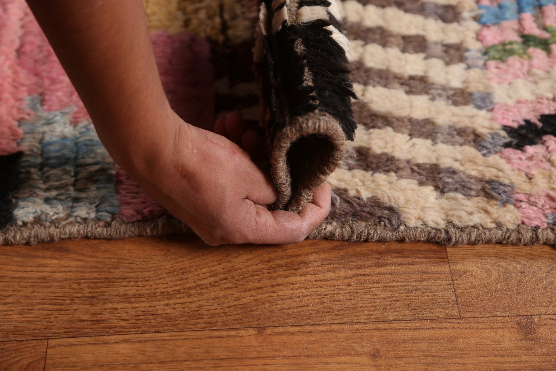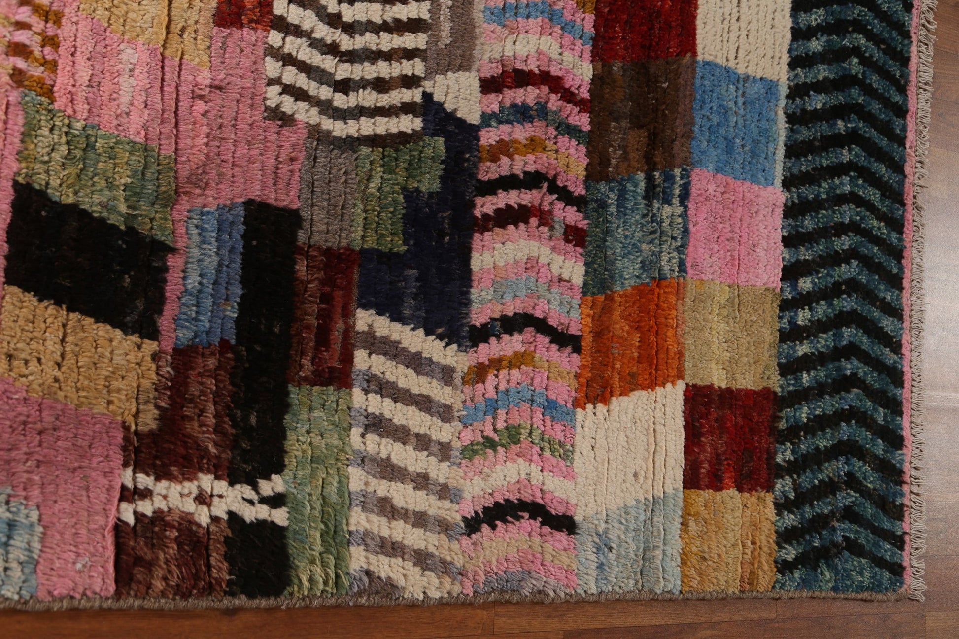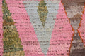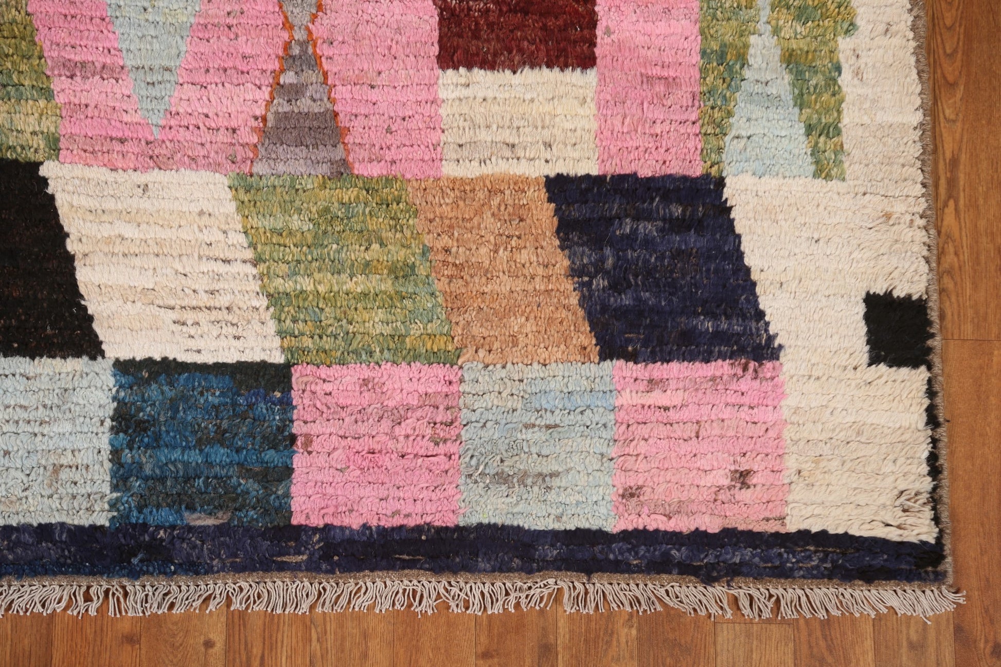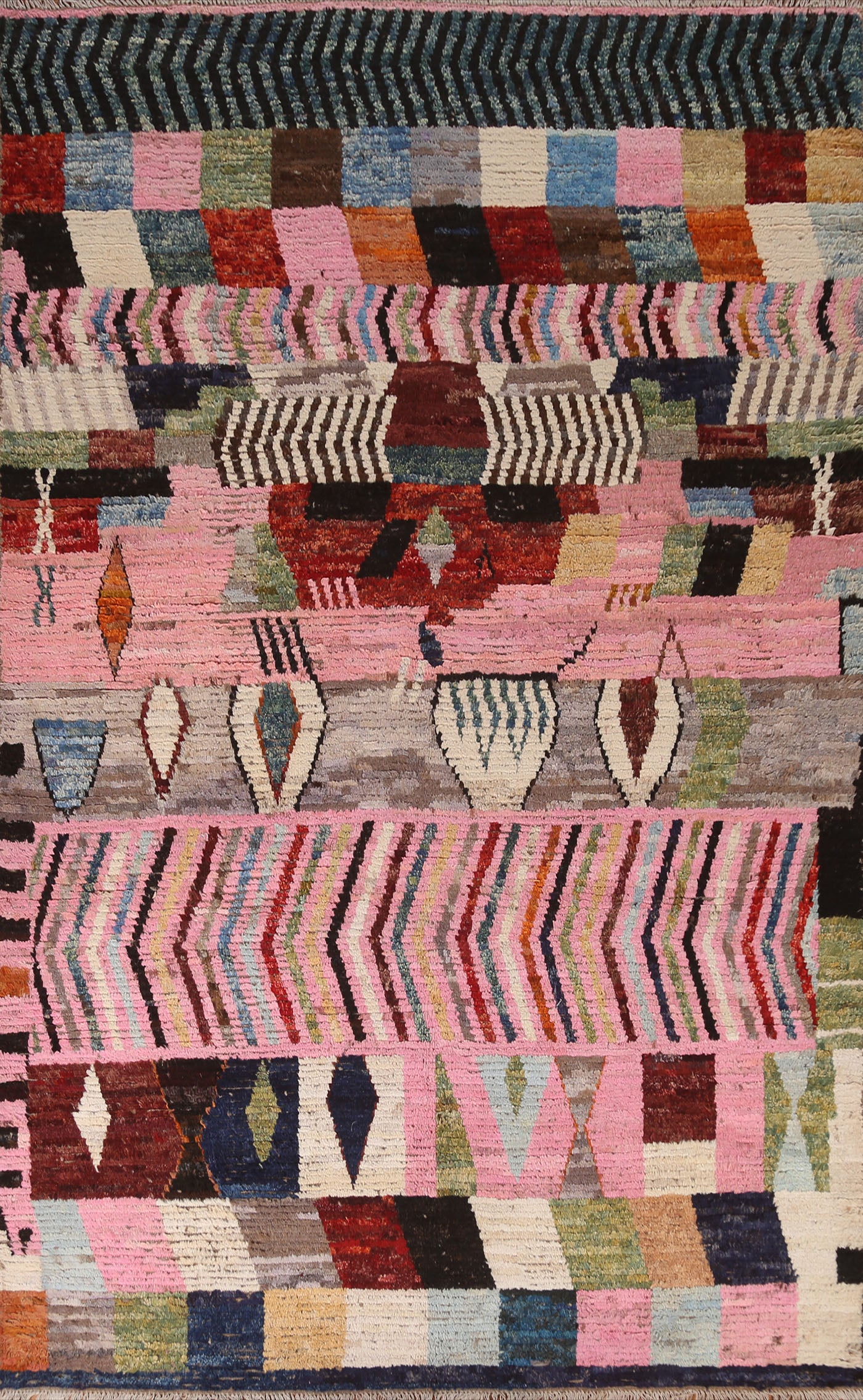 A Beautiful Genuine Pakistan Moroccan rug is Hand Knotted by skillful weavers in Pakistan with 100% Wool Material. This rug is in condition. dimensions are 9' 11'' X 6' 8'' in foot and 302 X 203 in centimeter. the primary color is Pink.