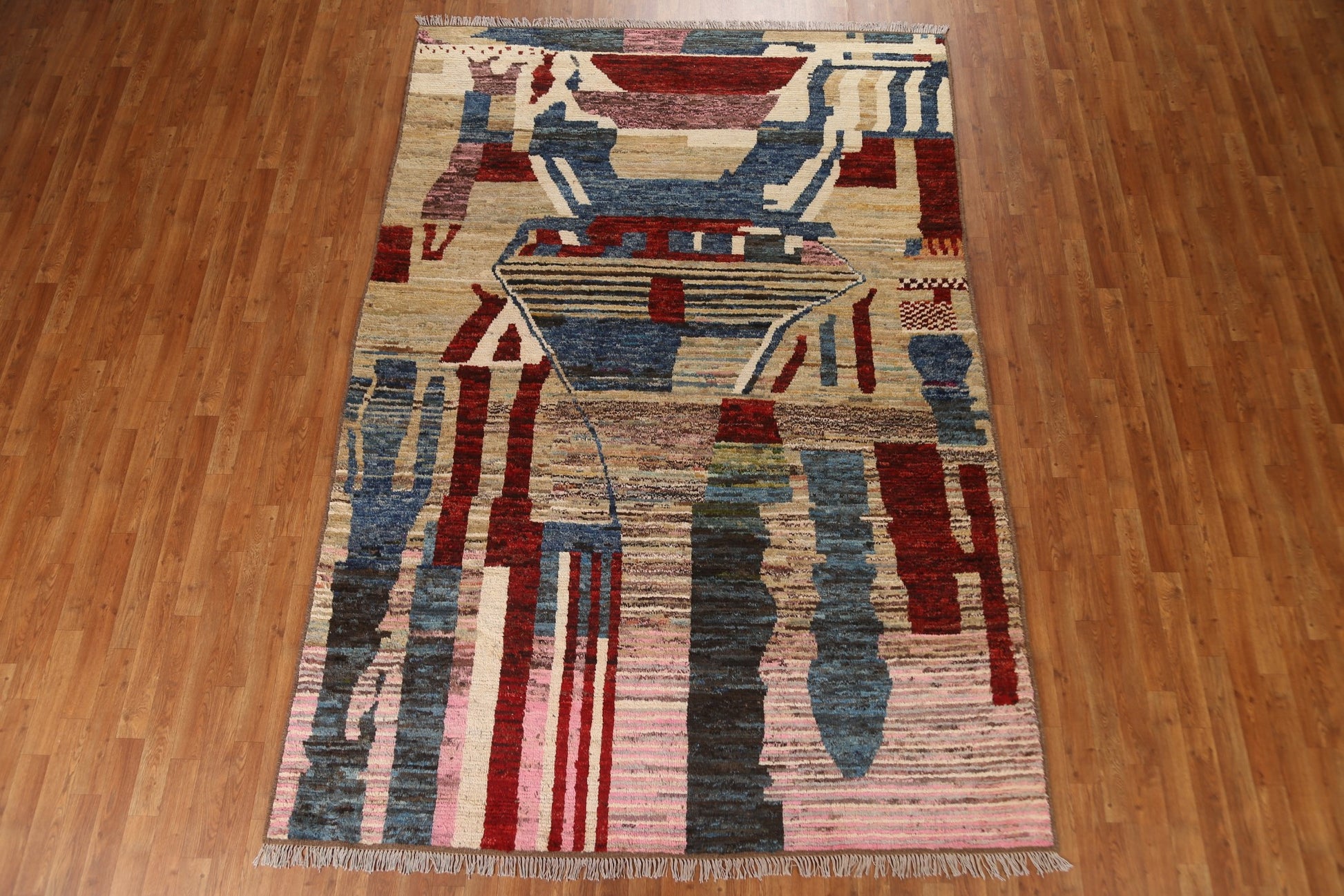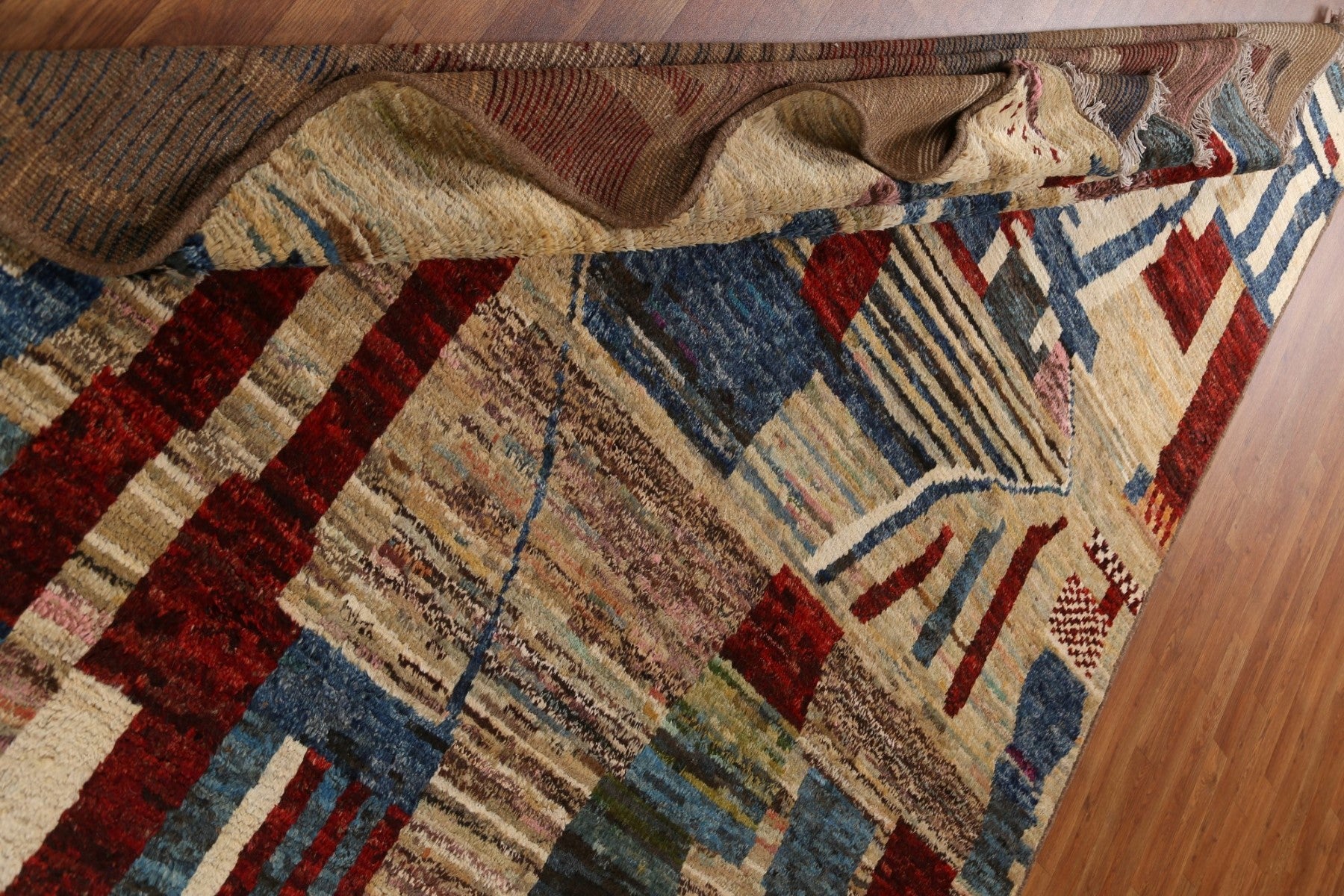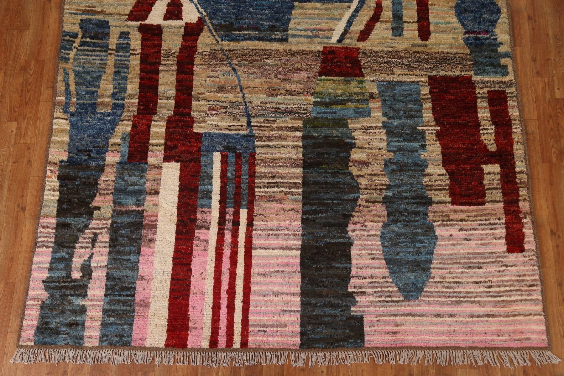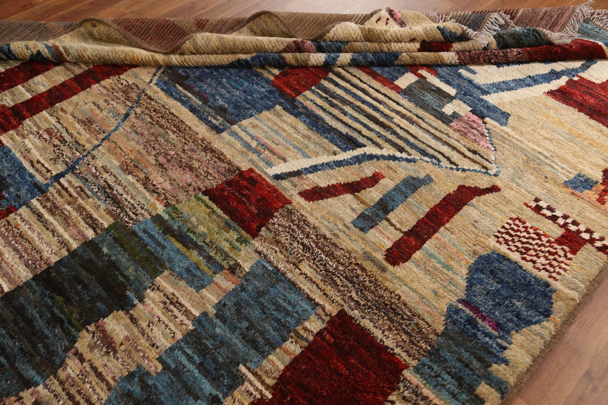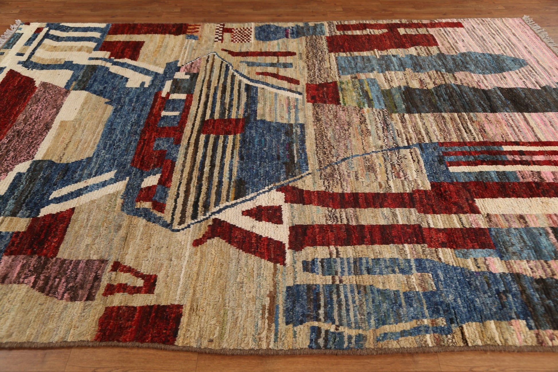A Beautiful Genuine Pakistan Moroccan rug is Hand Knotted by skillful weavers in Pakistan with 100% Wool Material. This rug is in condition. dimensions are 9' 4'' X 6' 8'' in foot and 284 X 203 in centimeter. the primary color is Multi-Colored.