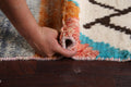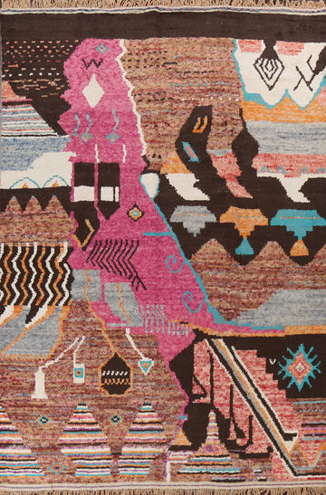 A Beautiful Genuine Morocco Moroccan rug is Hand Knotted by skillful weavers in Morocco with 100% Wool Material. This rug is in New, First Quality condition. dimensions are 12' 8'' X 9' 5'' in foot and 386 X 287 in centimeter. the primary color is Multi-Colored.