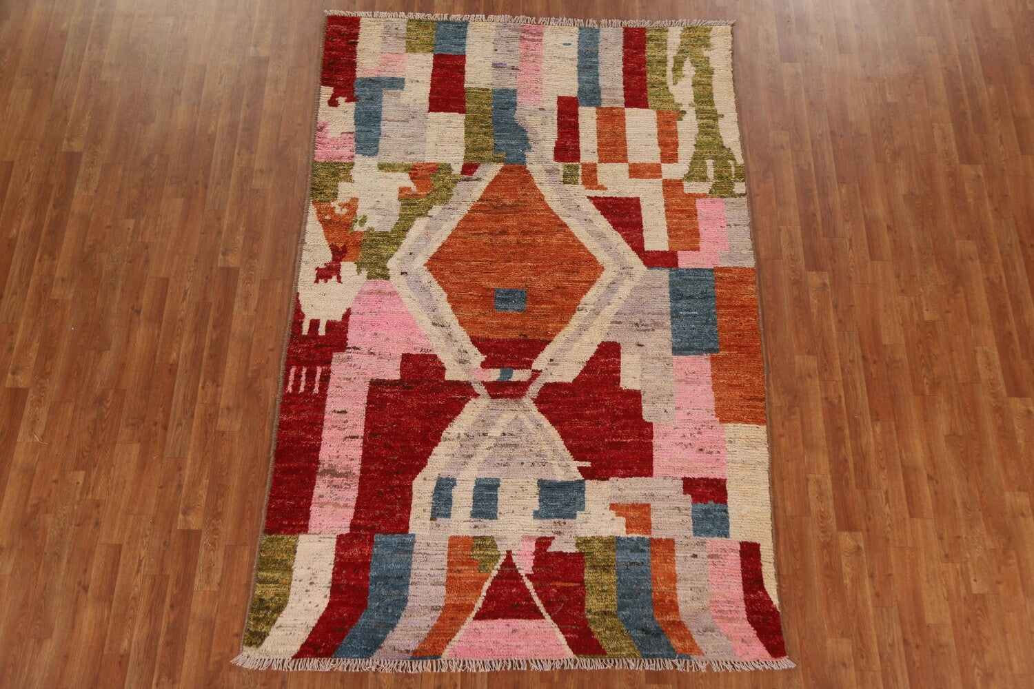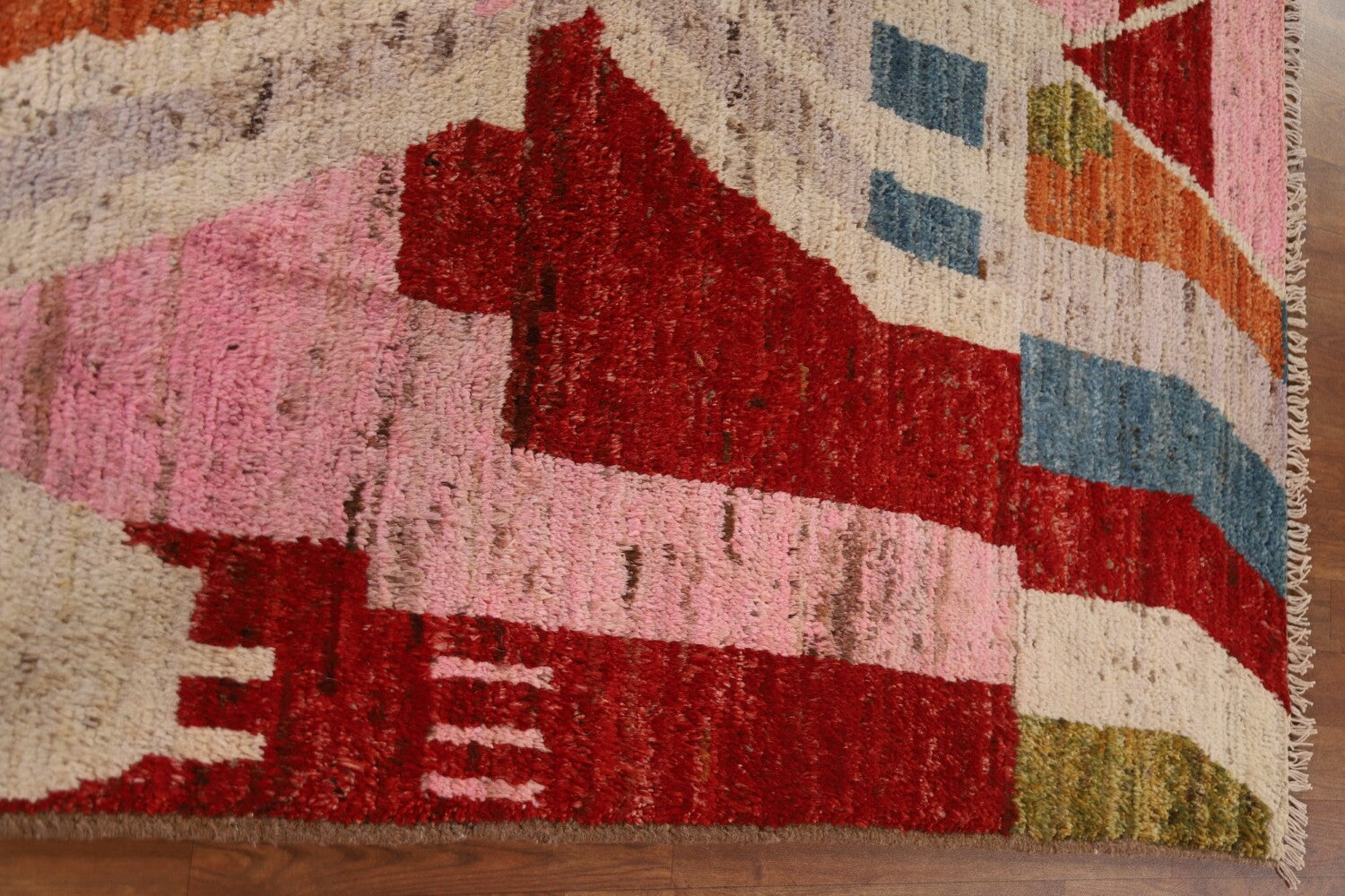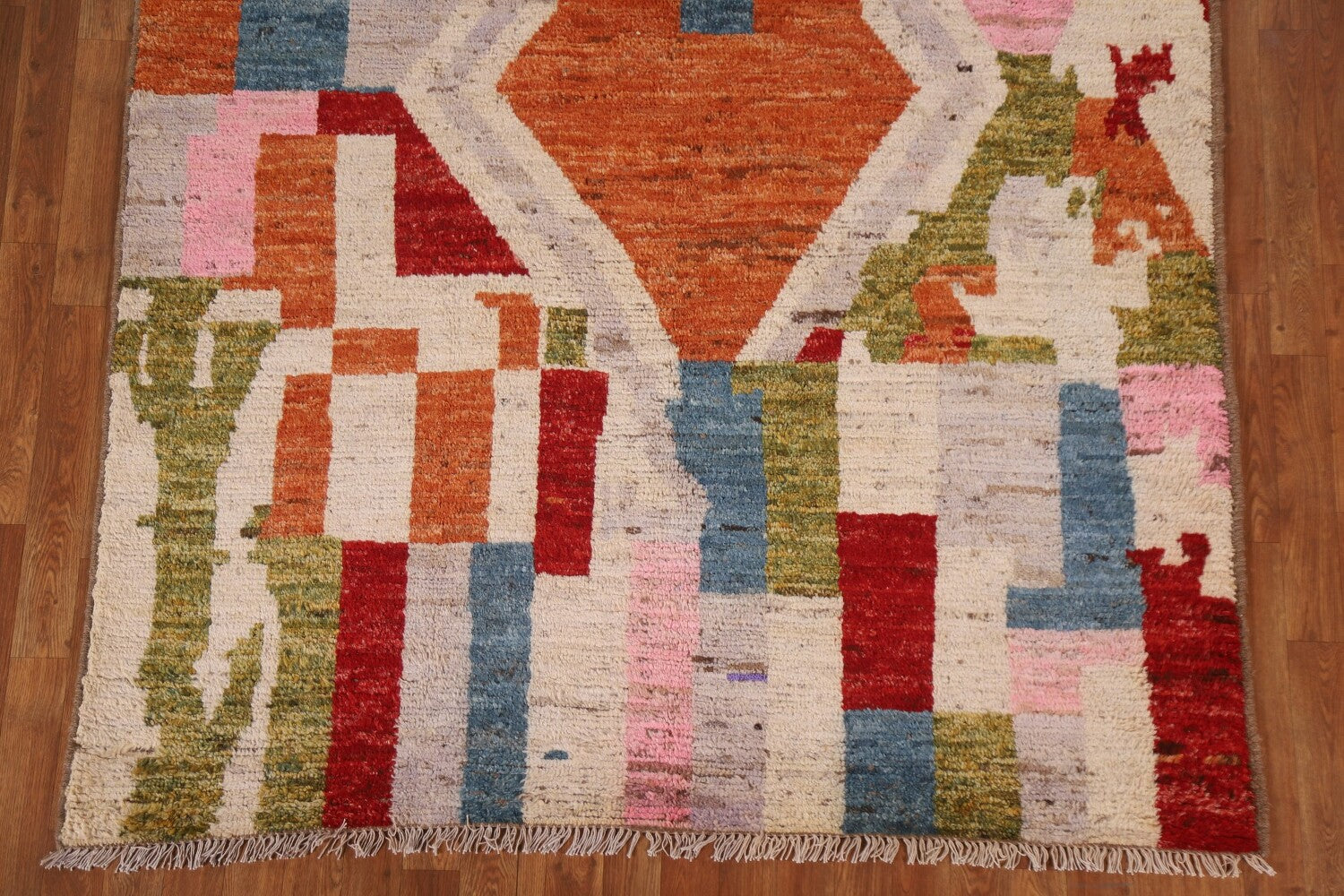 A Beautiful Genuine Pakistan Moroccan rug is Hand Knotted by skillful weavers in Pakistan with 100% Wool Material. This rug is in condition. dimensions are 8' 8'' X 5' 8'' in foot and 264 X 173 in centimeter. the primary color is Multi-Colored.