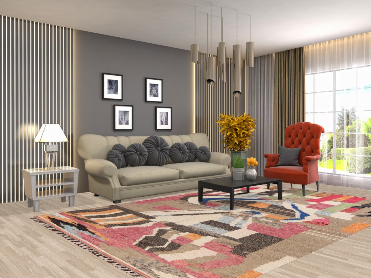 Abstract Moroccan Wool Area Rug 7x11