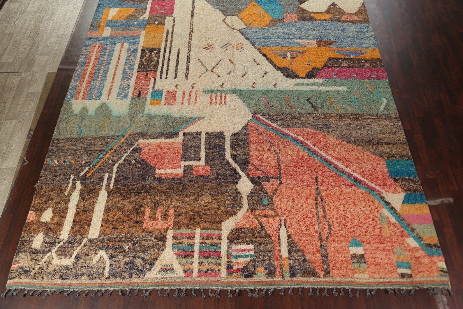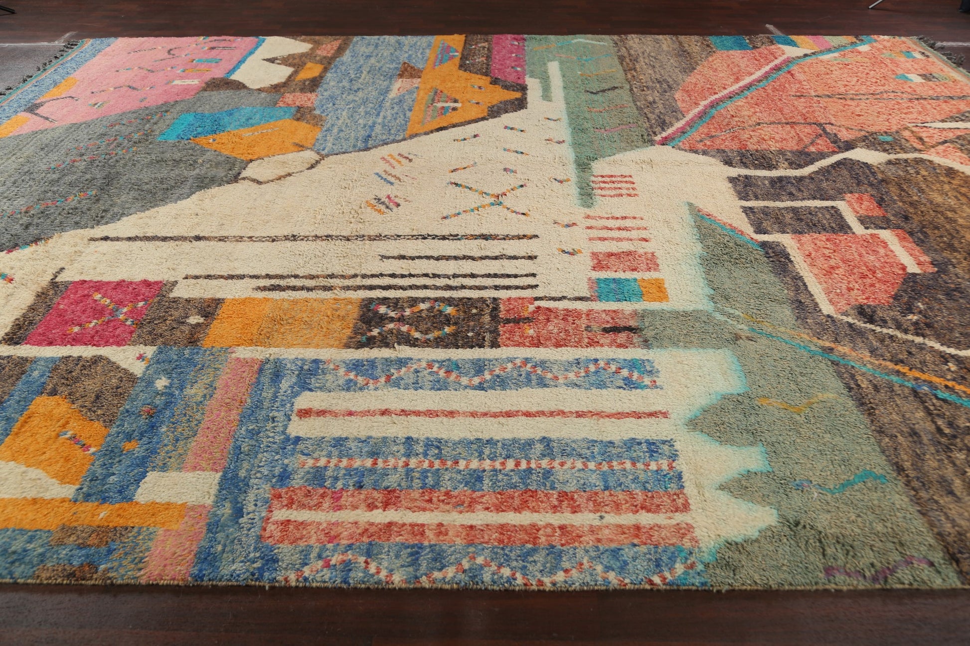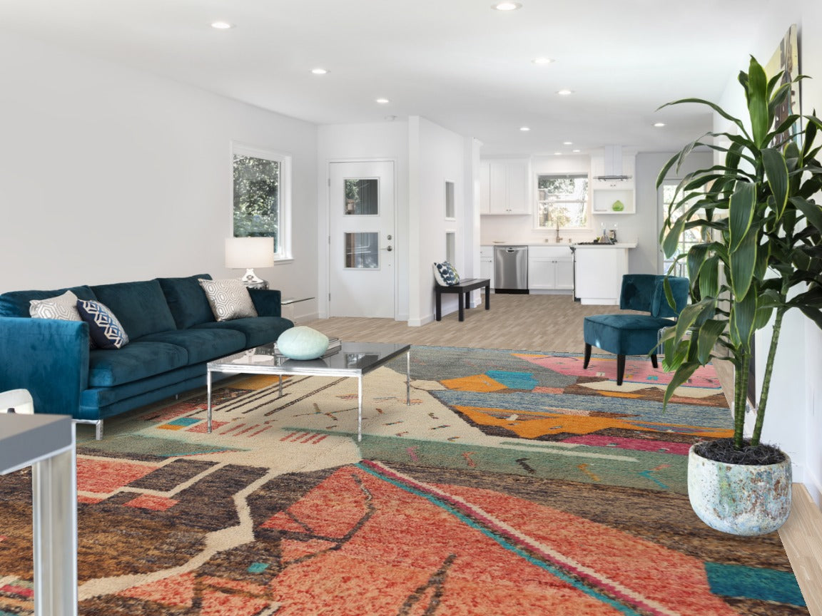A Beautiful Genuine Morocco Moroccan rug is Hand Knotted by skillful weavers in Morocco with 100% Wool Material. This rug is in New, First Quality condition. dimensions are 16' 0'' X 11' 8'' in foot and 488 X 356 in centimeter. the primary color is Multi-Colored.