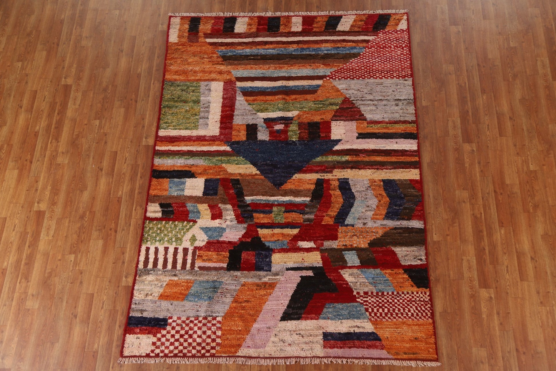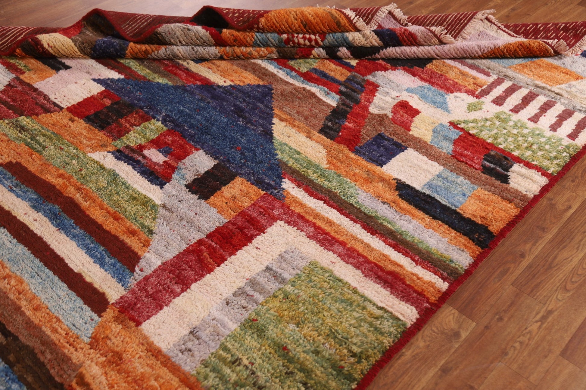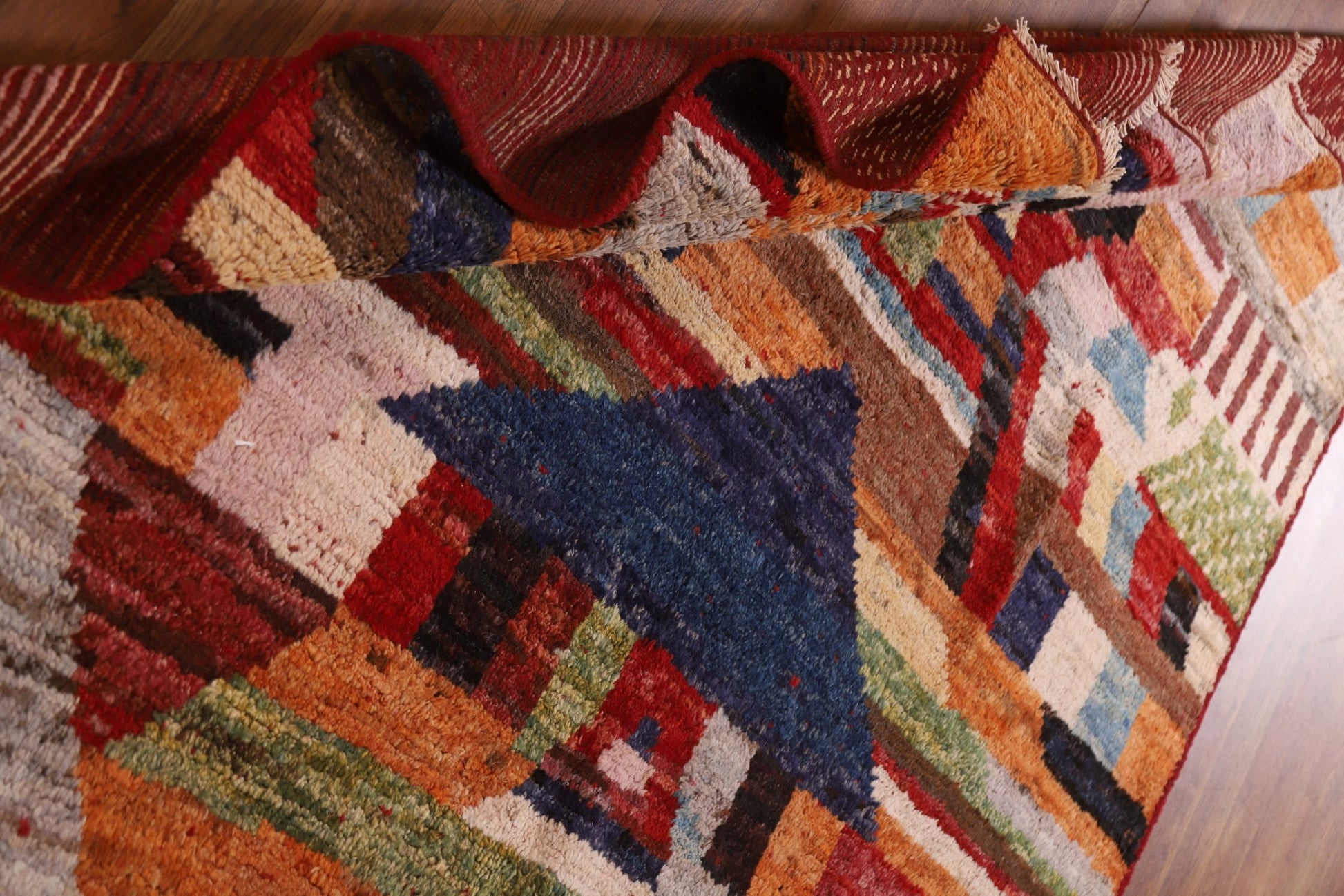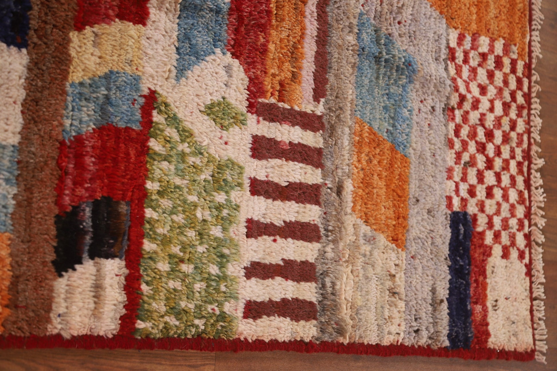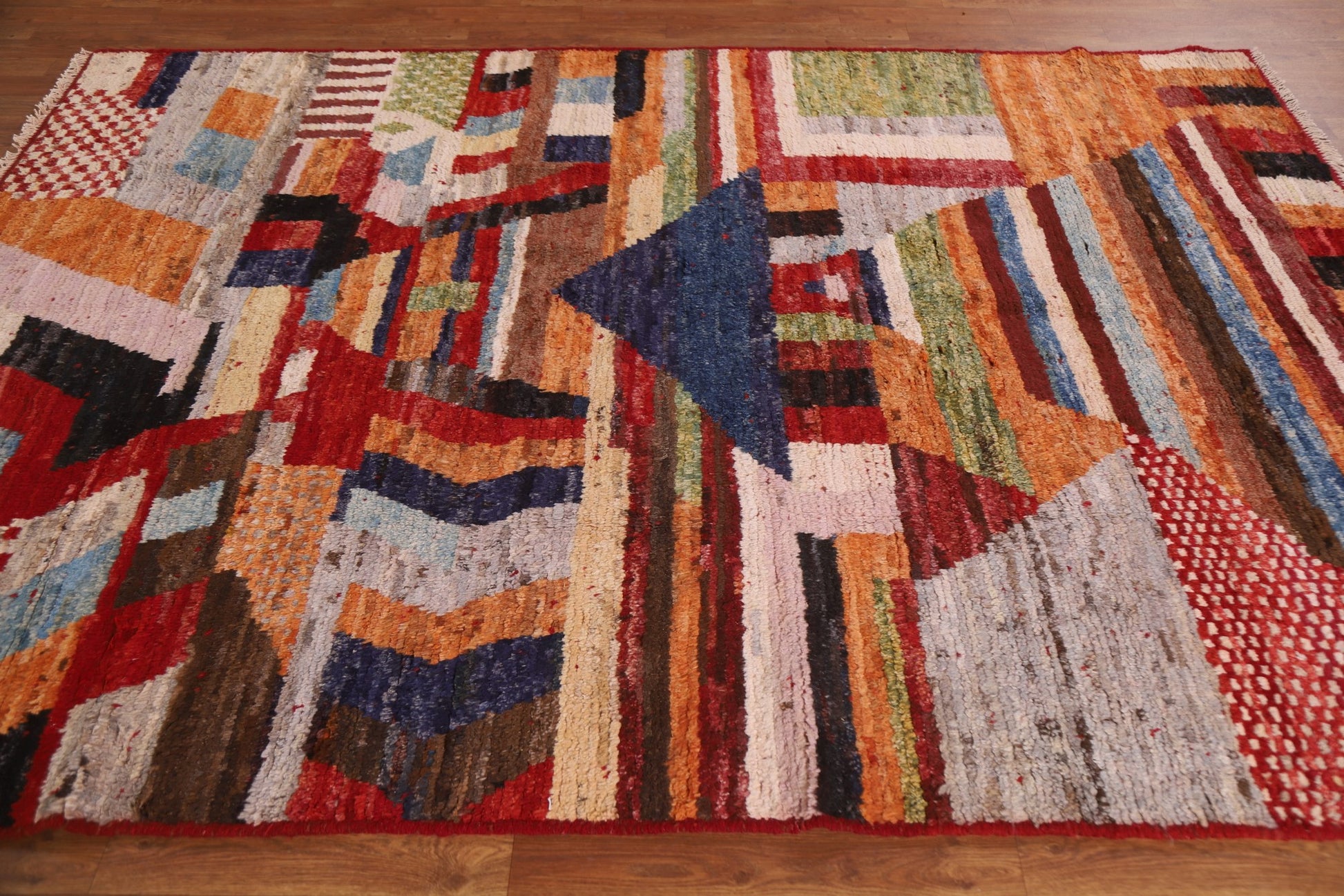 A Beautiful Genuine Pakistan Moroccan rug is Hand Knotted by skillful weavers in Pakistan with 100% Wool Material. This rug is in condition. dimensions are 8' 5'' X 6' 0'' in foot and 257 X 183 in centimeter. the primary color is Multi-Colored.