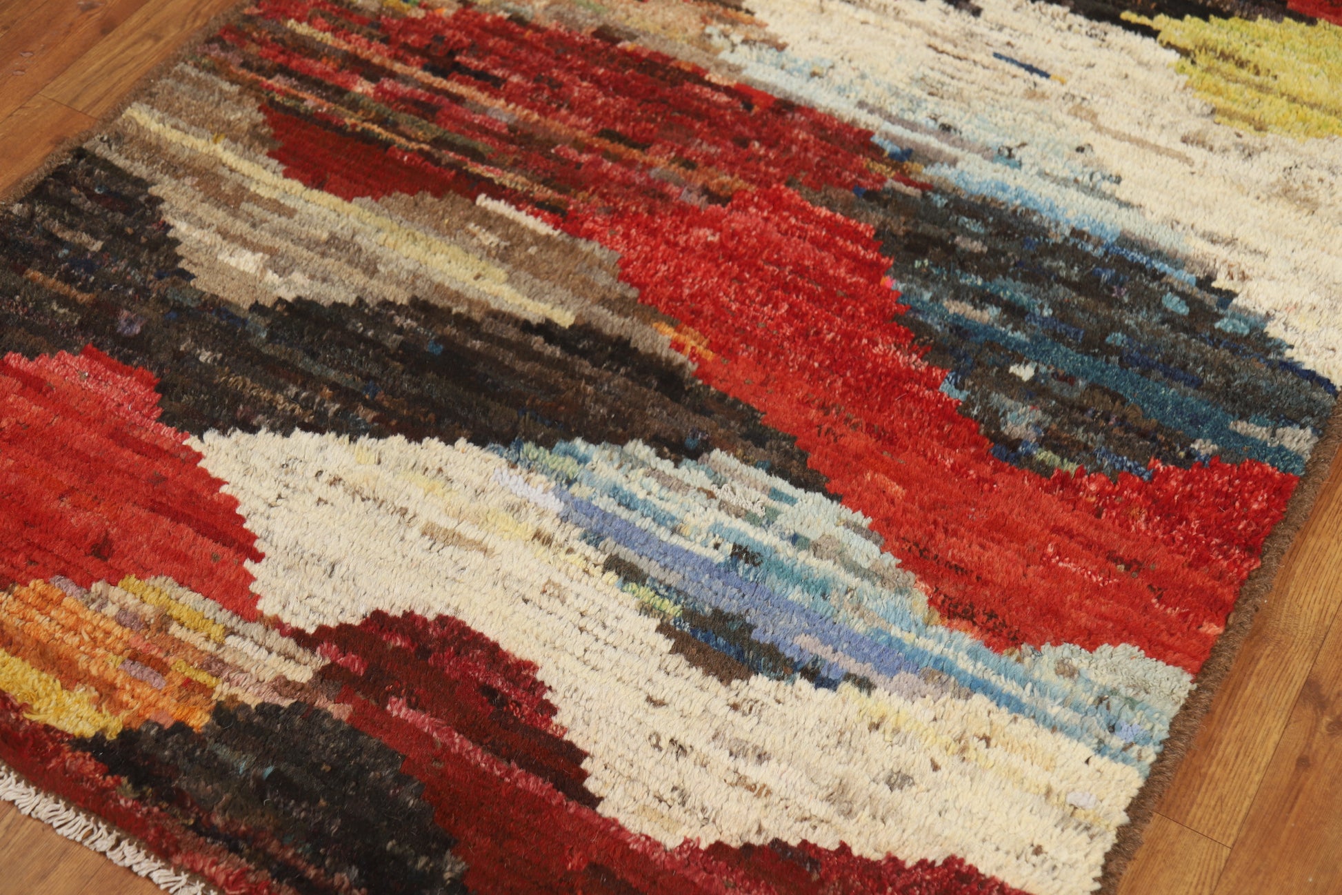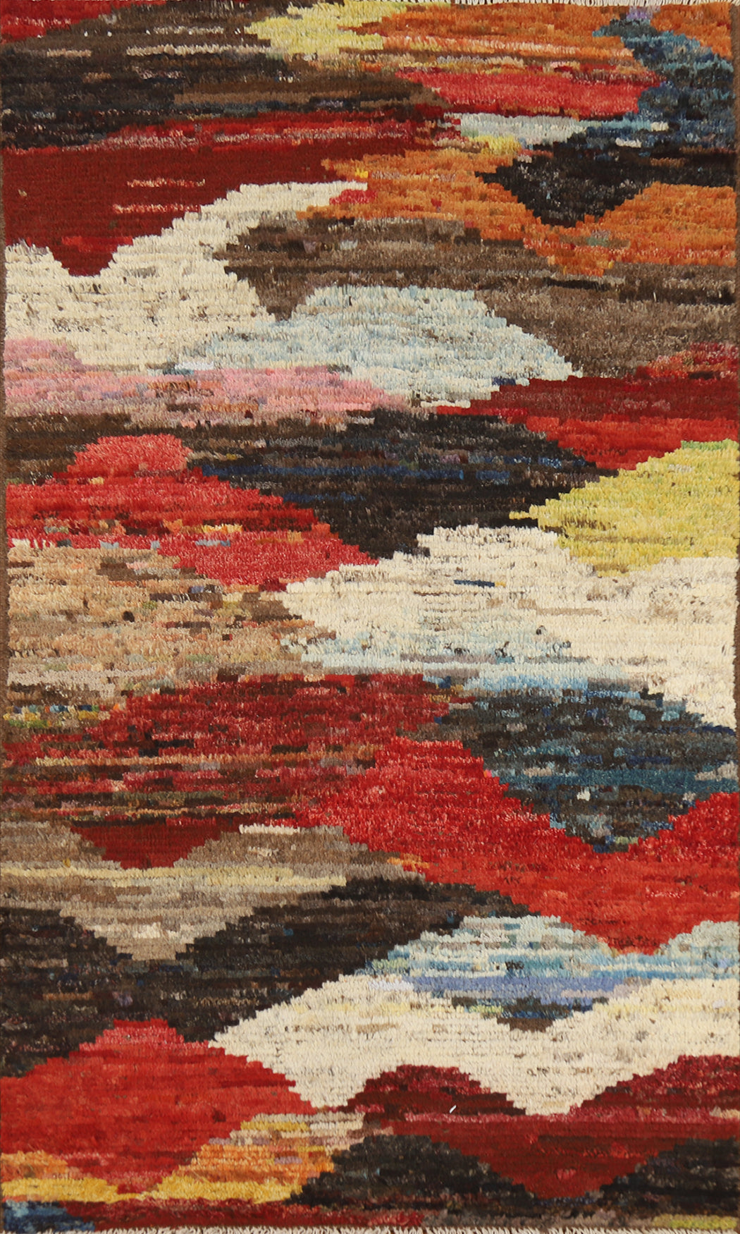 A Beautiful Genuine Pakistan Moroccan rug is Hand Knotted by skillful weavers in Pakistan with 100% Wool Material. This rug is in New, First Quality condition. dimensions are 6' 9'' X 3' 8'' in foot and 206 X 112 in centimeter. the primary color is Multi-Colored.