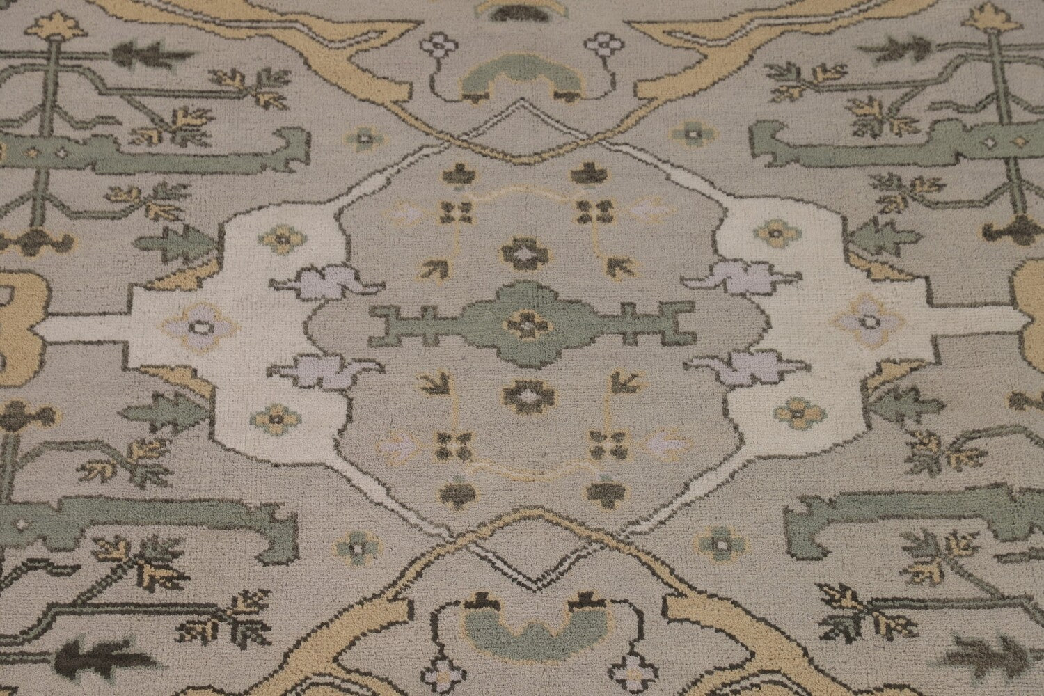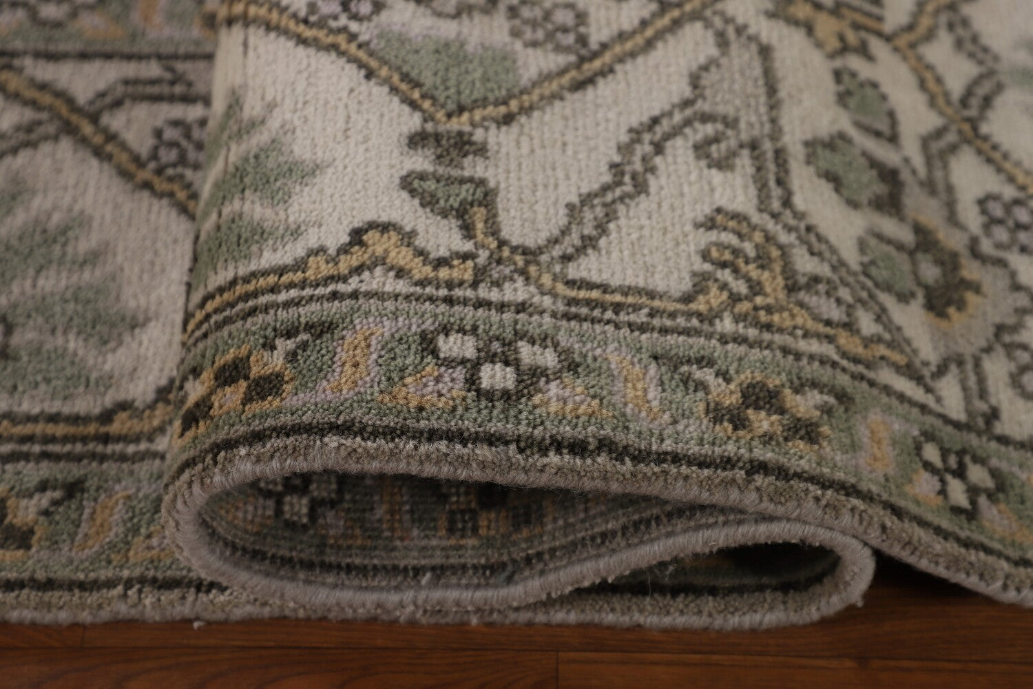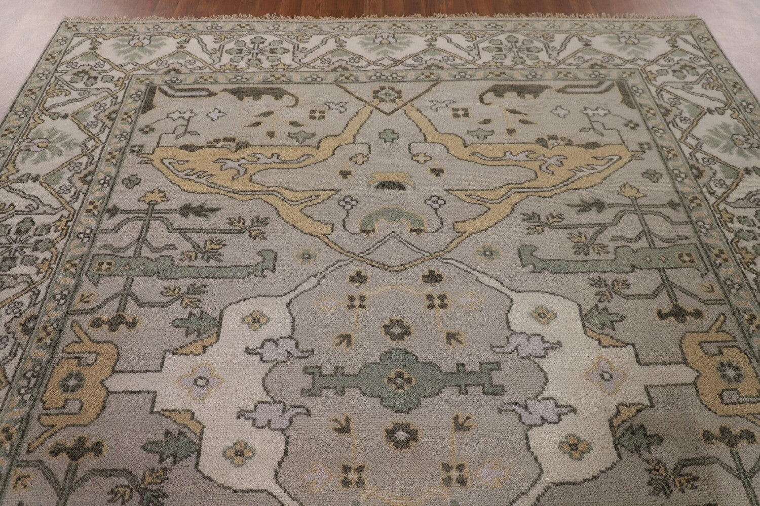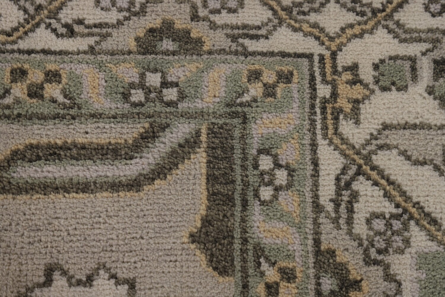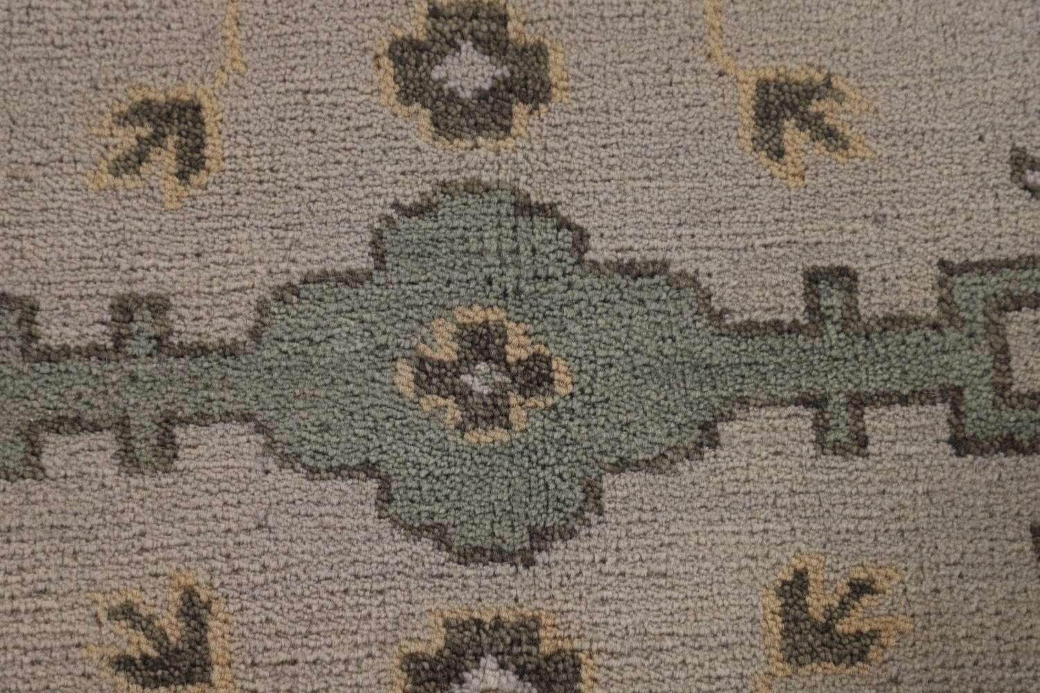 A Beautiful Genuine India Oushak rug is Hand Knotted by skillful weavers in India with 100% Wool Material. This rug is in New, First Quality condition. dimensions are 9' 9'' X 8' 0'' in foot and 297 X 244 in centimeter. the primary color is Beige & Ivories.