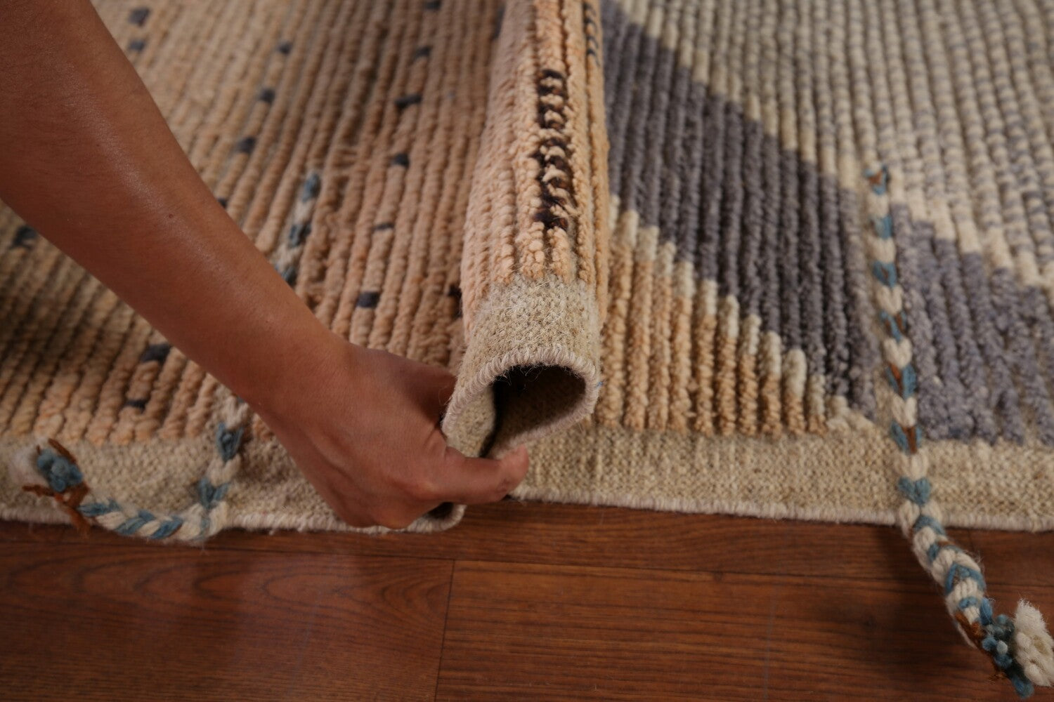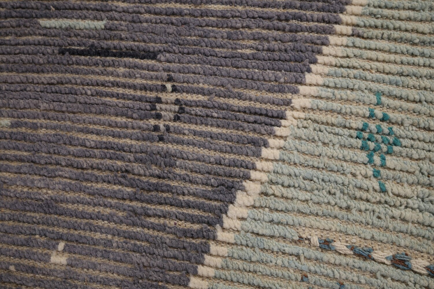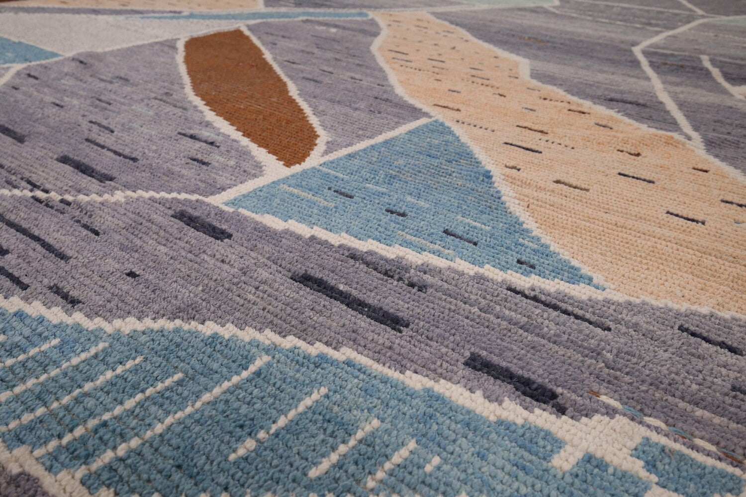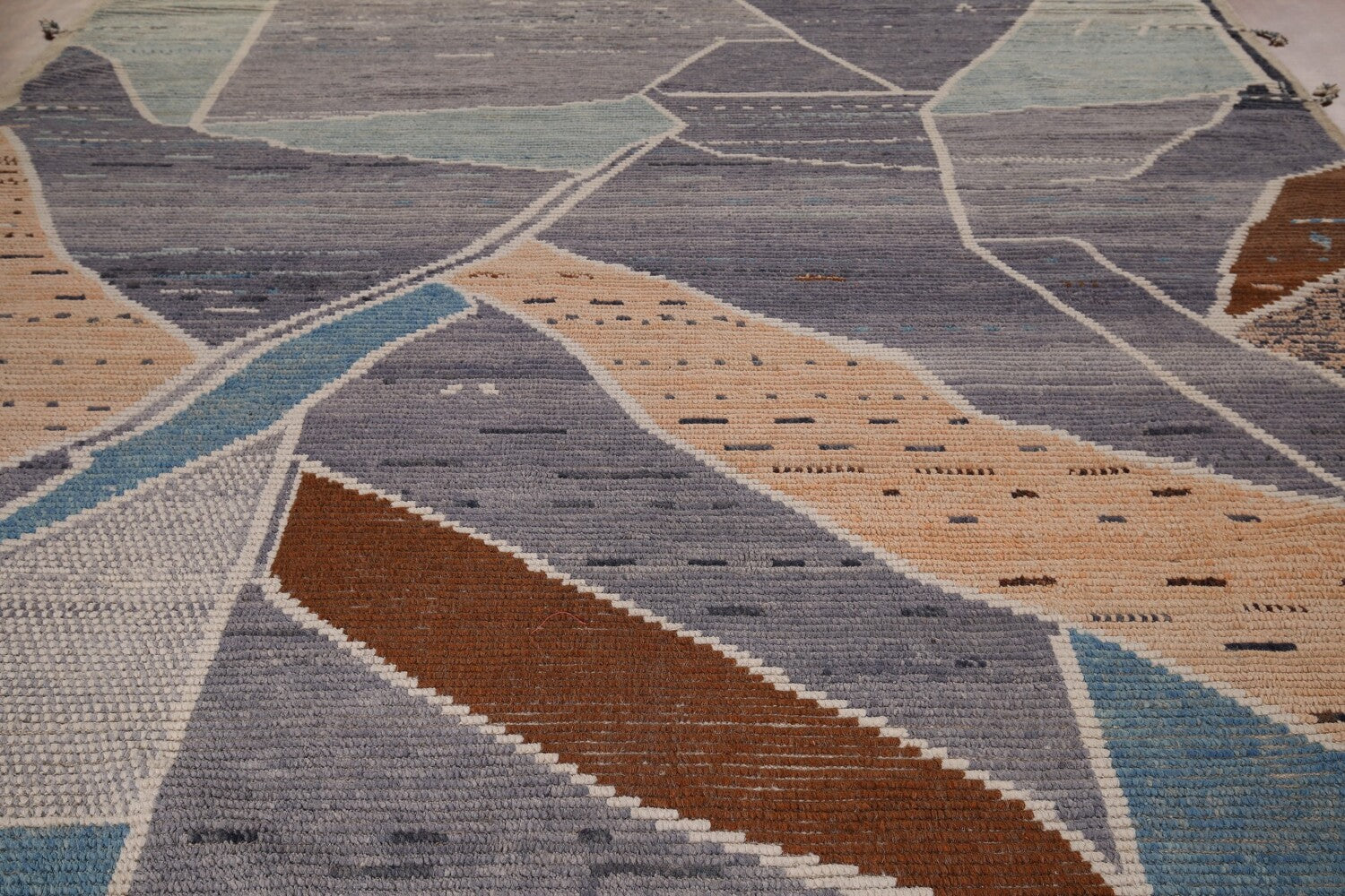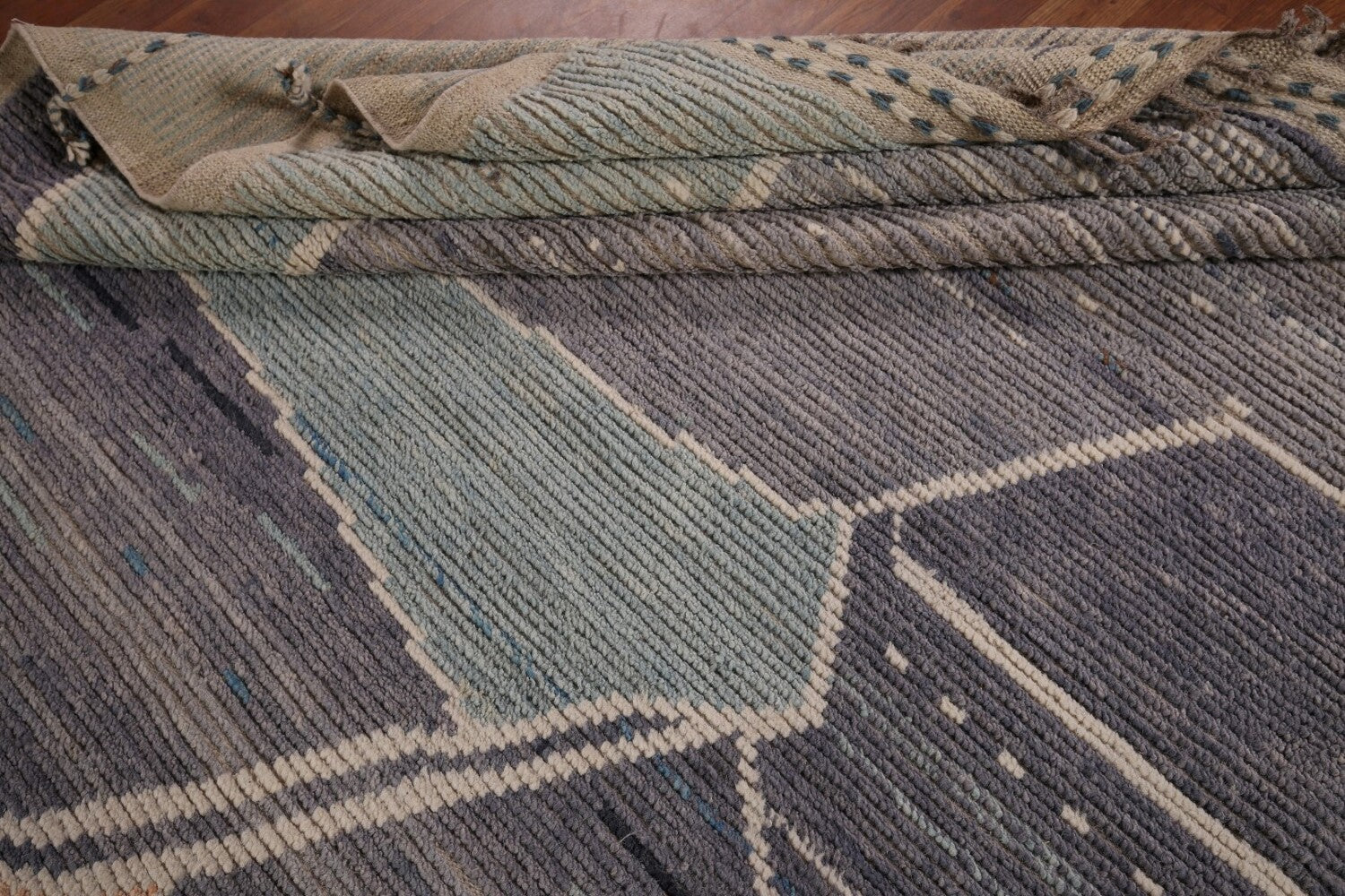 A Beautiful Genuine Pakistan Moroccan rug is Hand Knotted by skillful weavers in Pakistan with 100% Wool Material. This rug is in New, First Quality condition. dimensions are 14' 7'' X 9' 10'' in foot and 445 X 300 in centimeter. the primary color is Greys & Charcoal.