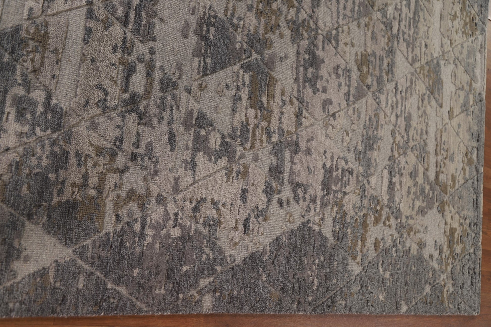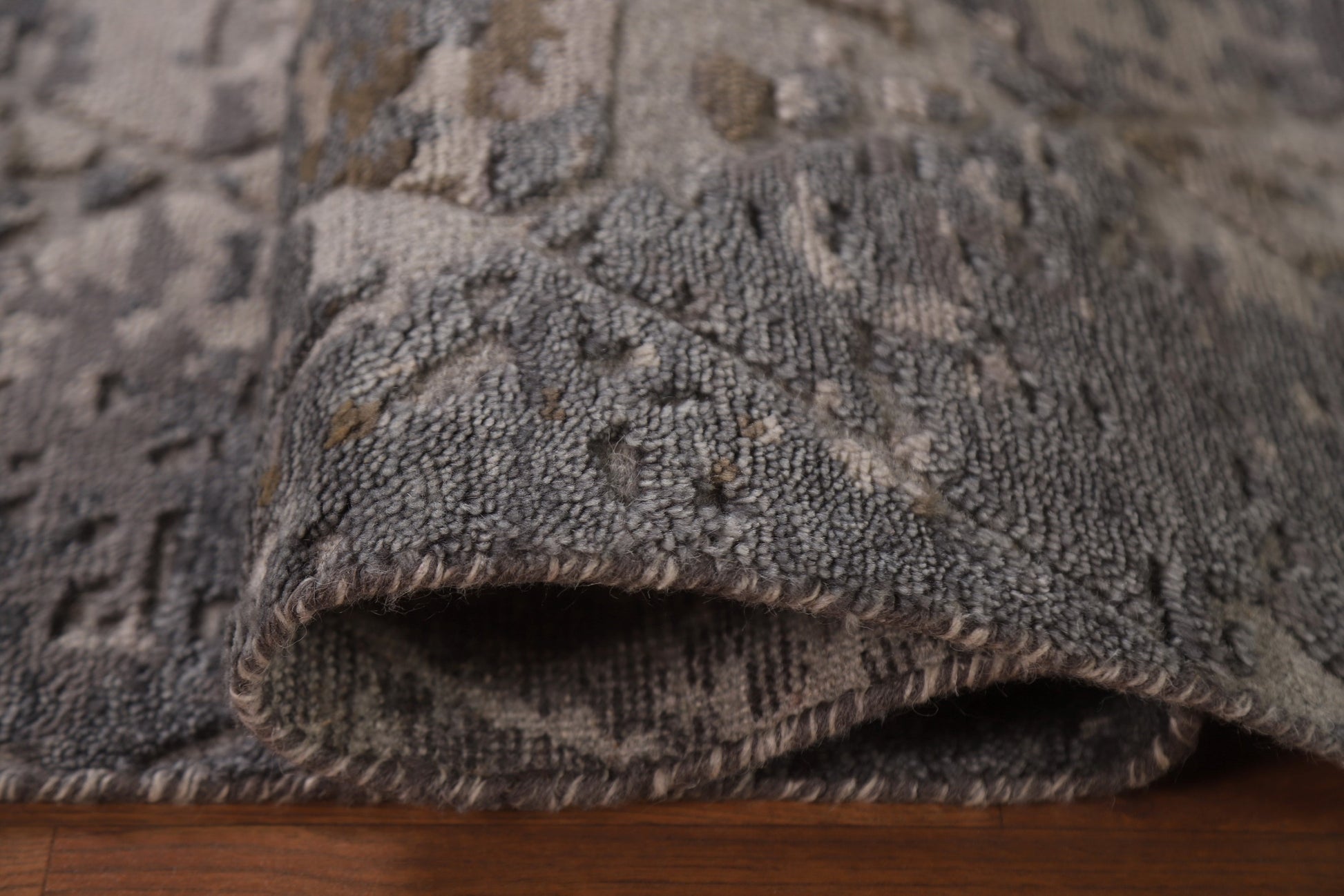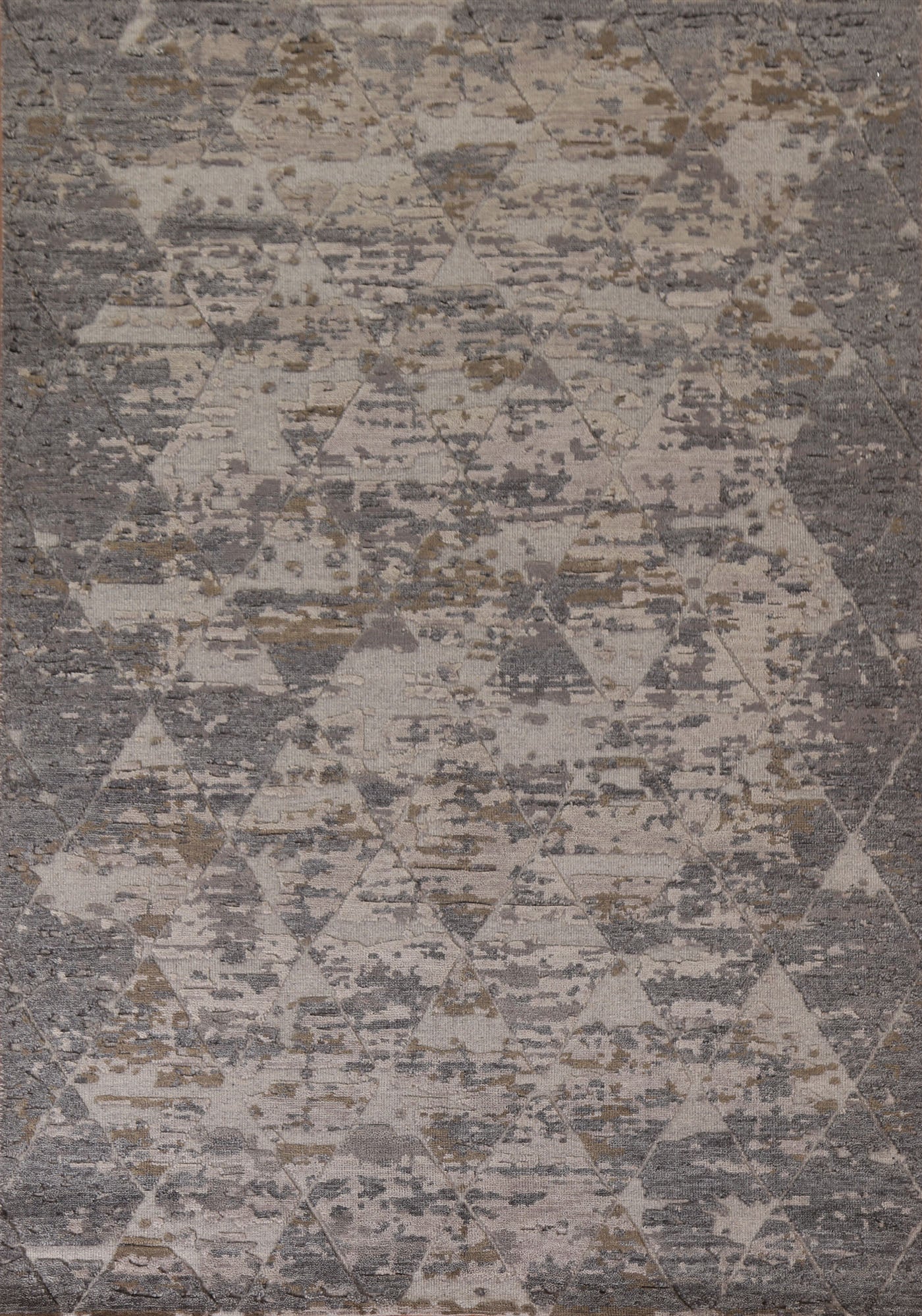 A Beautiful Genuine India Abstract rug is Hand Knotted by skillful weavers in India with 100% Wool Material. This rug is in New, First Quality condition. dimensions are 7' 11'' X 5' 8'' in foot and  241 X 173 in centimeter. the primary color is Greys & Charcoal.