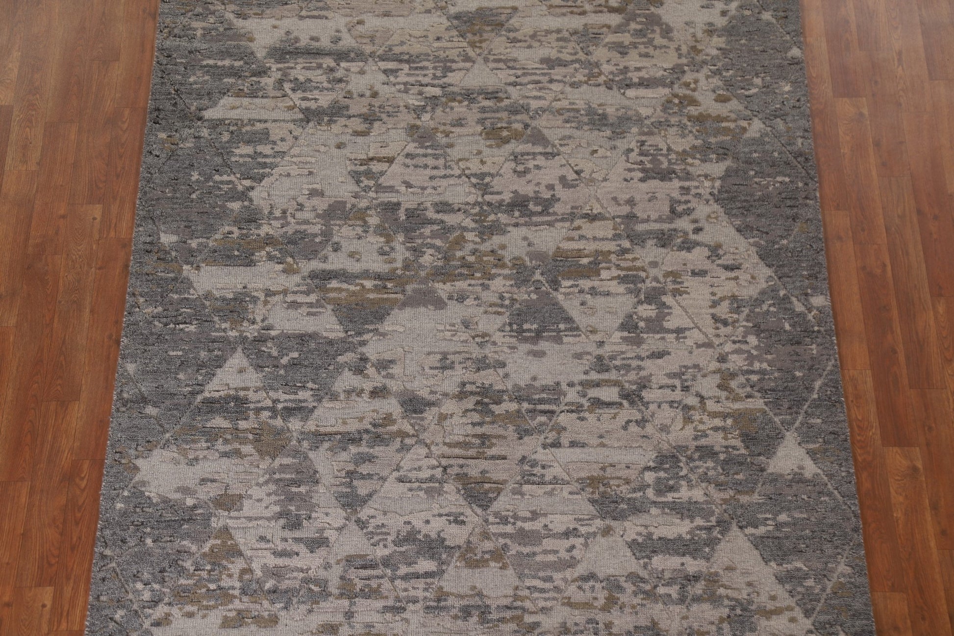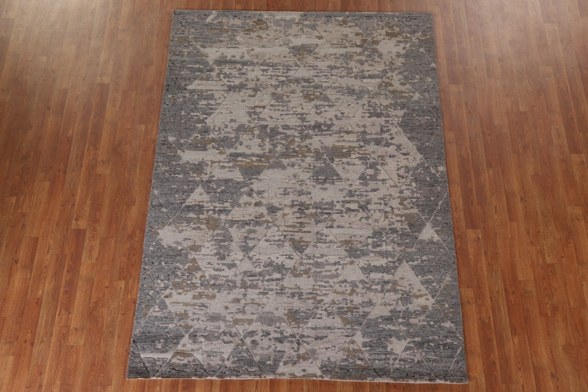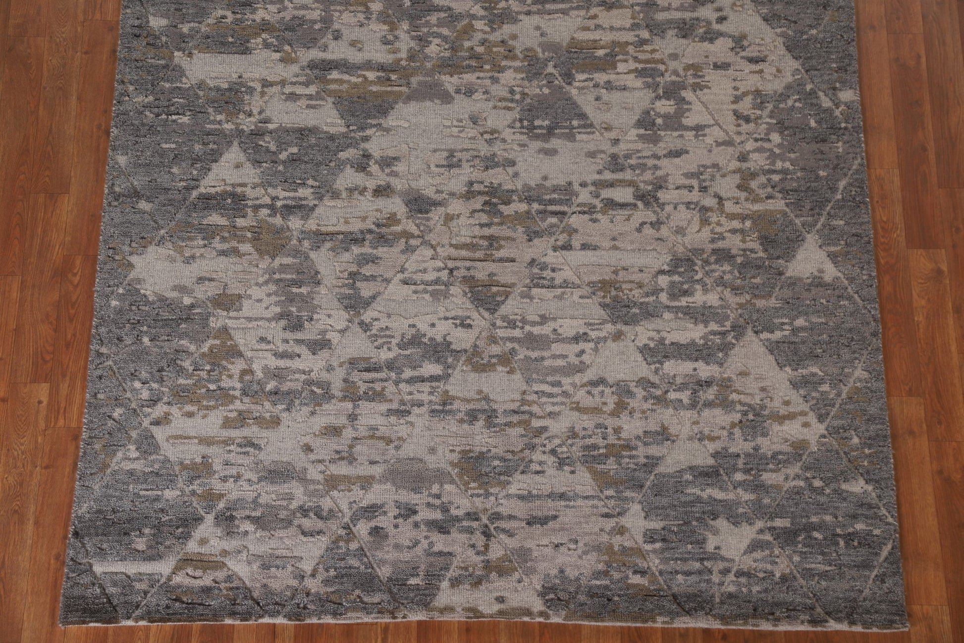 A Beautiful Genuine India Abstract rug is Hand Knotted by skillful weavers in India with 100% Wool Material. This rug is in New, First Quality condition. dimensions are 7' 11'' X 5' 8'' in foot and  241 X 173 in centimeter. the primary color is Greys & Charcoal.