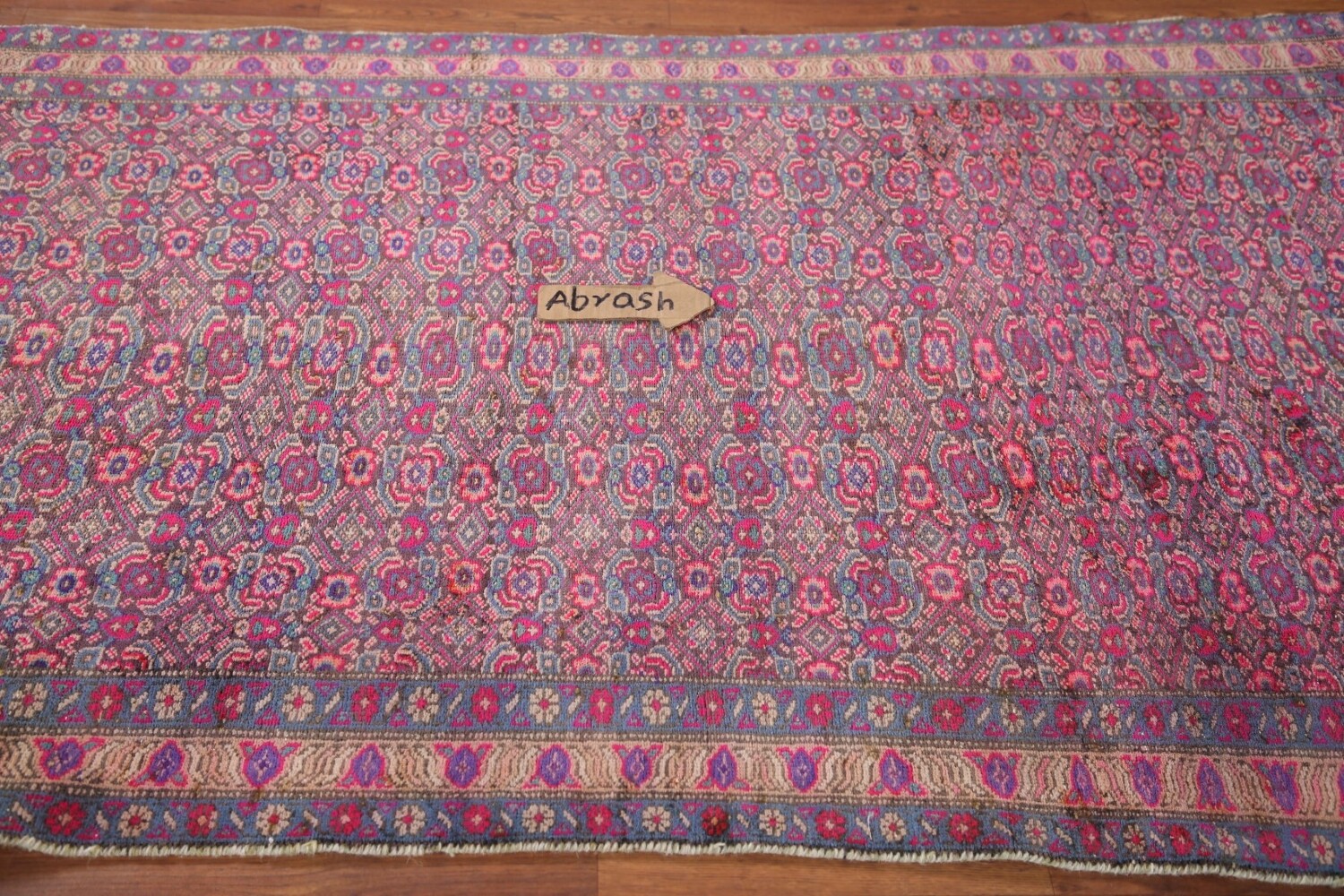 A Beautiful Genuine Persia ( Persia ) Ardebil rug is Hand Knotted by skillful weavers in Persia ( Persia ) with 100% Wool Material. This rug is in Very Good (Abrash) condition. dimensions are 8' 11'' X 3' 10'' in foot and 272 X 117 in centimeter. the primary color is Purples.