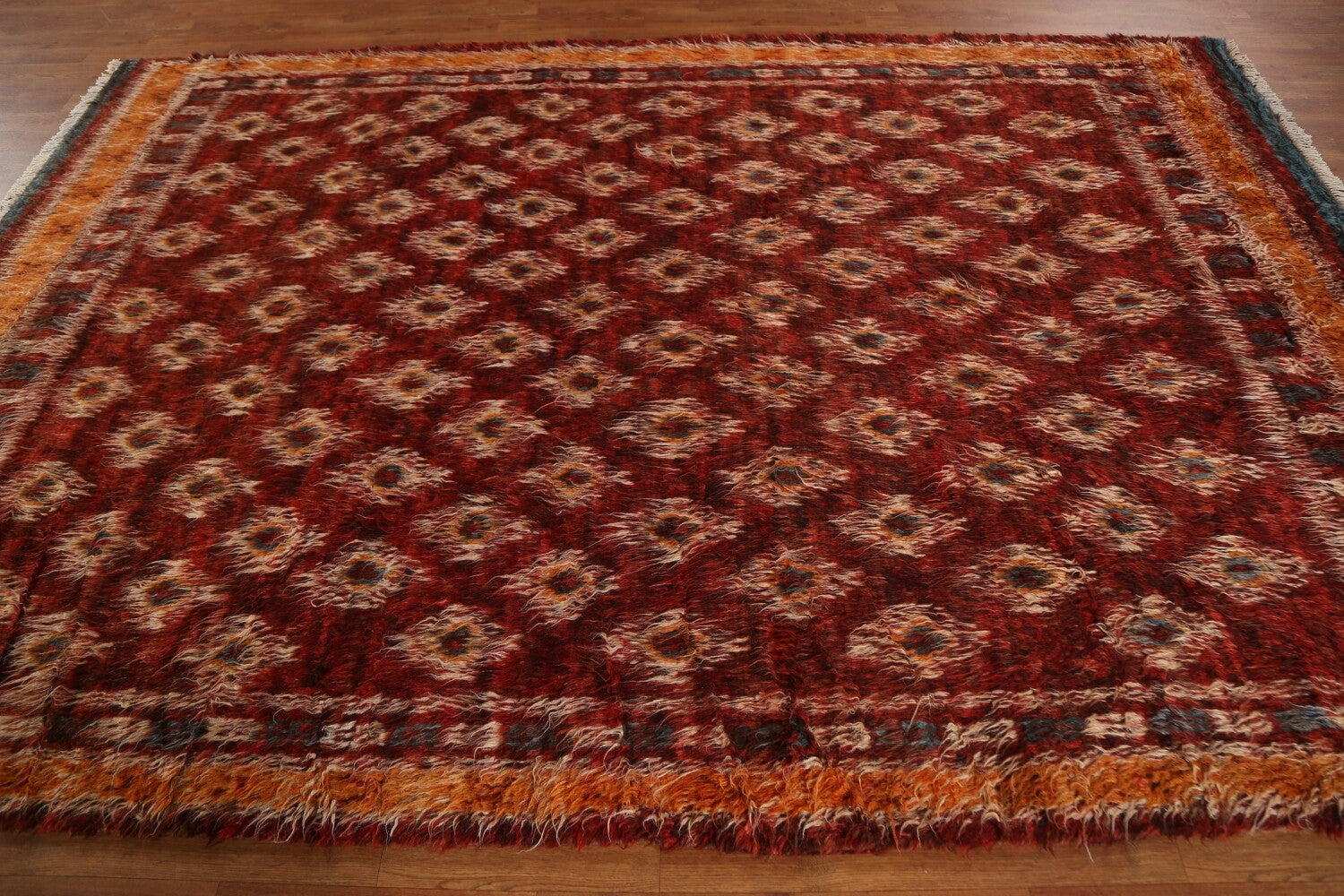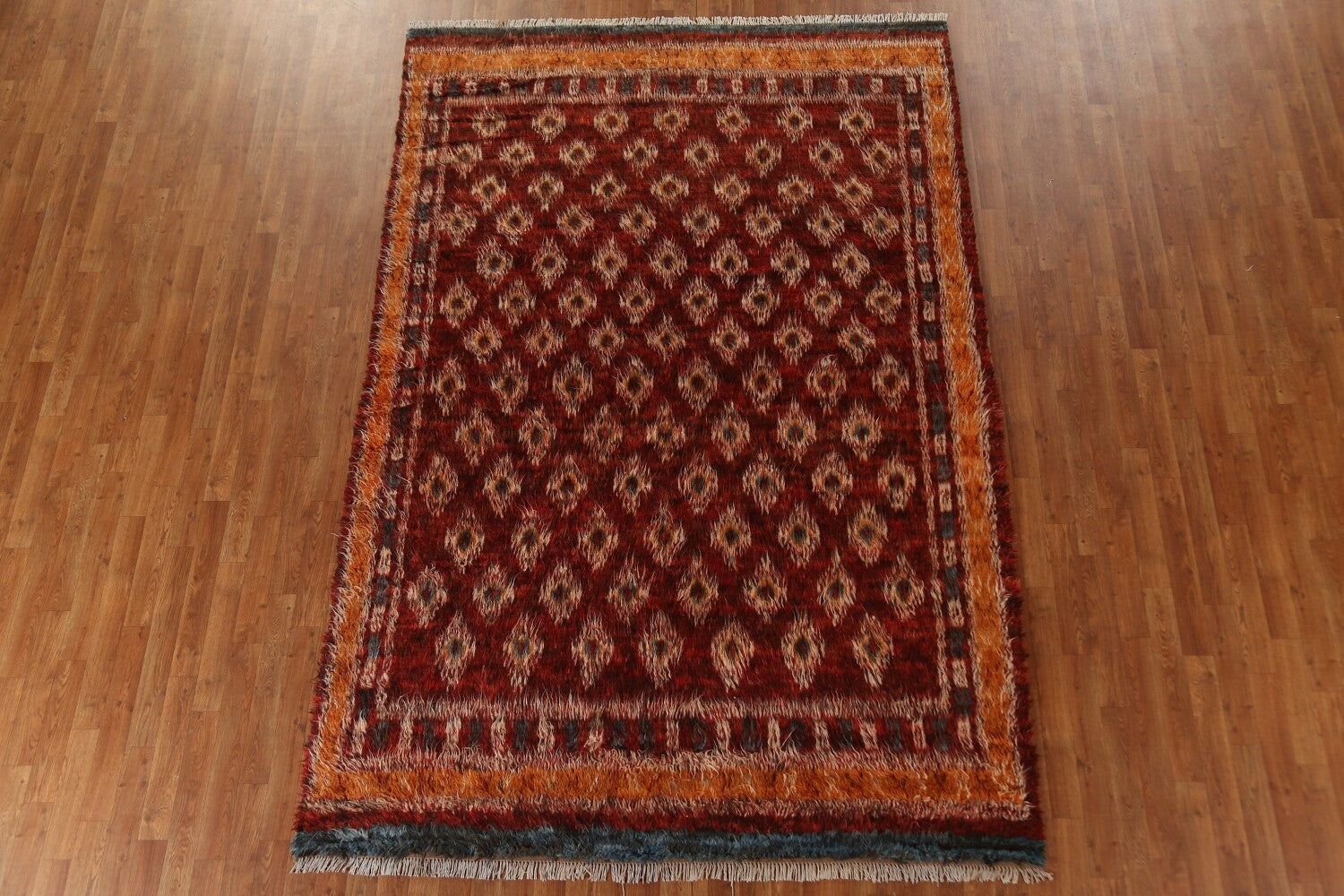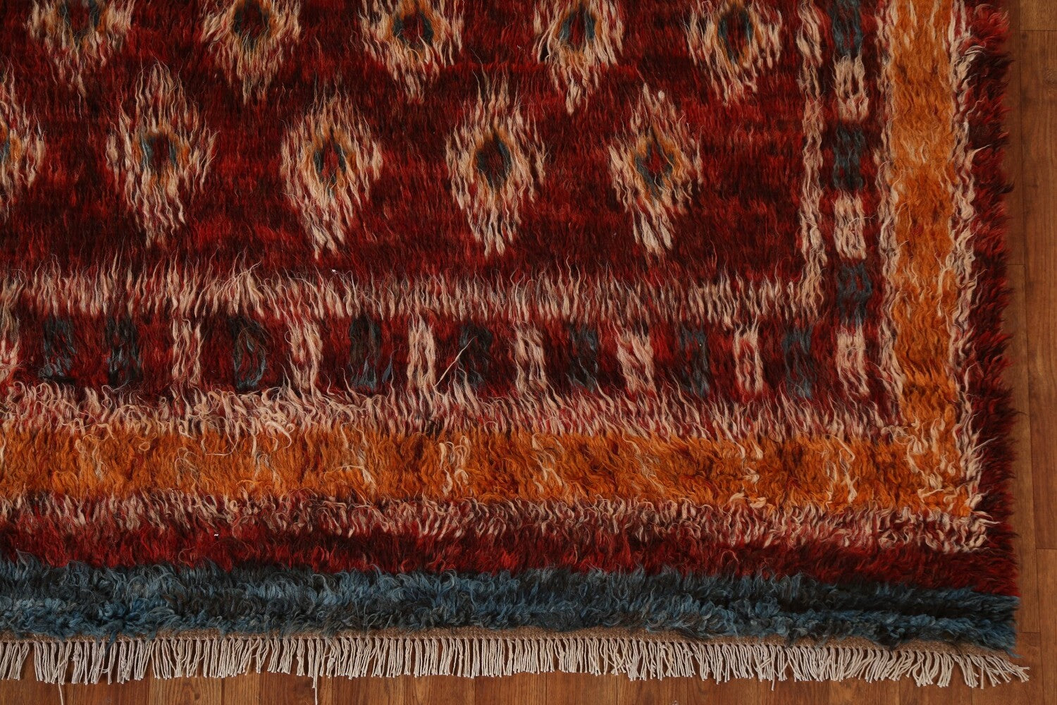 A Beautiful Genuine Pakistan Moroccan rug is Hand Knotted by skillful weavers in Pakistan with 100% Wool Material. This rug is in condition. dimensions are 9' 10'' X 6' 7'' in foot and 300 X 201 in centimeter. the primary color is Red.
