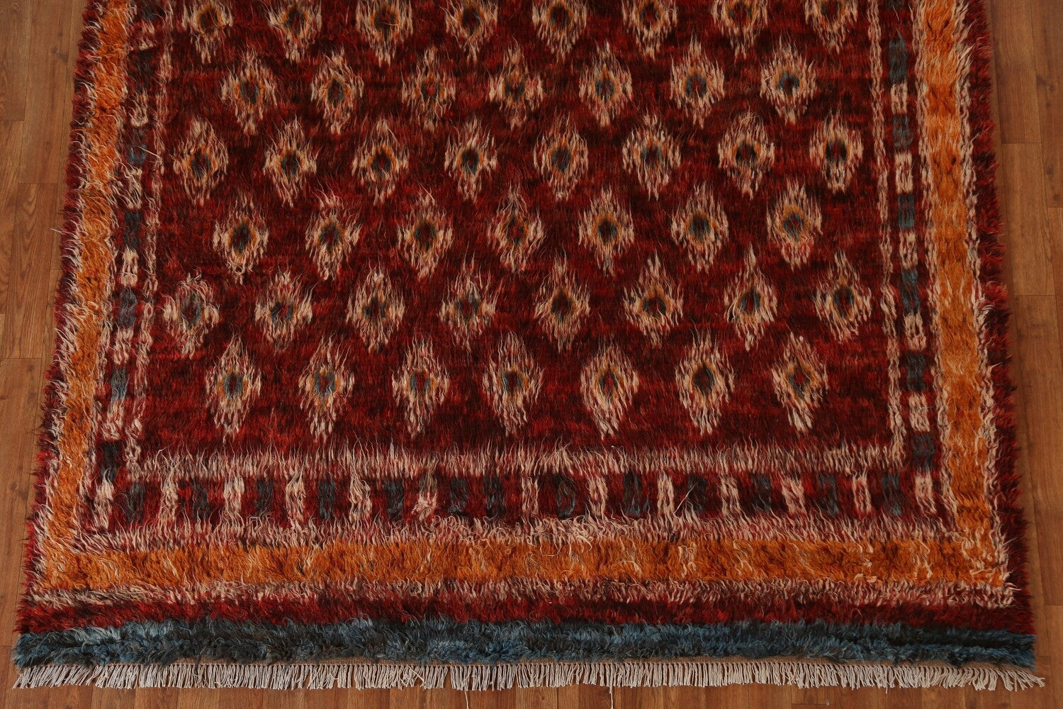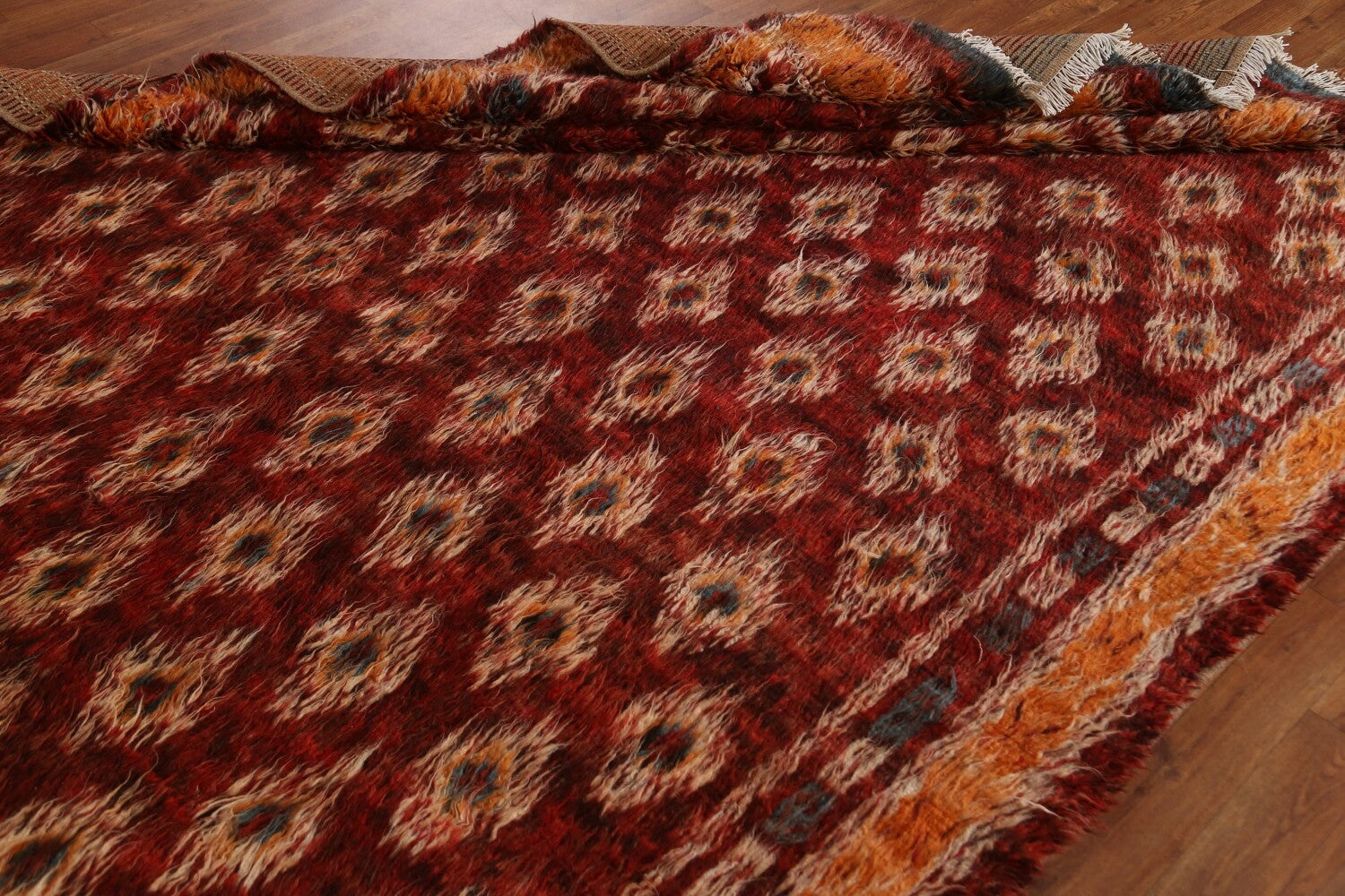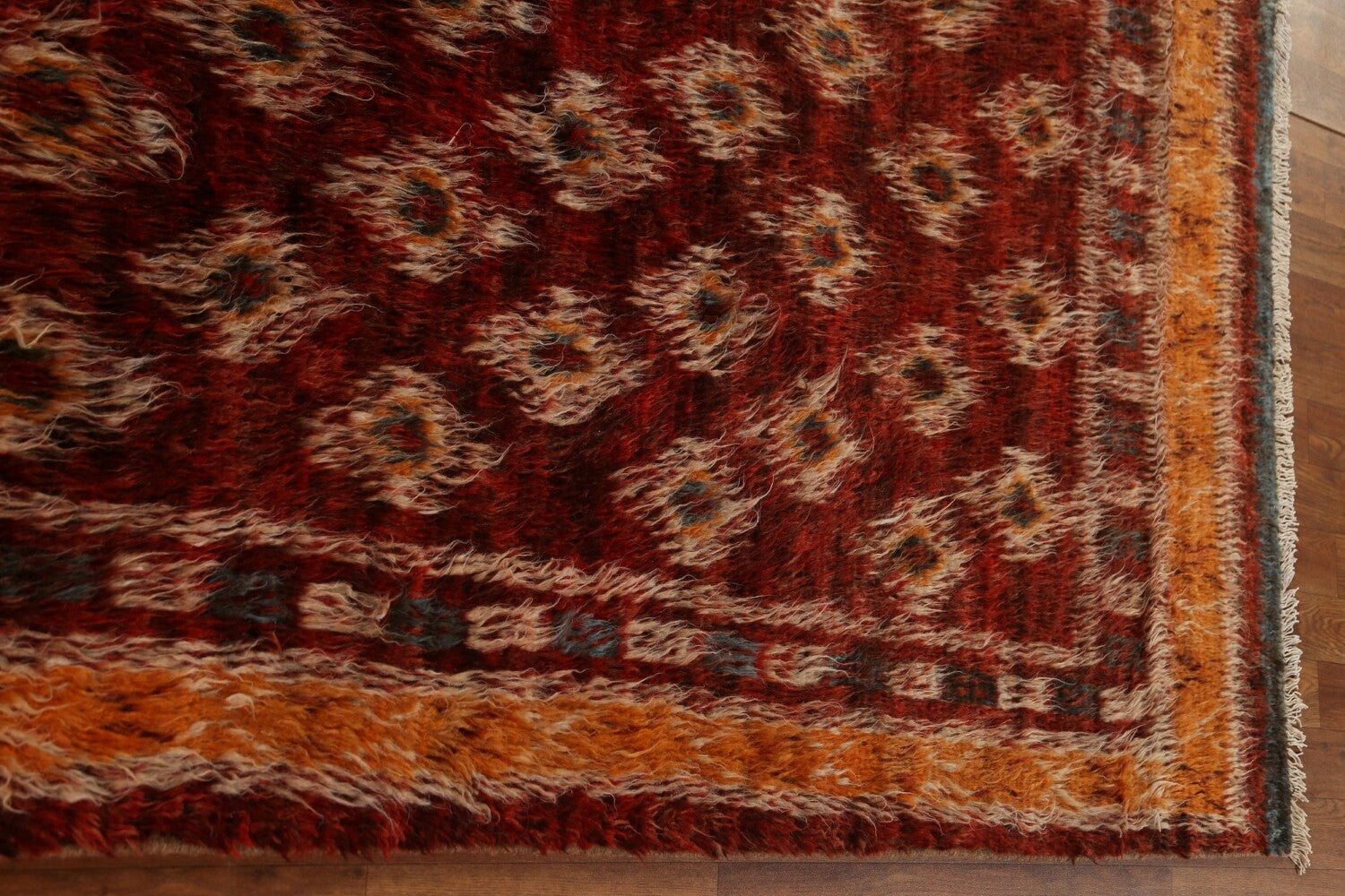 A Beautiful Genuine Pakistan Moroccan rug is Hand Knotted by skillful weavers in Pakistan with 100% Wool Material. This rug is in condition. dimensions are 9' 10'' X 6' 7'' in foot and 300 X 201 in centimeter. the primary color is Red.