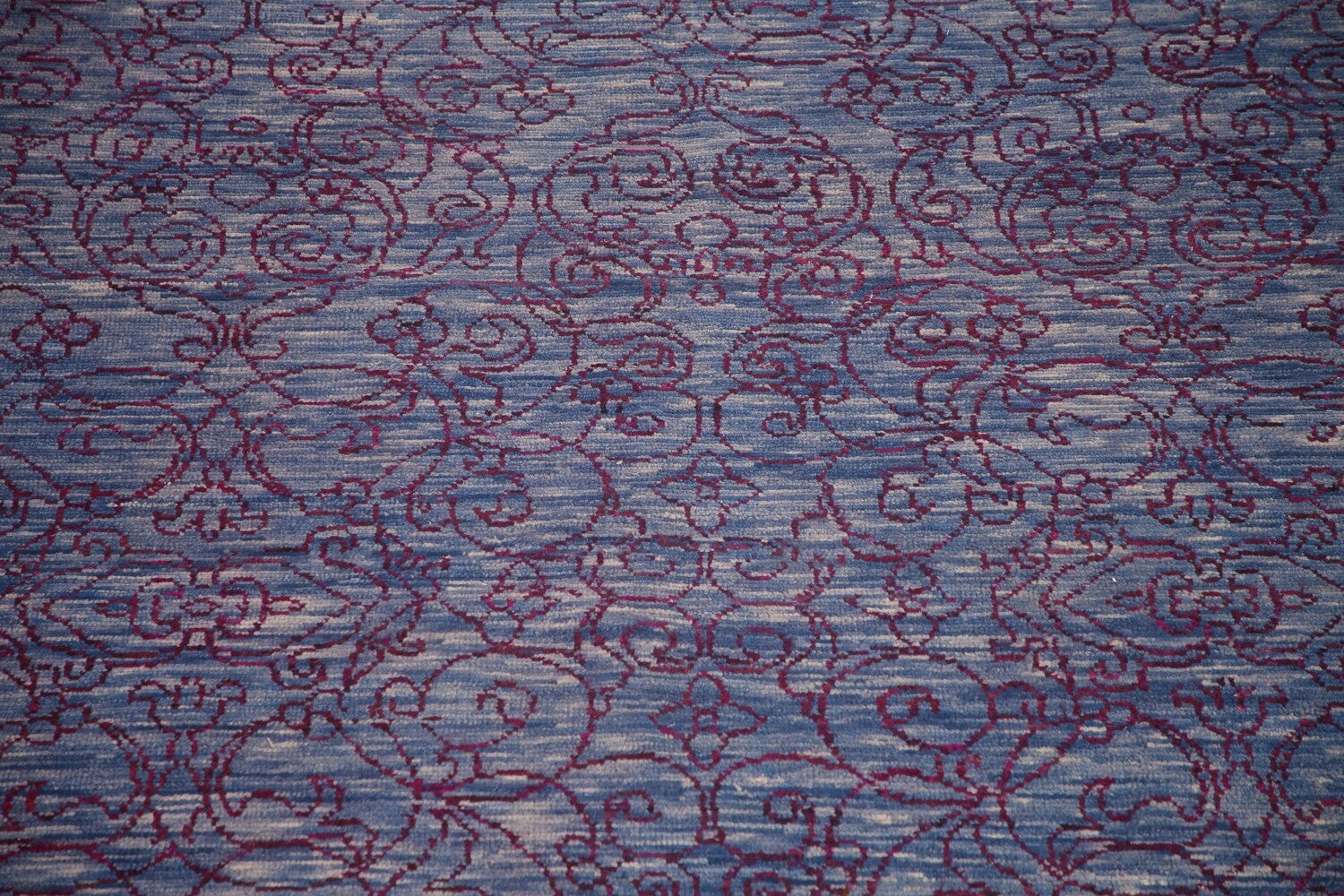 A Beautiful Genuine India IKats rug is Hand Knotted by skillful weavers in India with 100% Wool Material. This rug is in condition. dimensions are 14' 8'' X 11' 10'' in foot and 447 X 361 in centimeter. the primary color is Navy Blue & Blues.