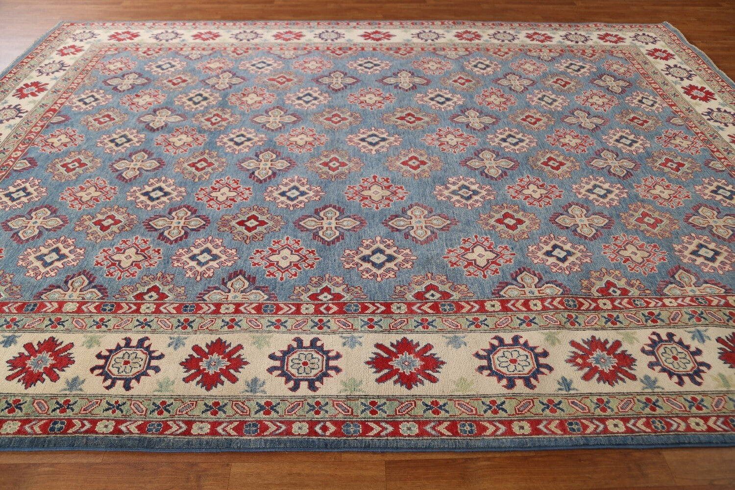 All-Over Blue Kazak Handmade Area Rug 9x12