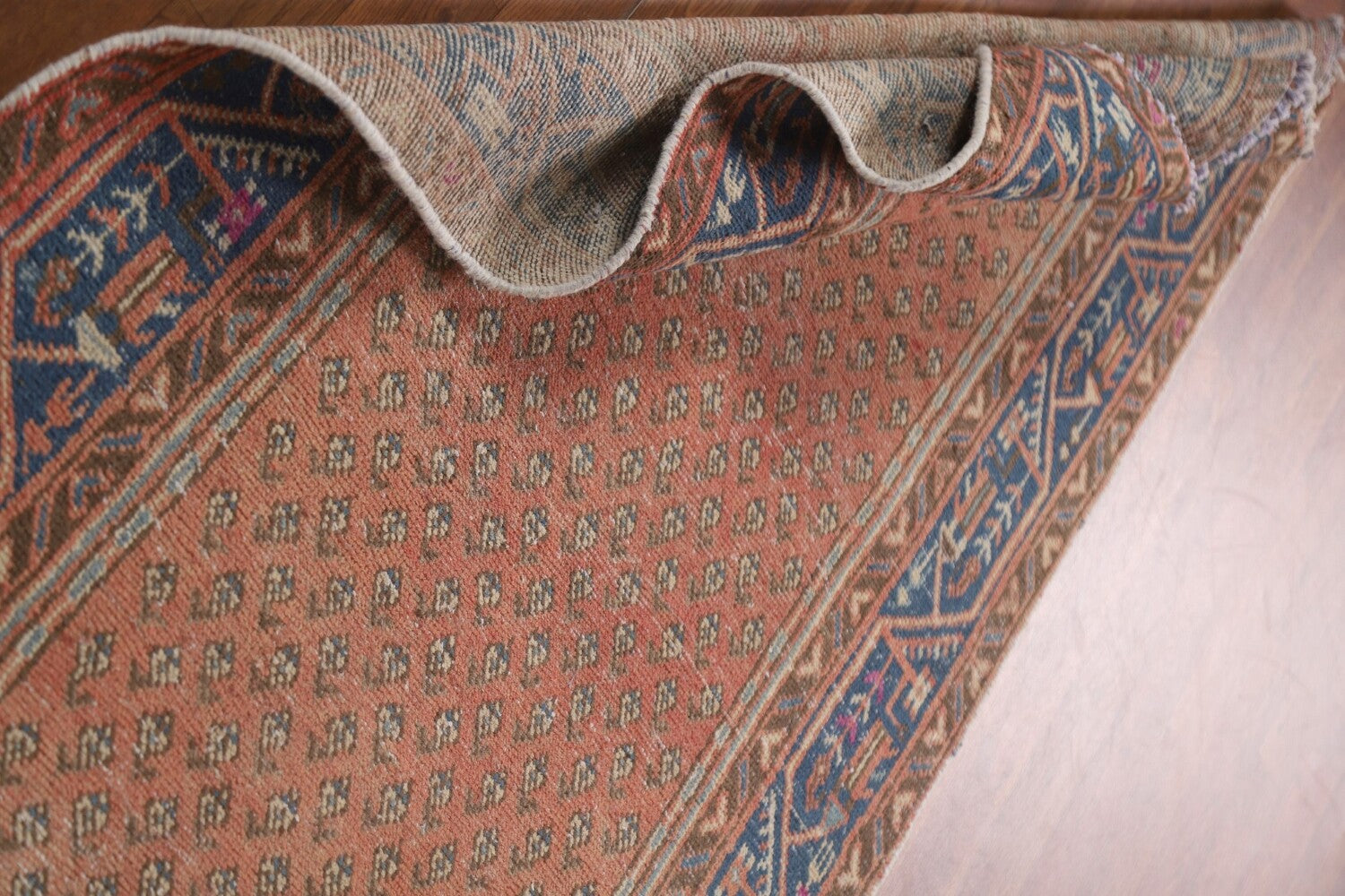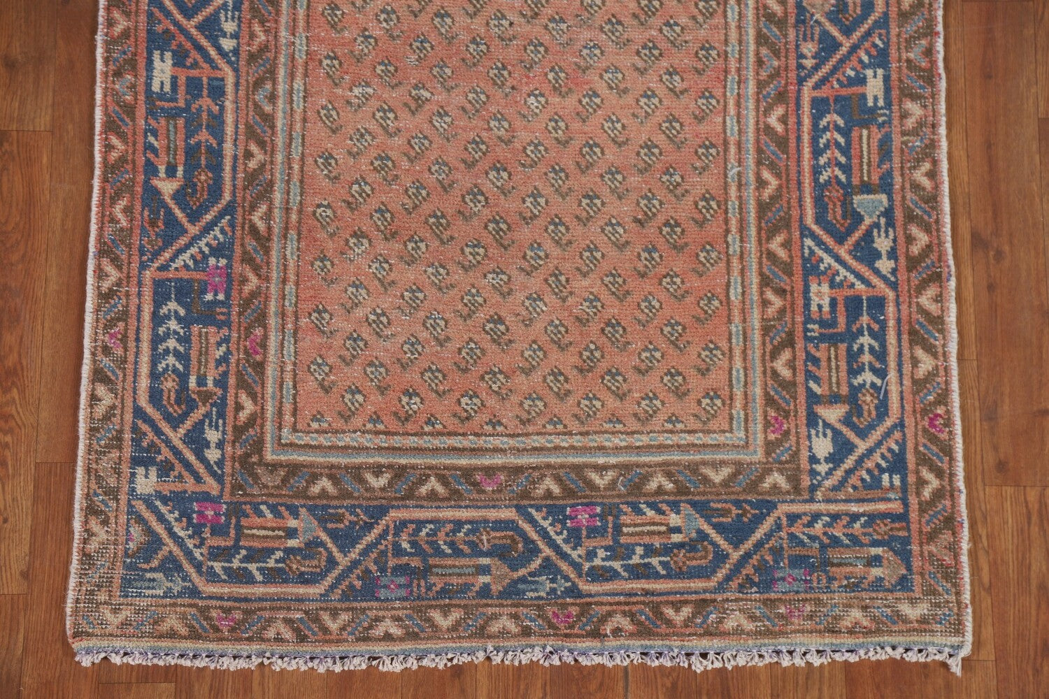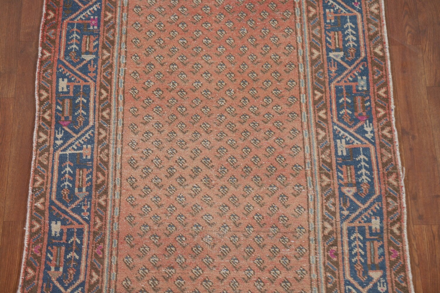 A Beautiful Genuine Persia ( Persia ) Botemir rug is Hand Knotted by skillful weavers in Persia ( Persia ) with 100% Wool Material. This rug is in Very Good (Low Pile) condition. dimensions are 10' 0'' X 3' 3'' in foot and 305 X 99 in centimeter. the primary color is Pink.