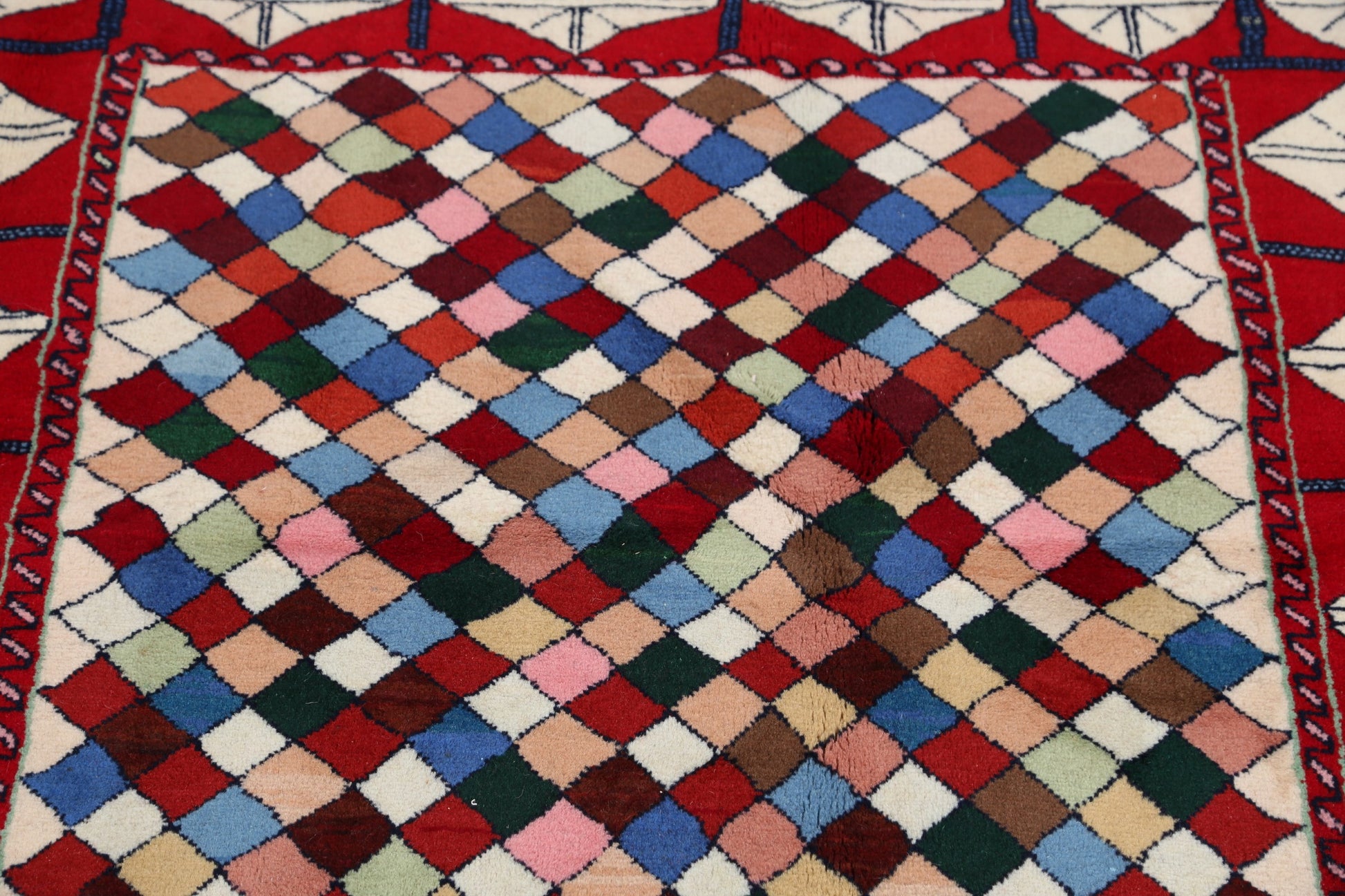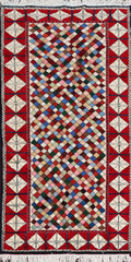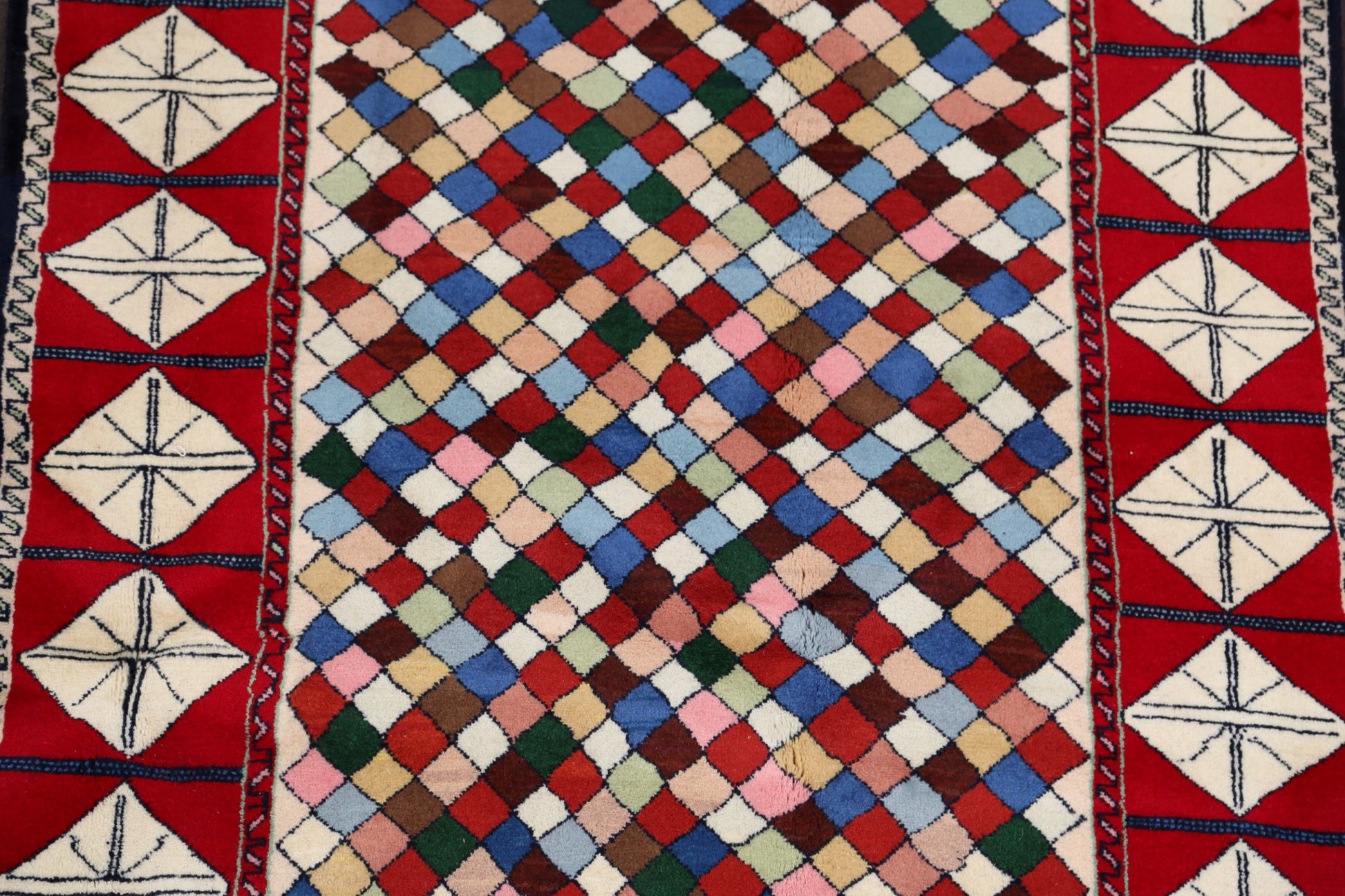 All-Over Checkered Ardebil Persian Runner Rug 4x8