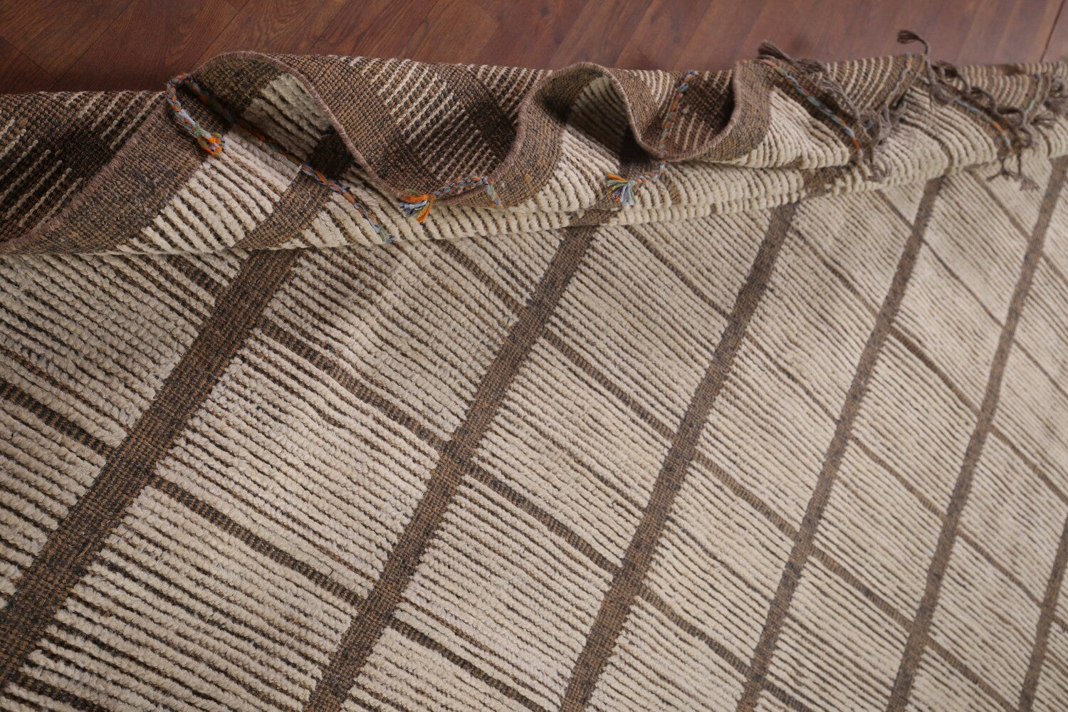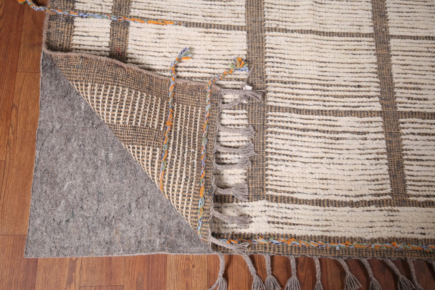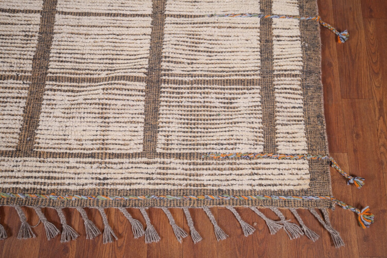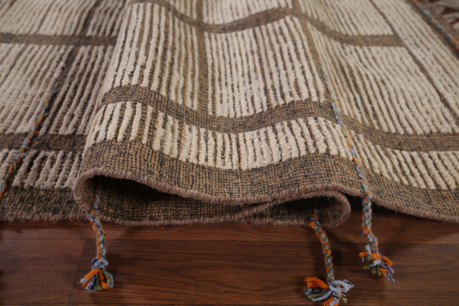 A Beautiful Genuine Pakistan Moroccan rug is Hand Knotted by skillful weavers in Pakistan with 100% Wool Material. This rug is in New, First Quality condition. dimensions are 12' 3'' X 8' 0'' in foot and 373 X 244 in centimeter. the primary color is Beige & Ivories.