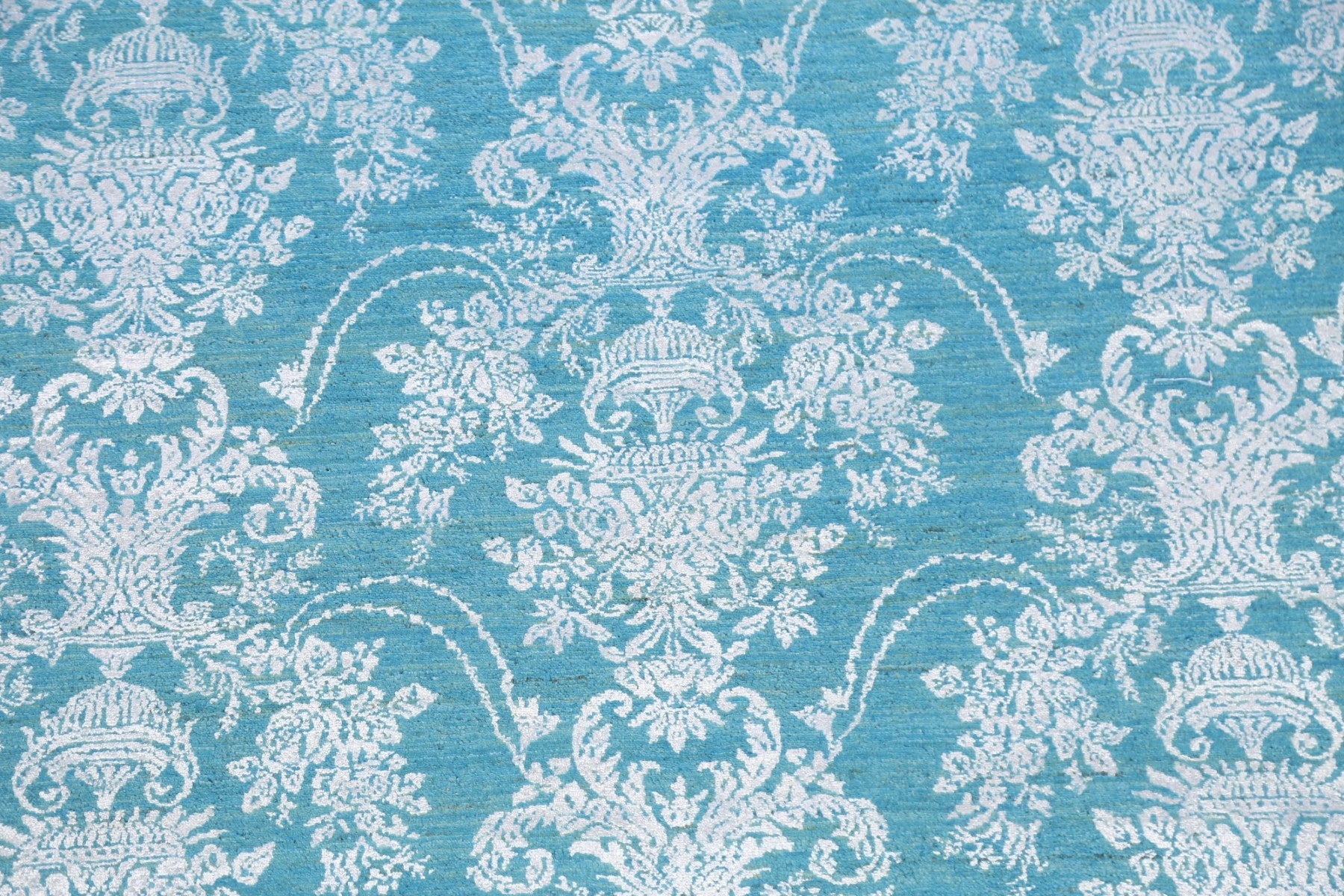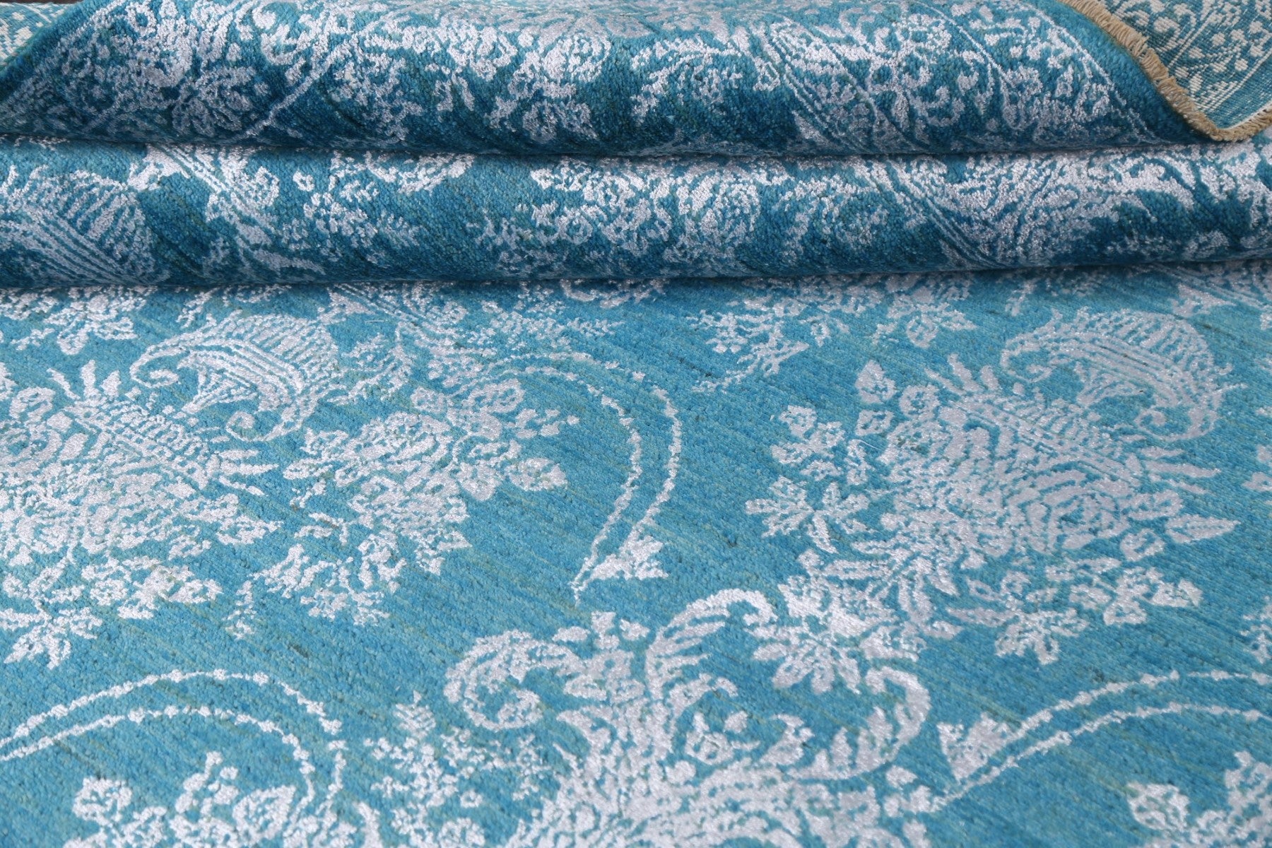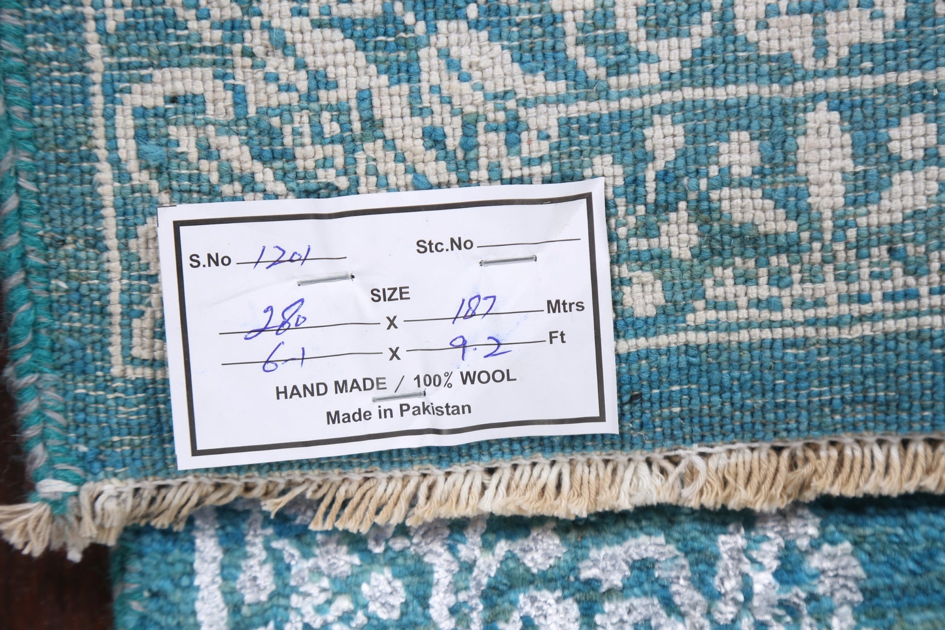 A Beautiful Genuine Pakistan Art & Craft rug is Hand Knotted by skillful weavers in Pakistan with Wool & Silk Material. This rug is in New, First Quality condition. dimensions are 9' 2'' X 6' 1'' in foot and 279 X 185 in centimeter. the primary color is Navy Blue & Blues.