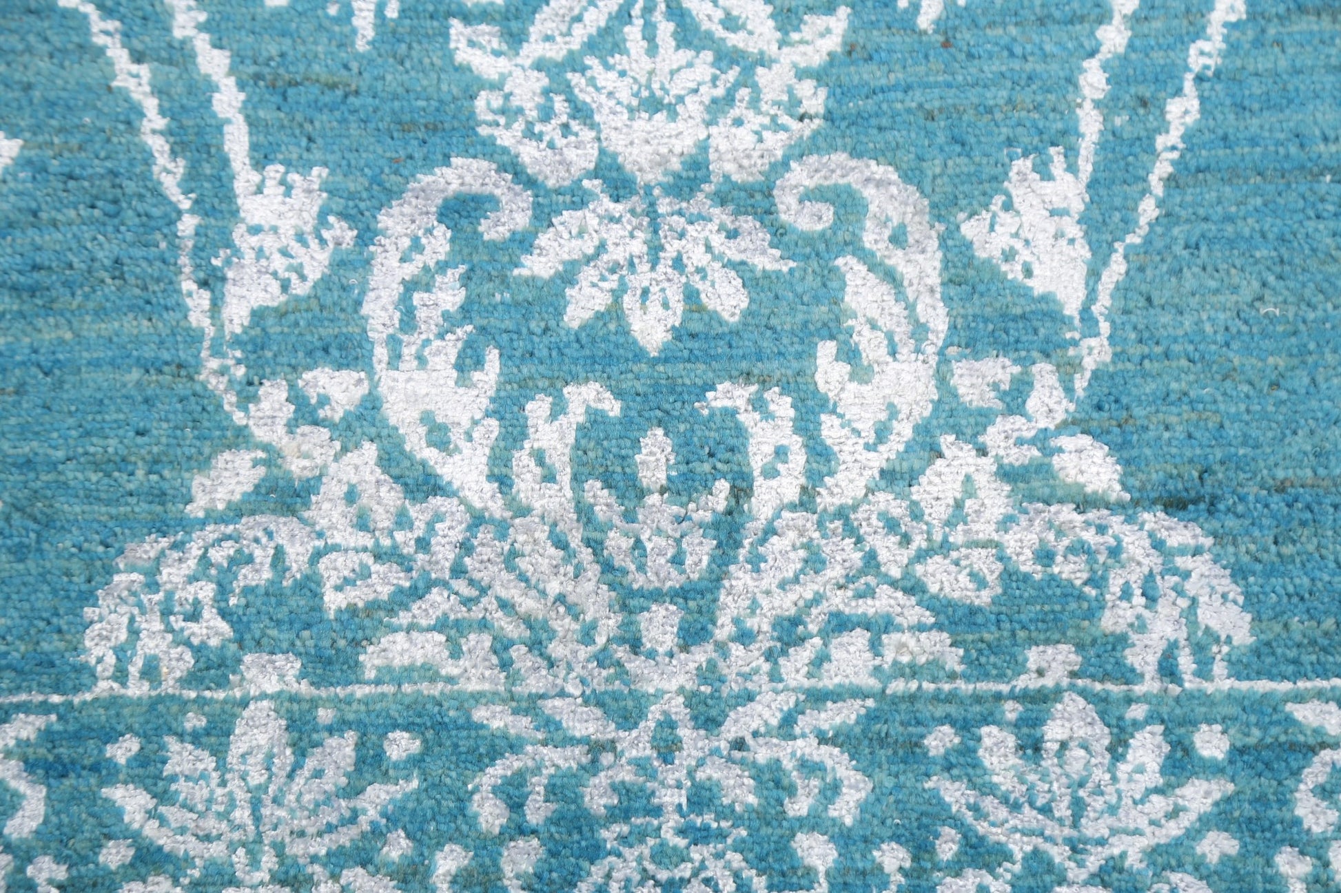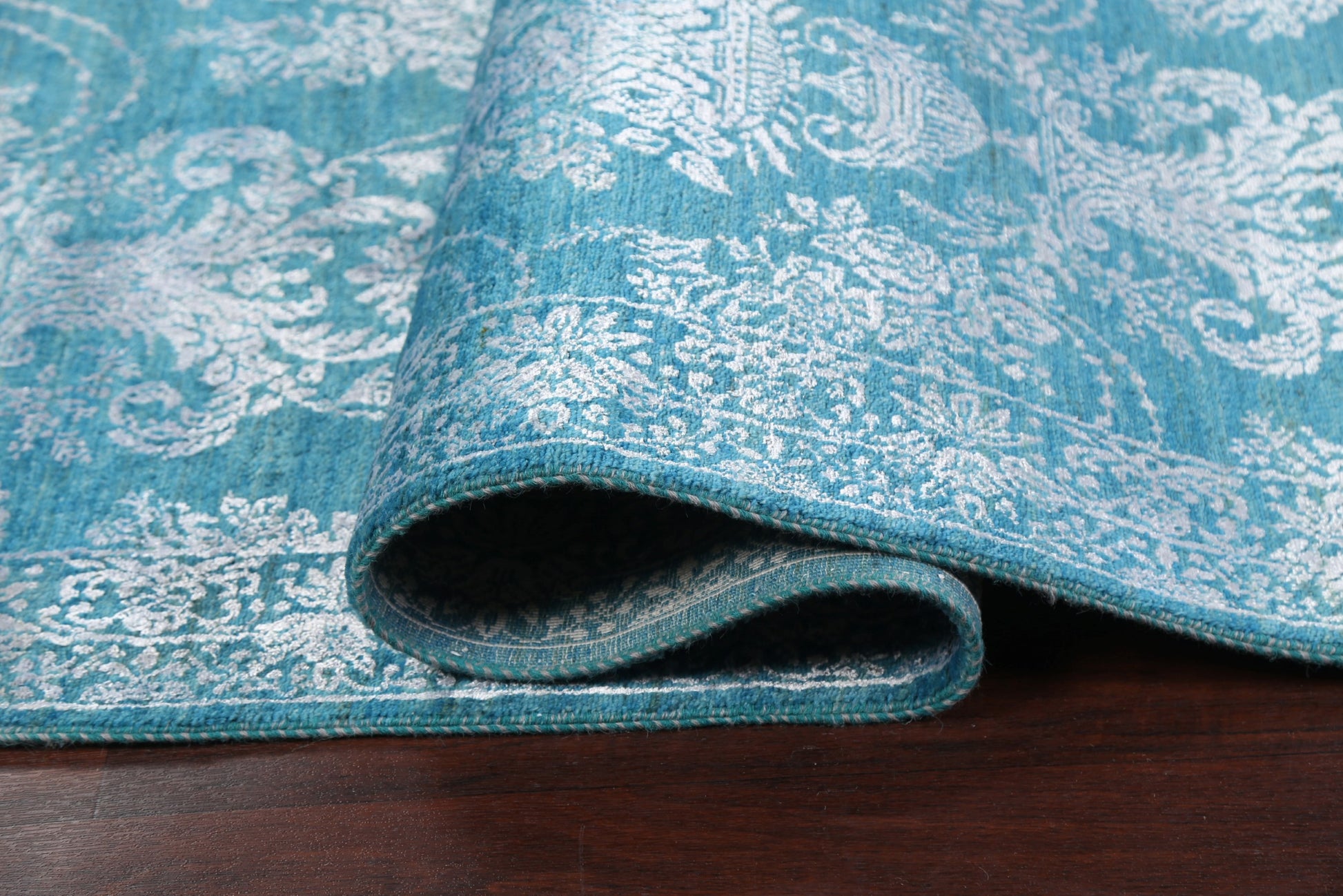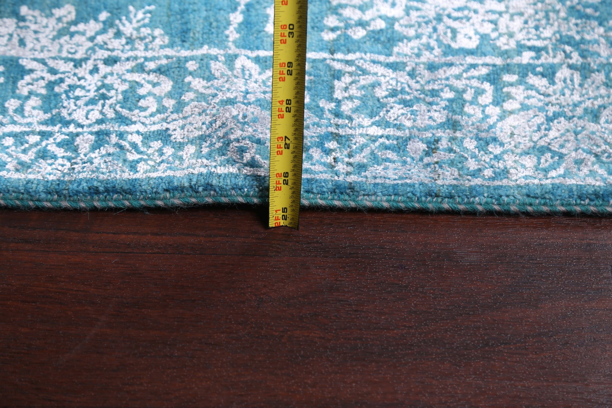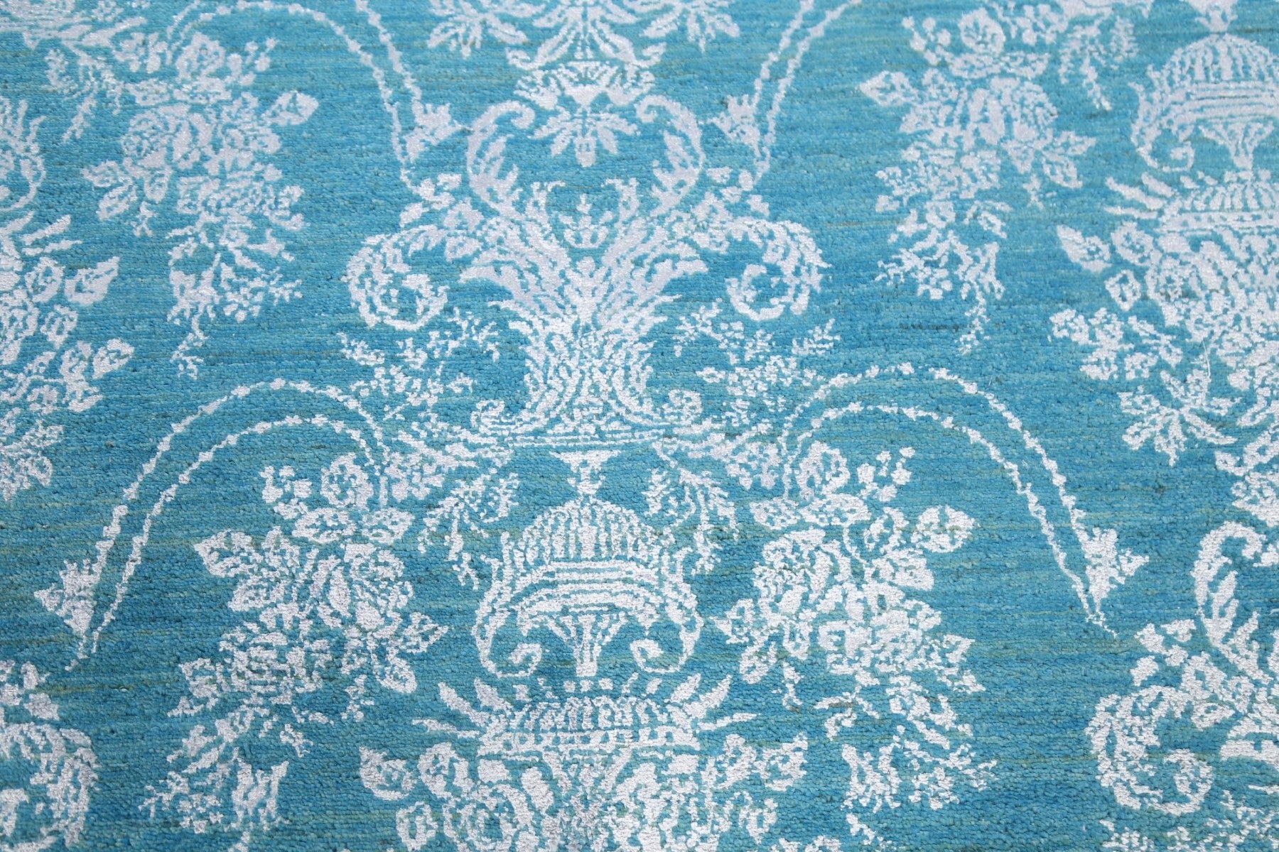 A Beautiful Genuine Pakistan Art & Craft rug is Hand Knotted by skillful weavers in Pakistan with Wool & Silk Material. This rug is in New, First Quality condition. dimensions are 9' 2'' X 6' 1'' in foot and 279 X 185 in centimeter. the primary color is Navy Blue & Blues.