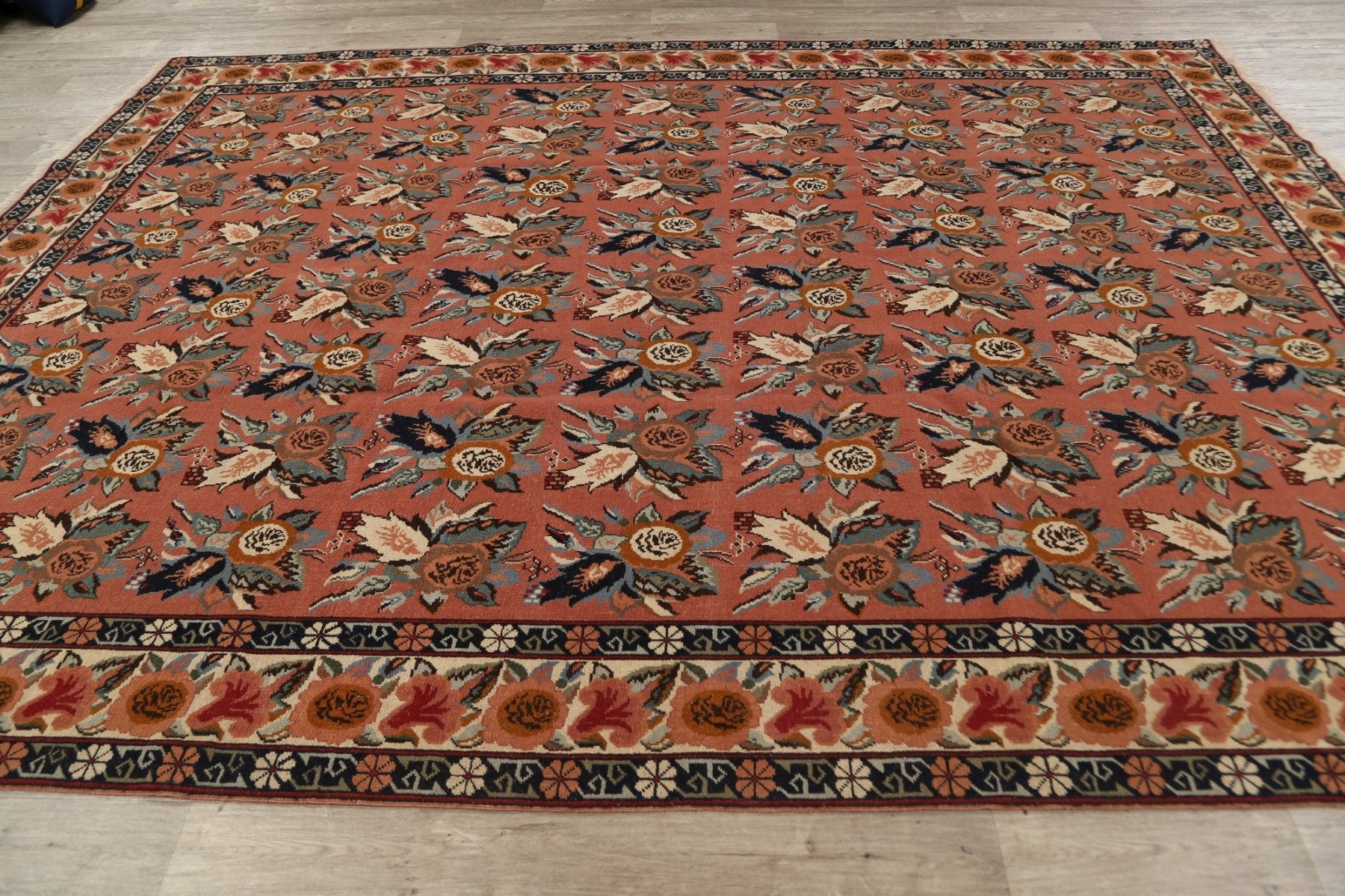 A Beautiful Genuine China Aubusson rug is Hand Knotted by skillful weavers in China with 100% Wool Material. This rug is in Very Good condition. dimensions are 10' 8'' X 7' 10'' in foot and 325 X 239 in centimeter. the primary color is Coral.