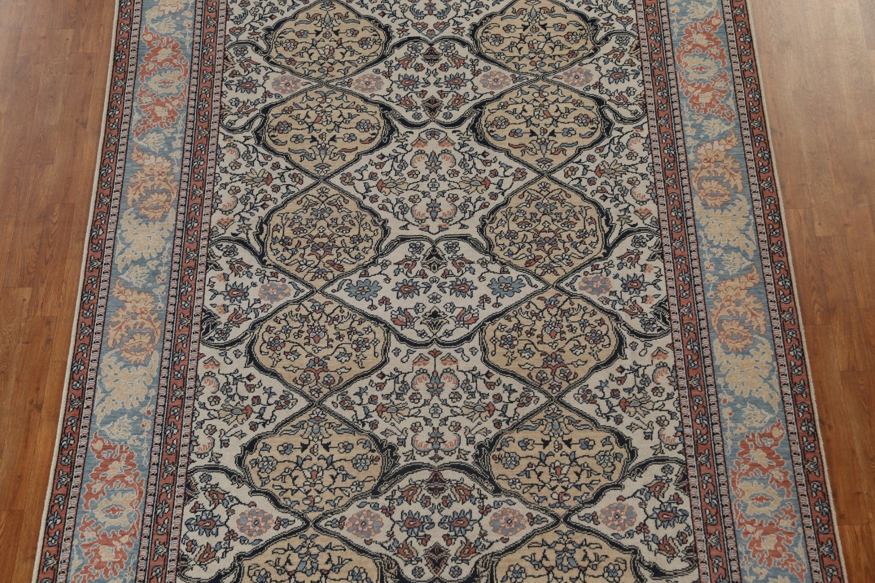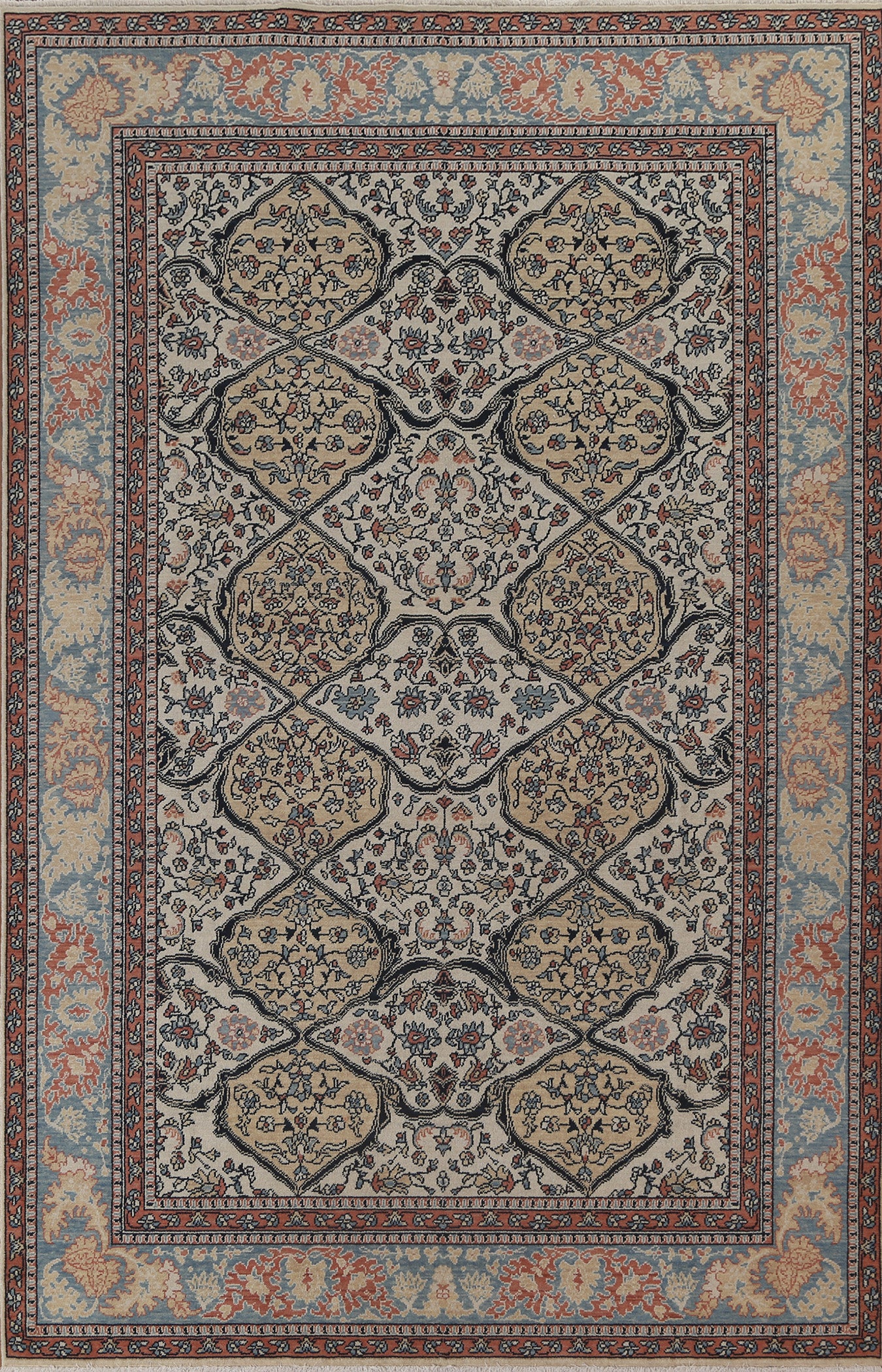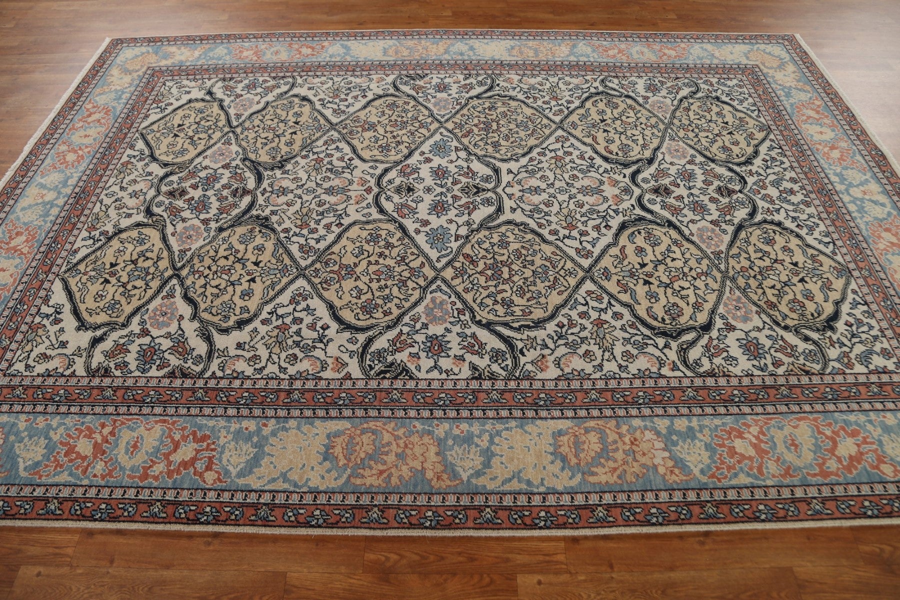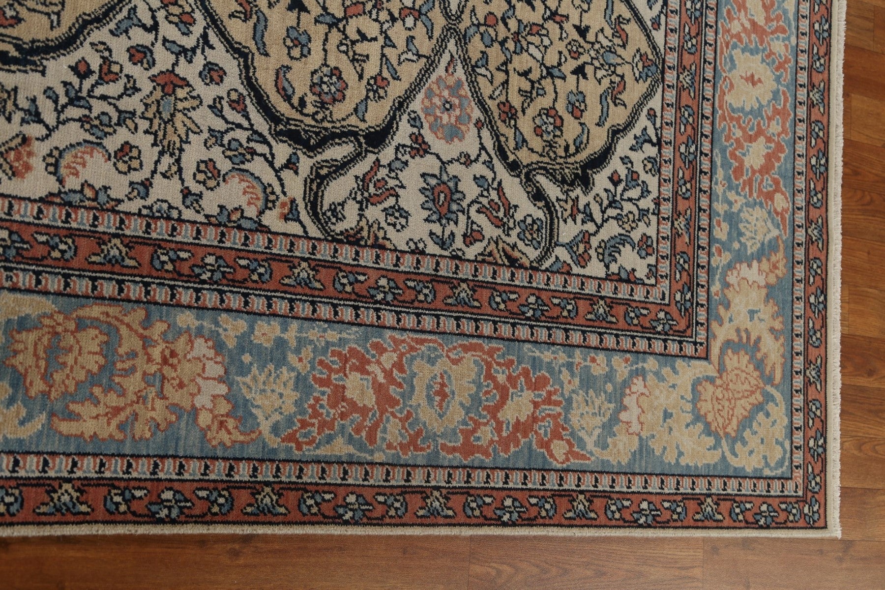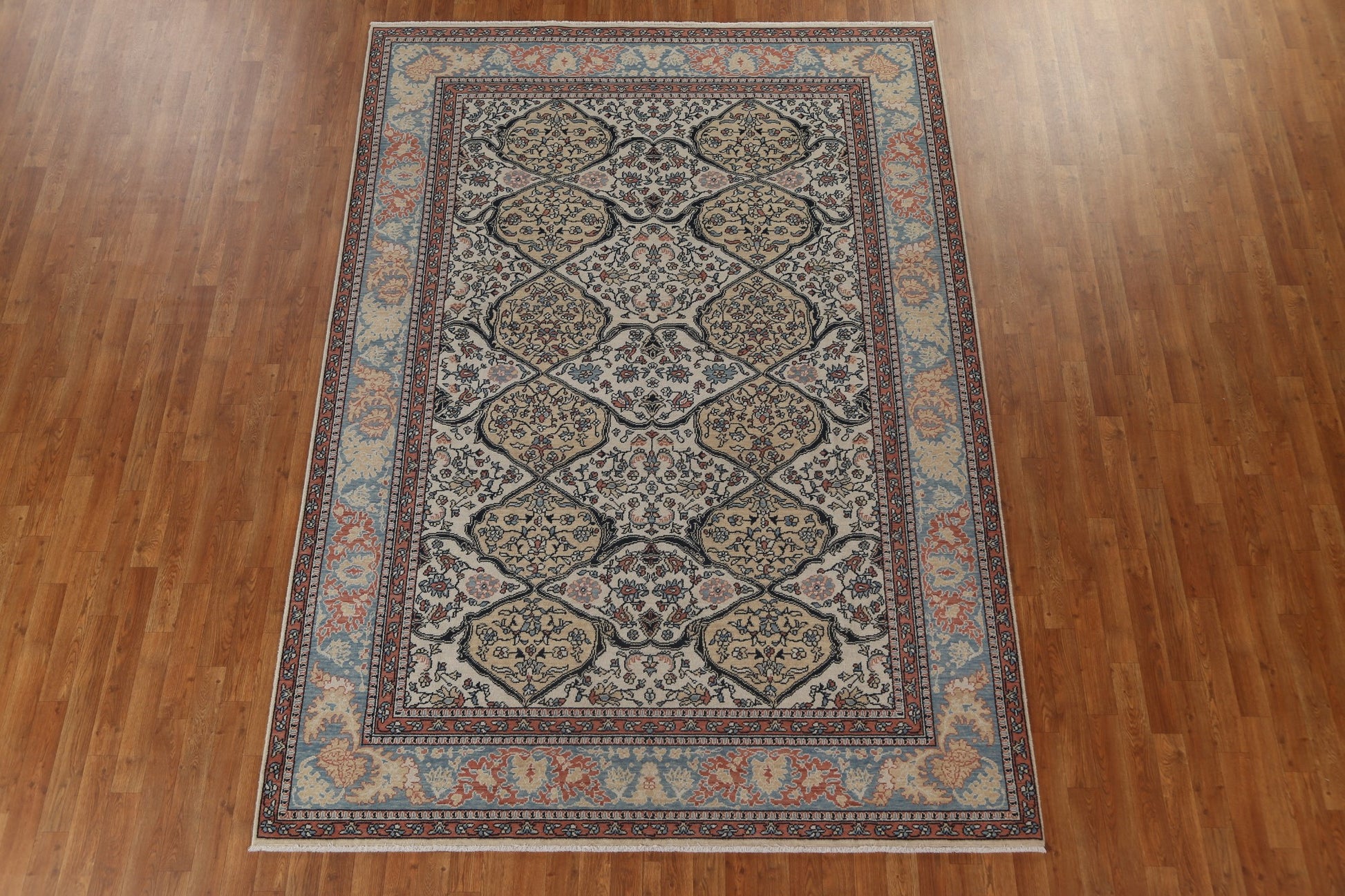 A Beautiful Genuine Turkey Bakhtiari rug is Hand Knotted by skillful weavers in Turkey with 100% Wool Material. This rug is in New, First Quality condition. dimensions are 9' 9'' X 7' 0'' in foot and 297 X 213 in centimeter. the primary color is Beige & Ivories.