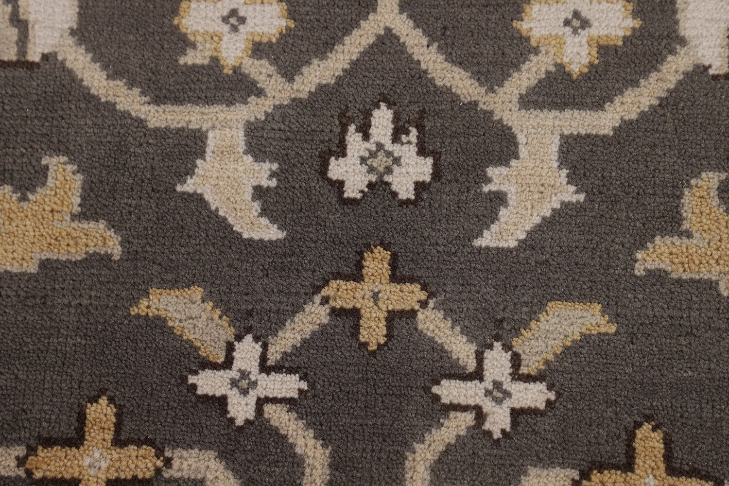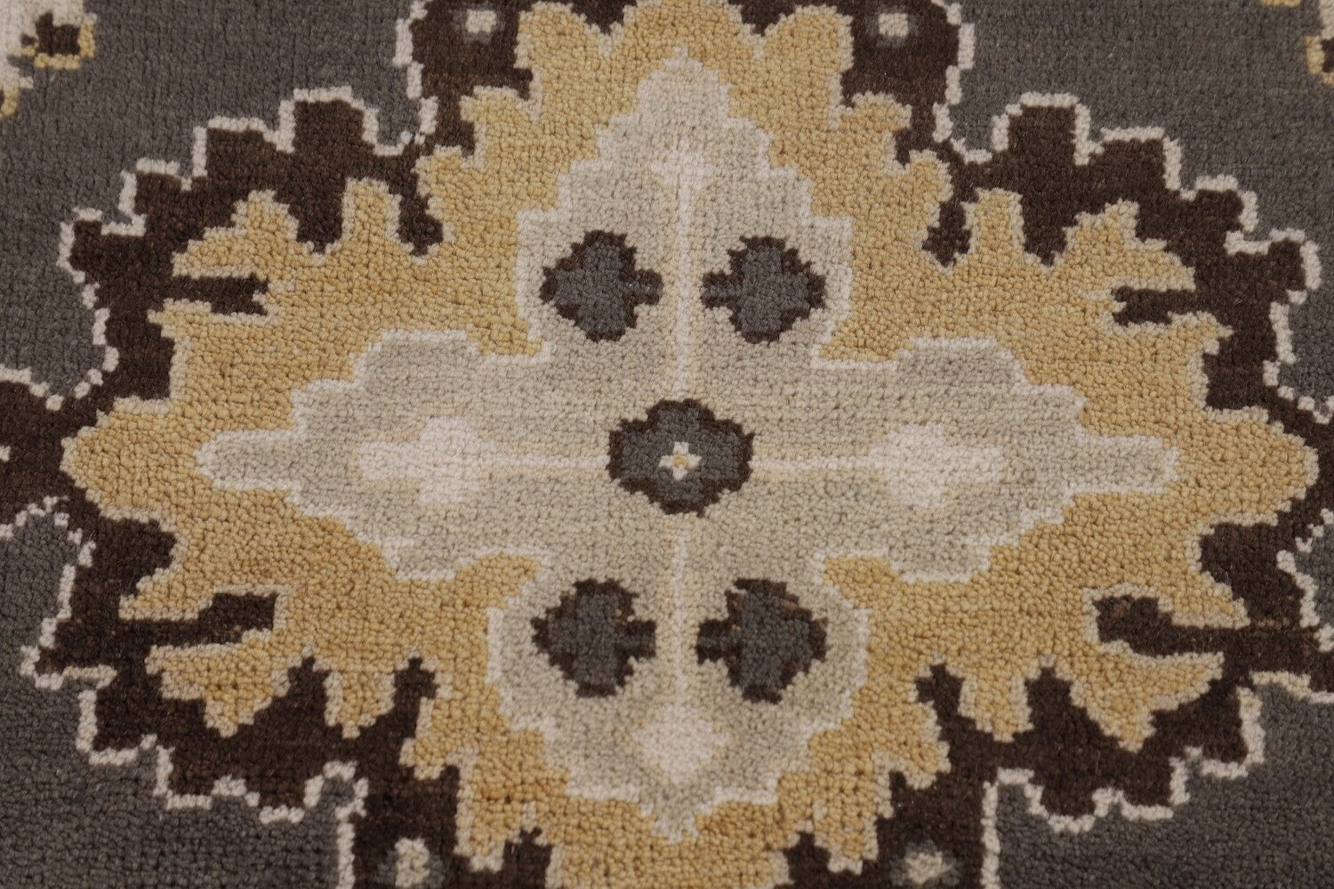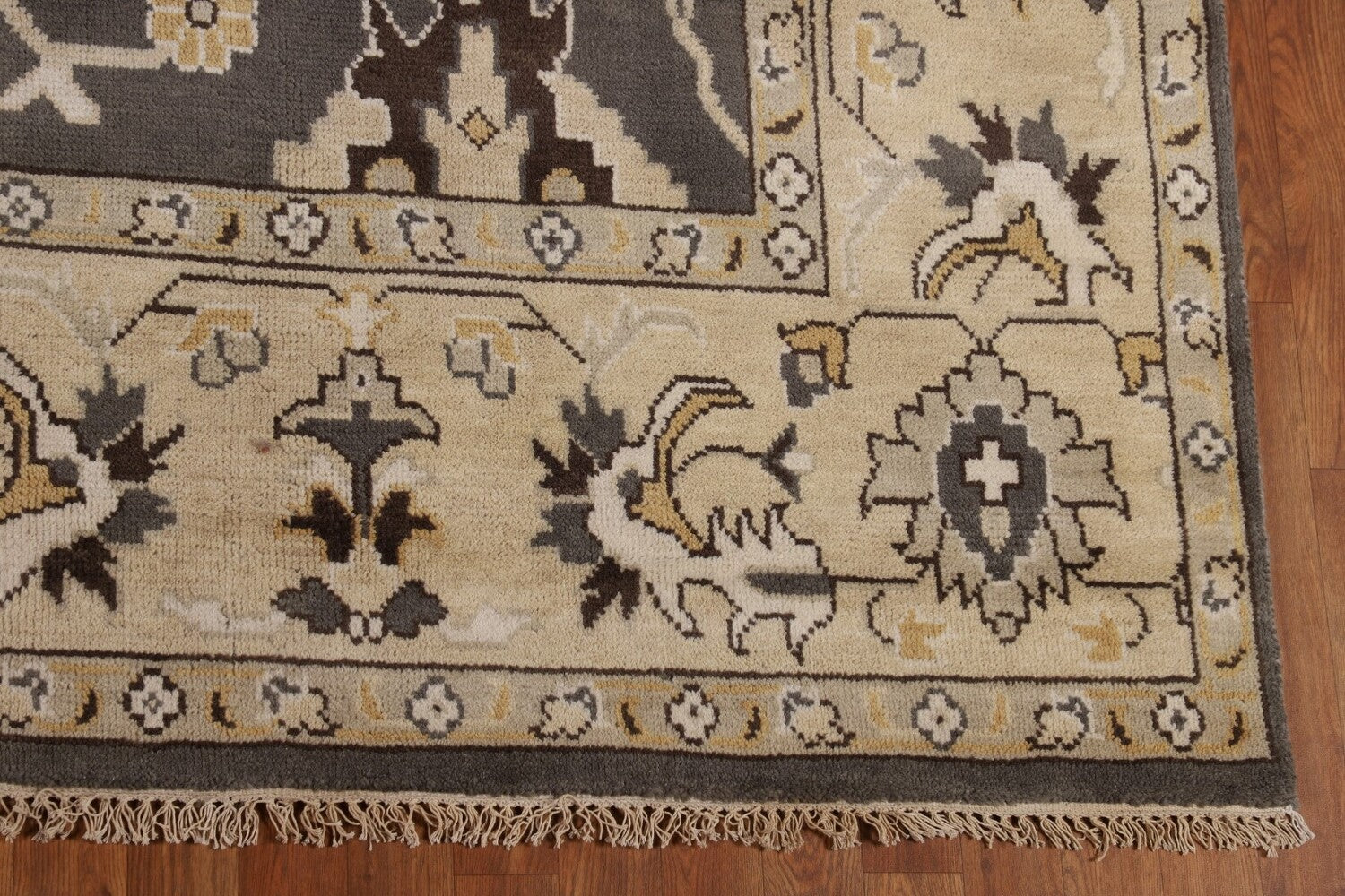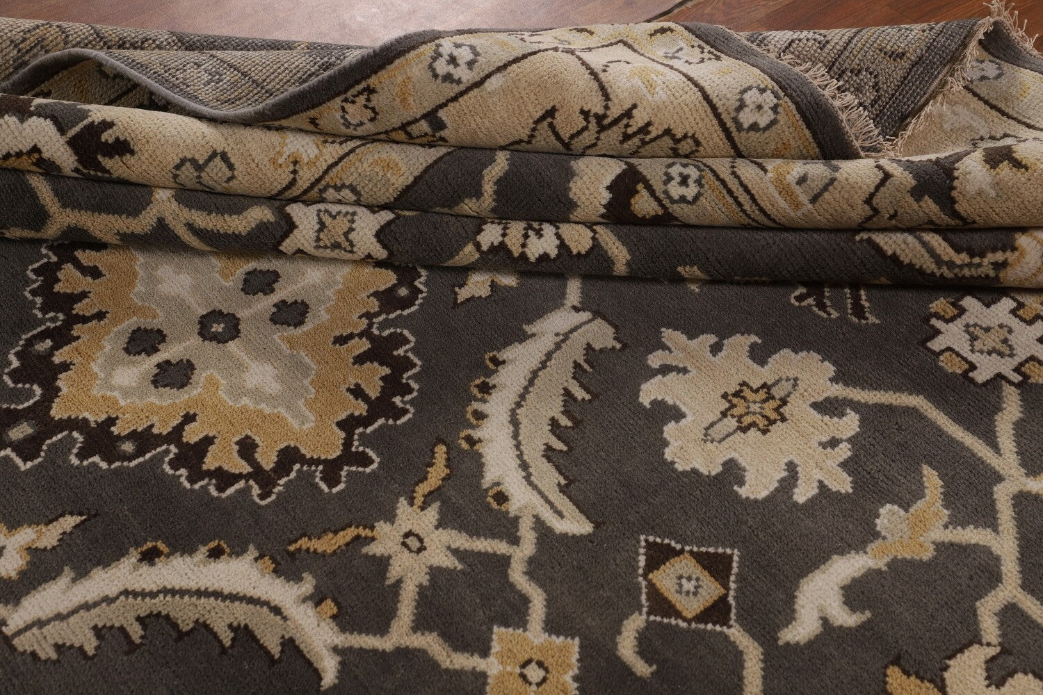 A Beautiful Genuine India Oushak rug is Hand Knotted by skillful weavers in India with 100% Wool Material. This rug is in New, First Quality condition. dimensions are 11' 7'' X 9' 3'' in foot and 353 X 282 in centimeter. the primary color is Greys & Charcoal.