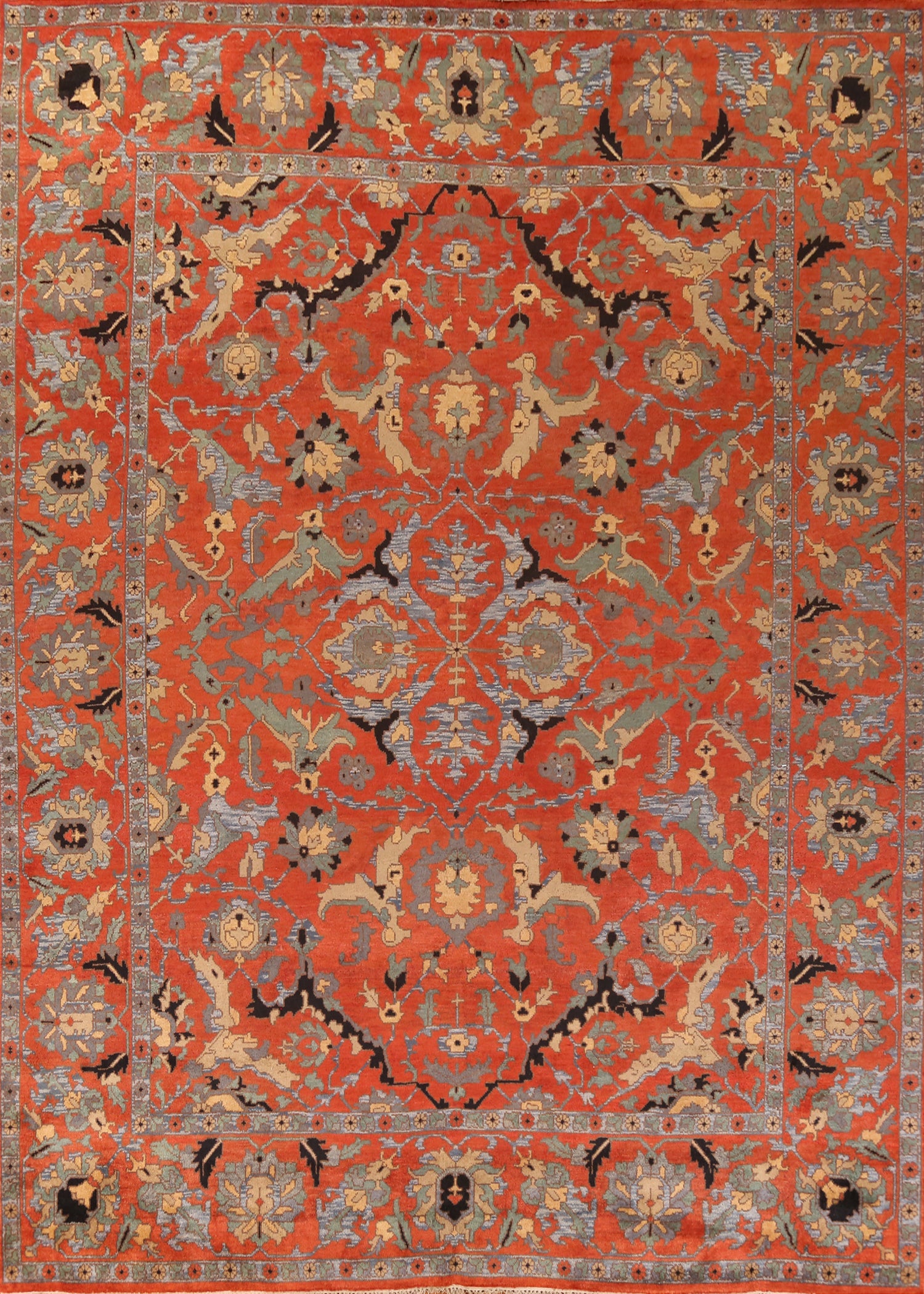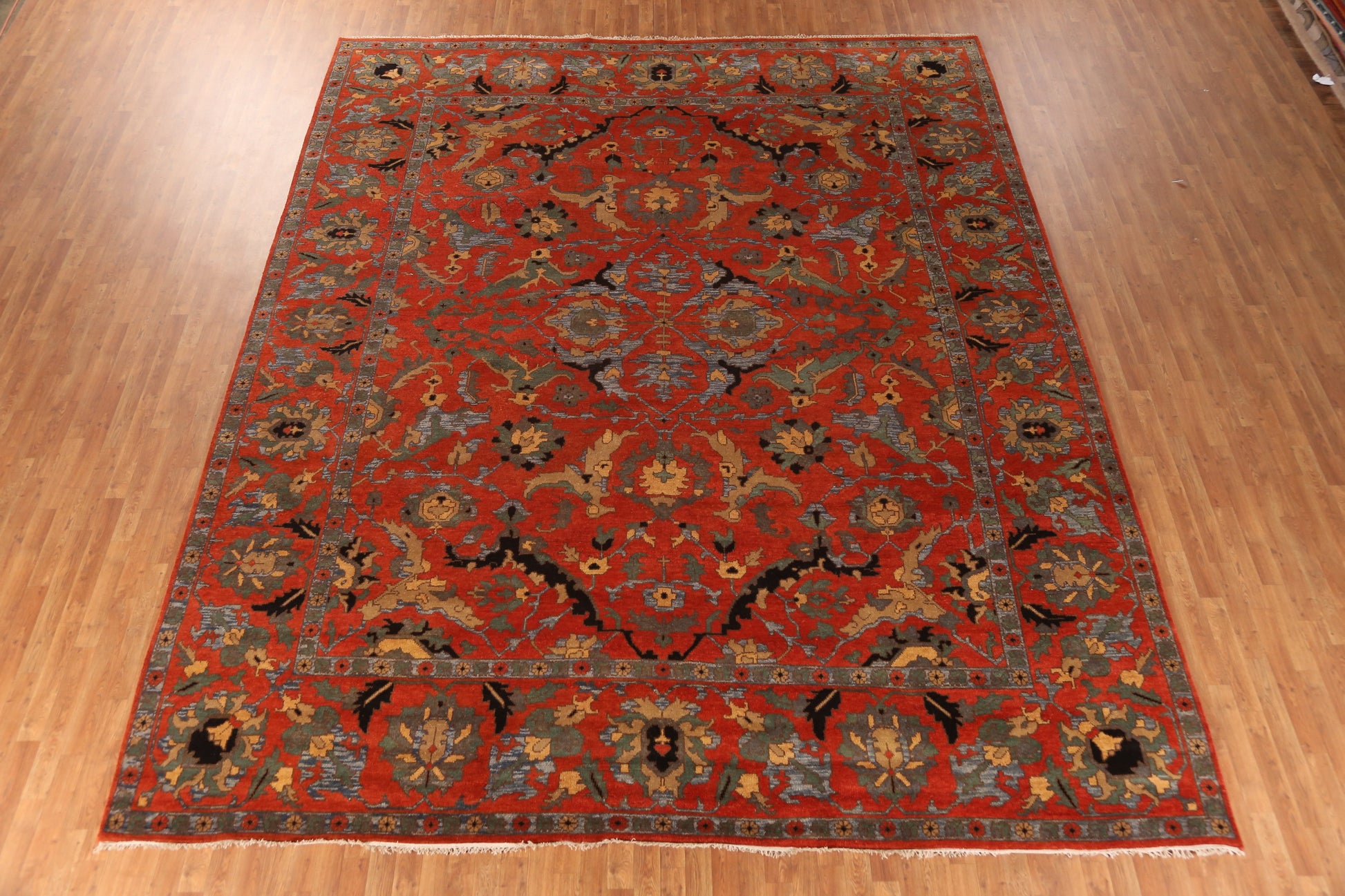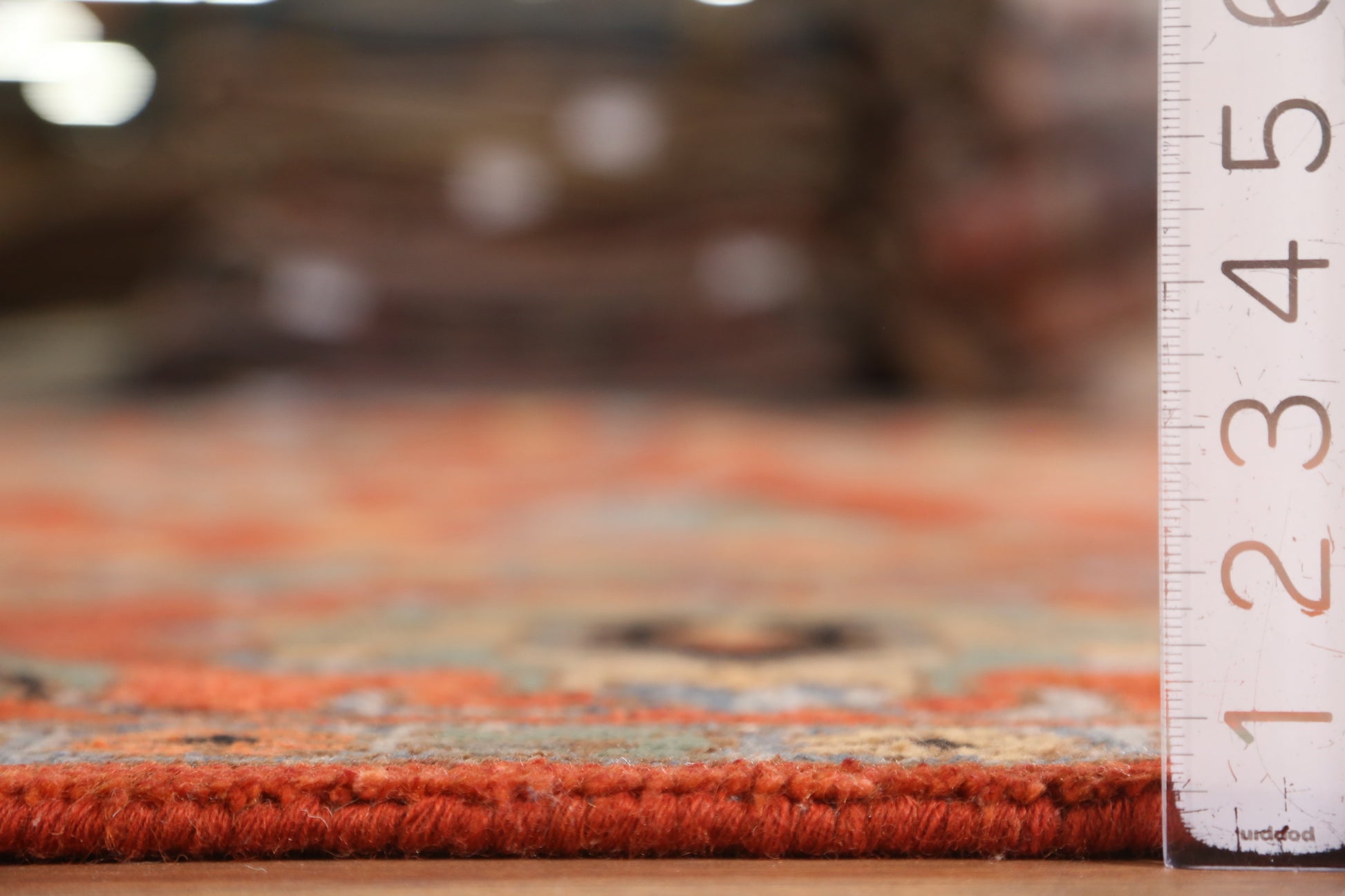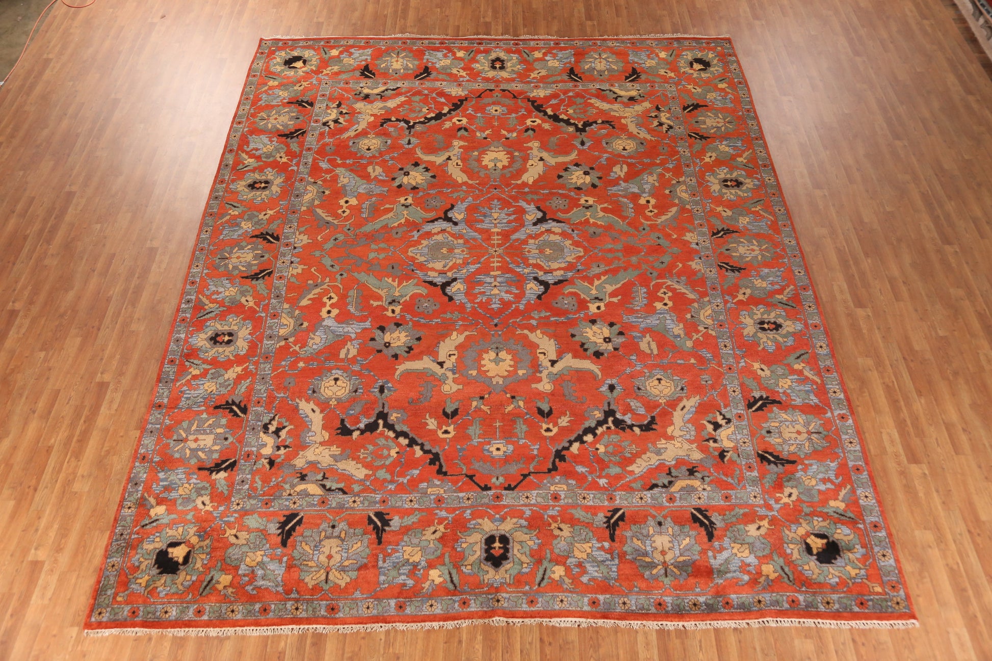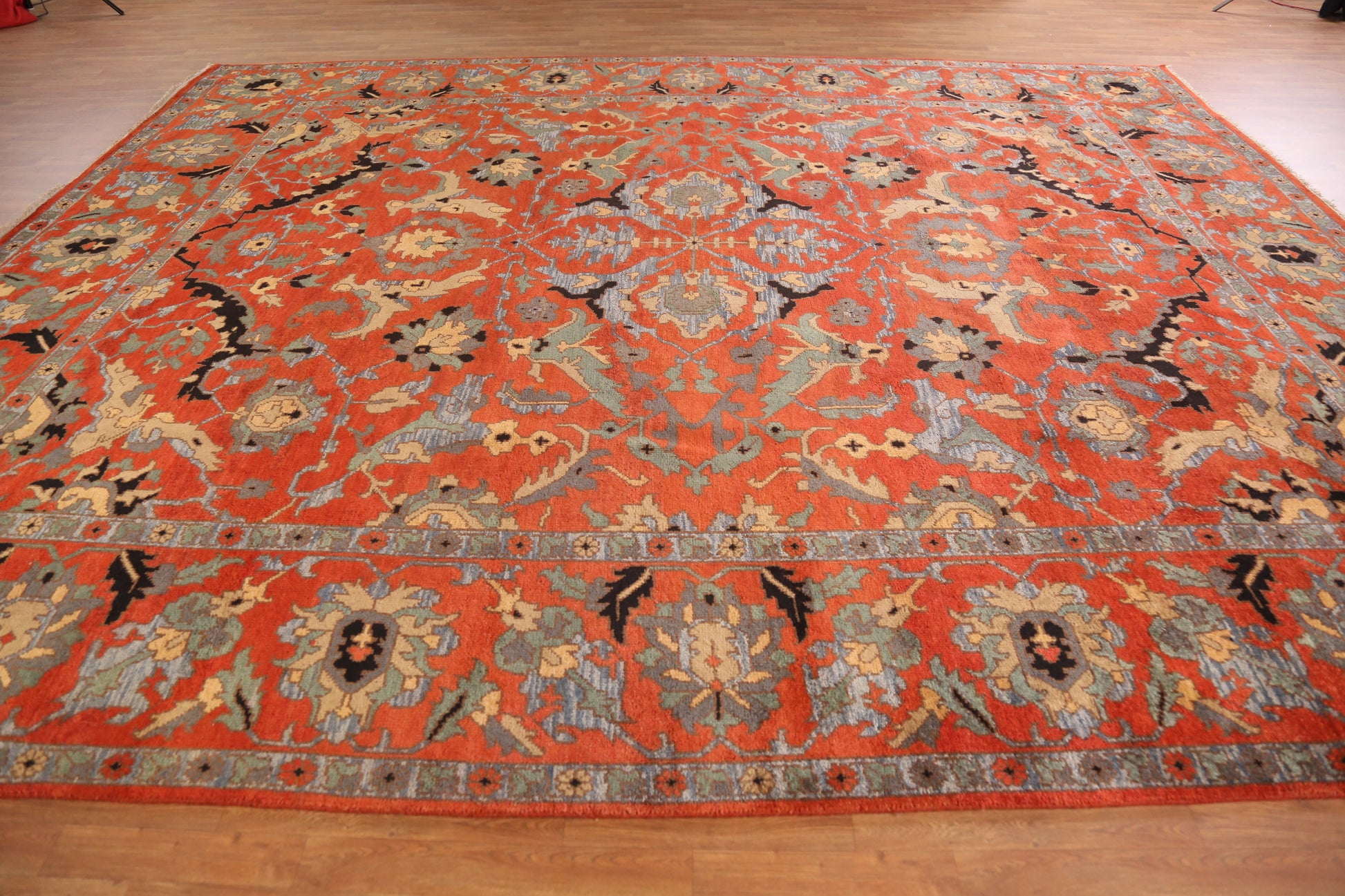 A Beautiful Genuine India Heriz (serapi) rug is Hand Knotted by skillful weavers in India with 100% Wool Material. This rug is in New, First Quality condition. dimensions are 14' 8'' X 12' 1'' in foot and 447 X 368 in centimeter. the primary color is Oranges & Rust.