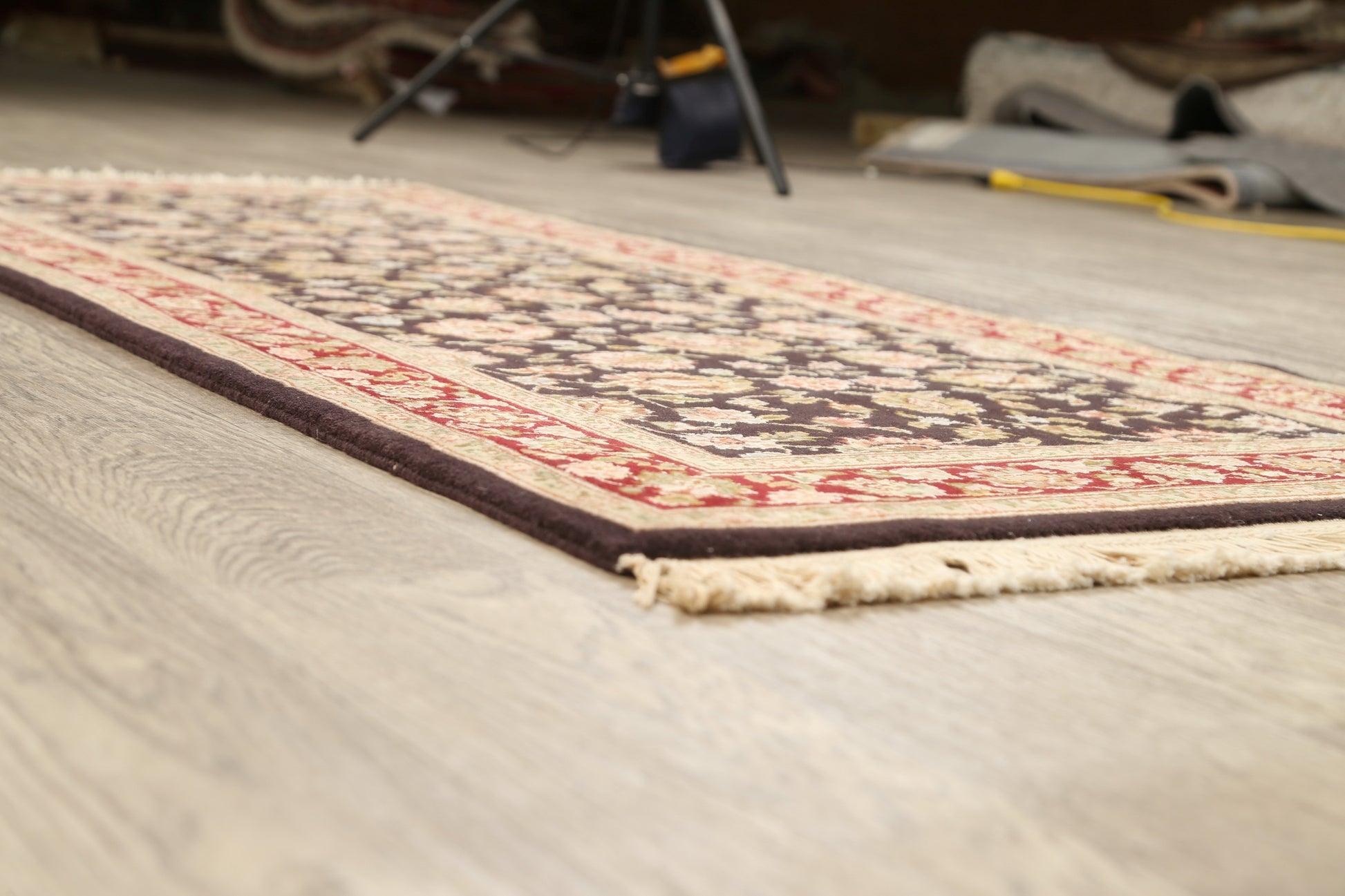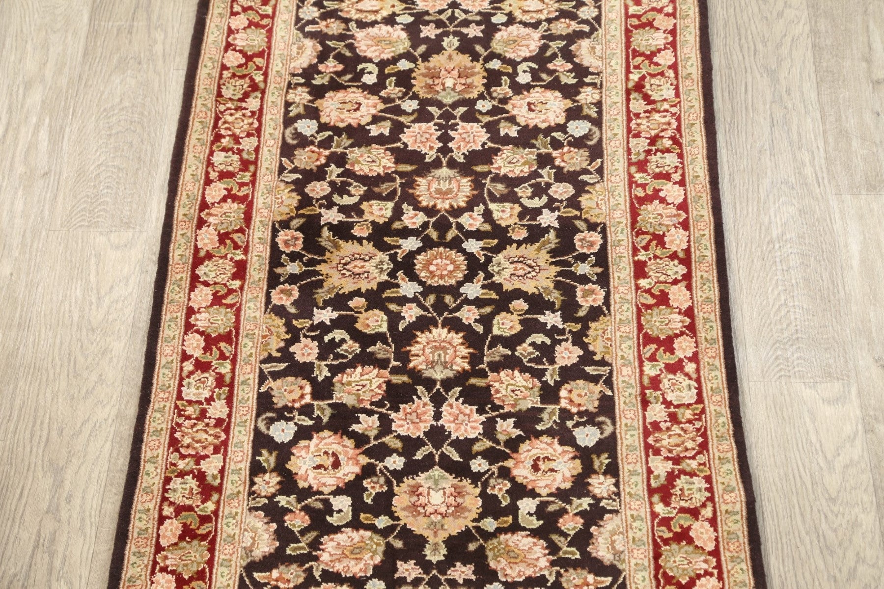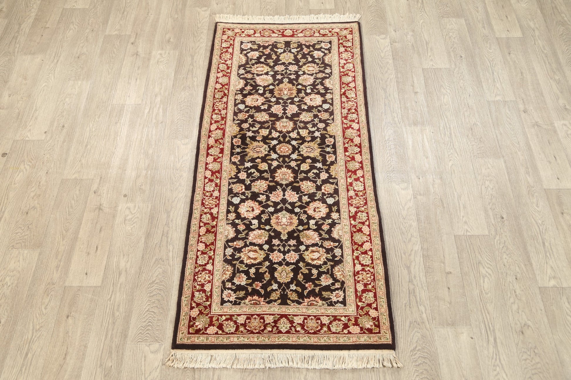 A Beautiful Genuine Pakistan Kashan rug is Hand Knotted by skillful weavers in Pakistan with 100% Wool Material. This rug is in New, First Quality condition. dimensions are 6' 2'' X 2' 8'' in foot and 188 X 81 in centimeter. the primary color is Brown.