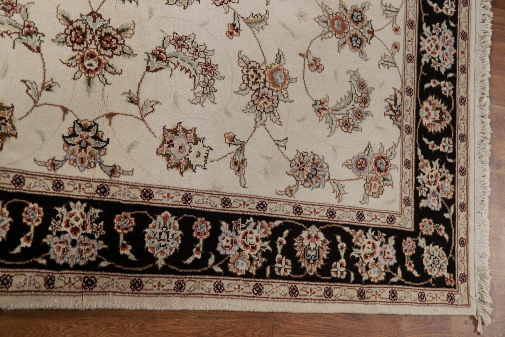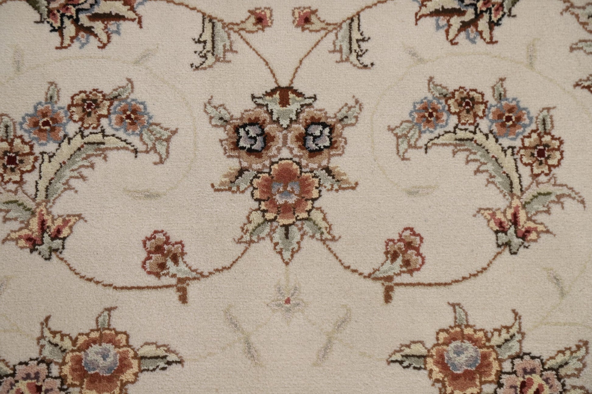 A Beautiful Genuine China Kashan rug is Hand Knotted by skillful weavers in China with Wool & Silk Material. This rug is in condition. dimensions are 6' 0'' X 4' 1'' in foot and 183 X 124 in centimeter. the primary color is Beige & Ivories.