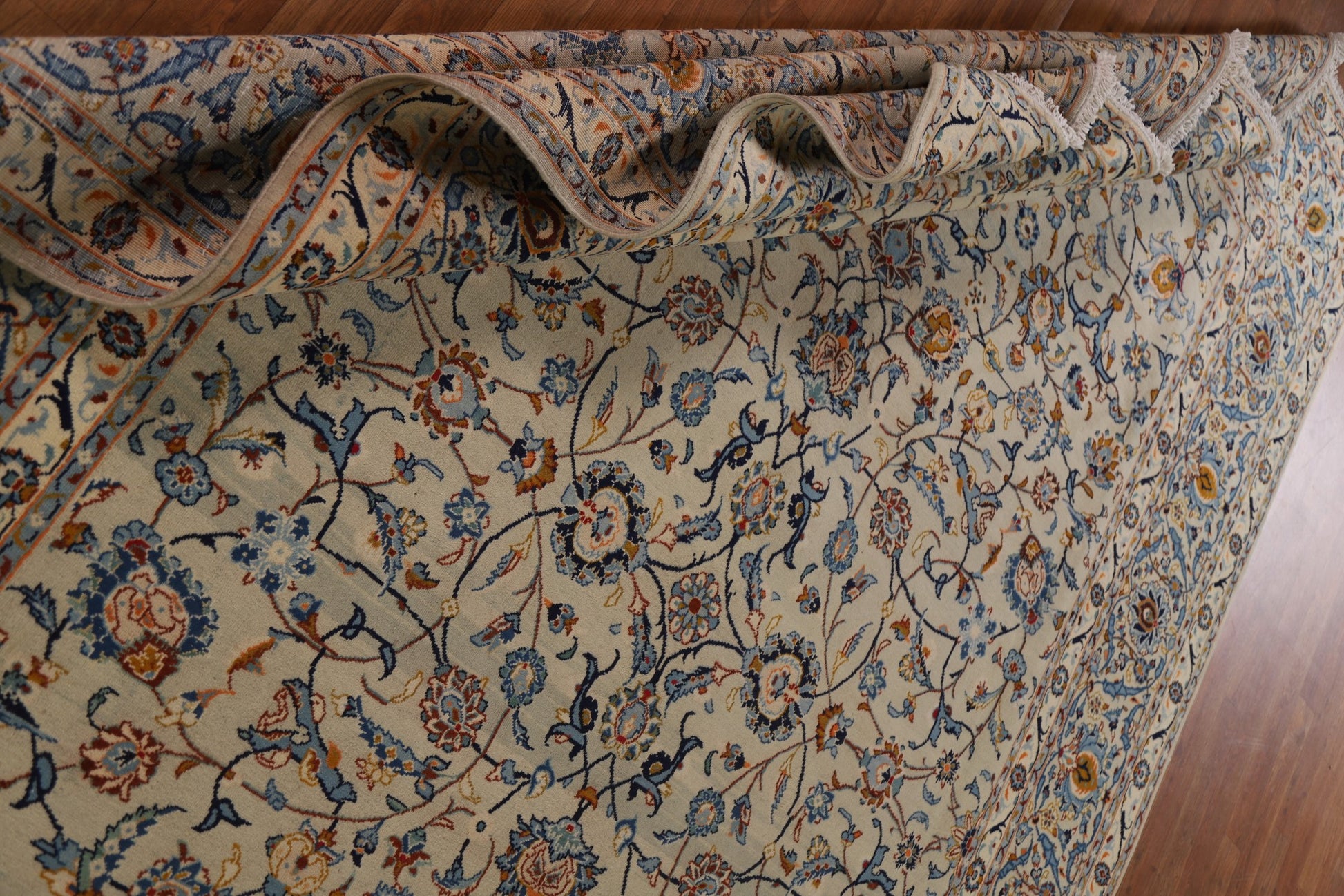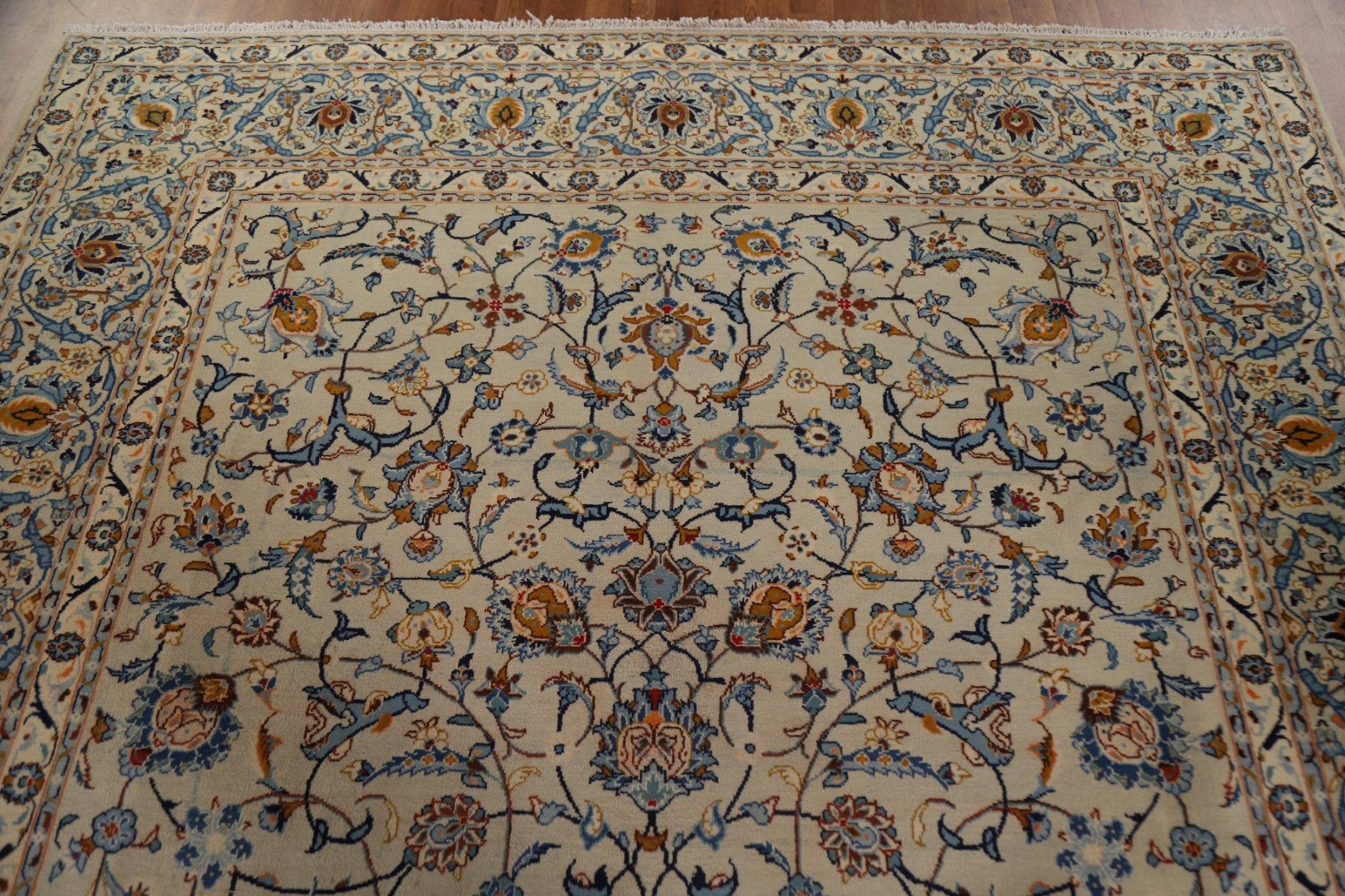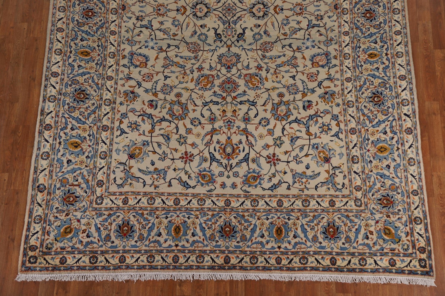 A Beautiful Genuine Persia ( Persia ) Kashan rug is Hand Knotted by skillful weavers in Persia ( Persia ) with 100% Wool Material. This rug is in Very Good (Abrash) condition. dimensions are 11' 0'' X 7' 6'' in foot and 335 X 229 in centimeter. the primary color is Green.