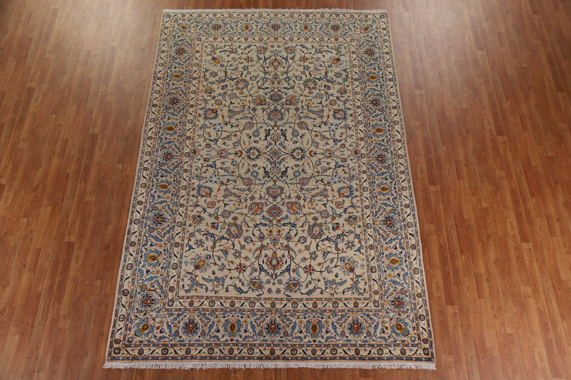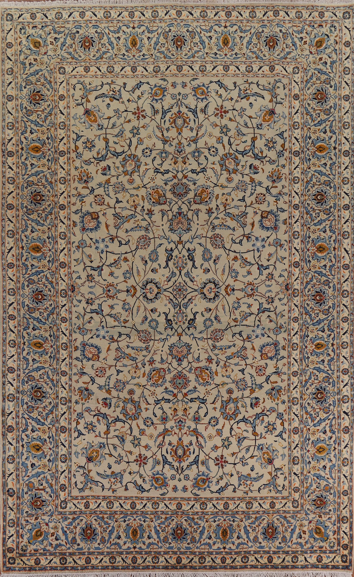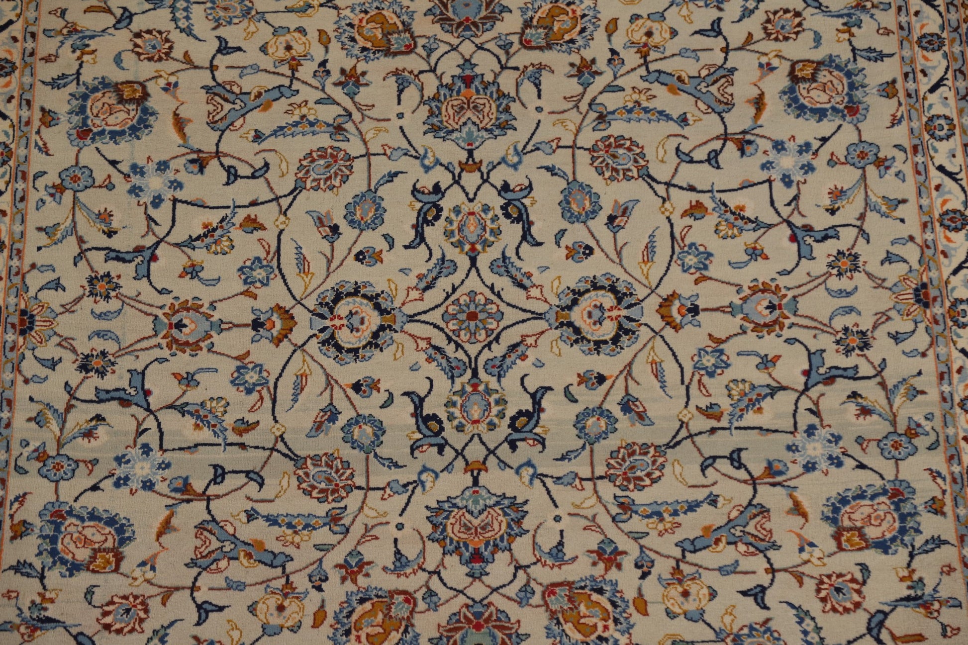 A Beautiful Genuine Persia ( Persia ) Kashan rug is Hand Knotted by skillful weavers in Persia ( Persia ) with 100% Wool Material. This rug is in Very Good (Abrash) condition. dimensions are 11' 0'' X 7' 6'' in foot and 335 X 229 in centimeter. the primary color is Green.