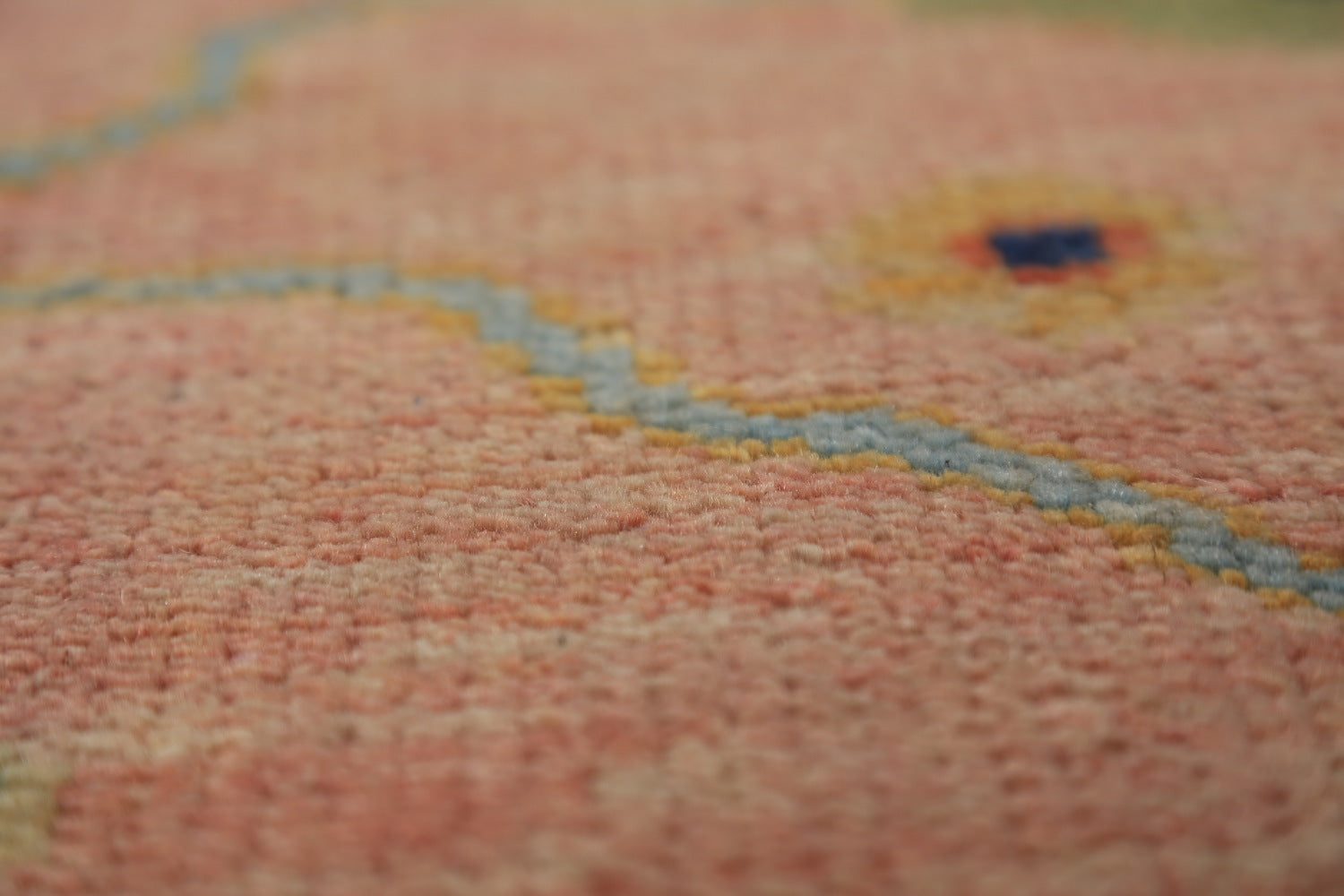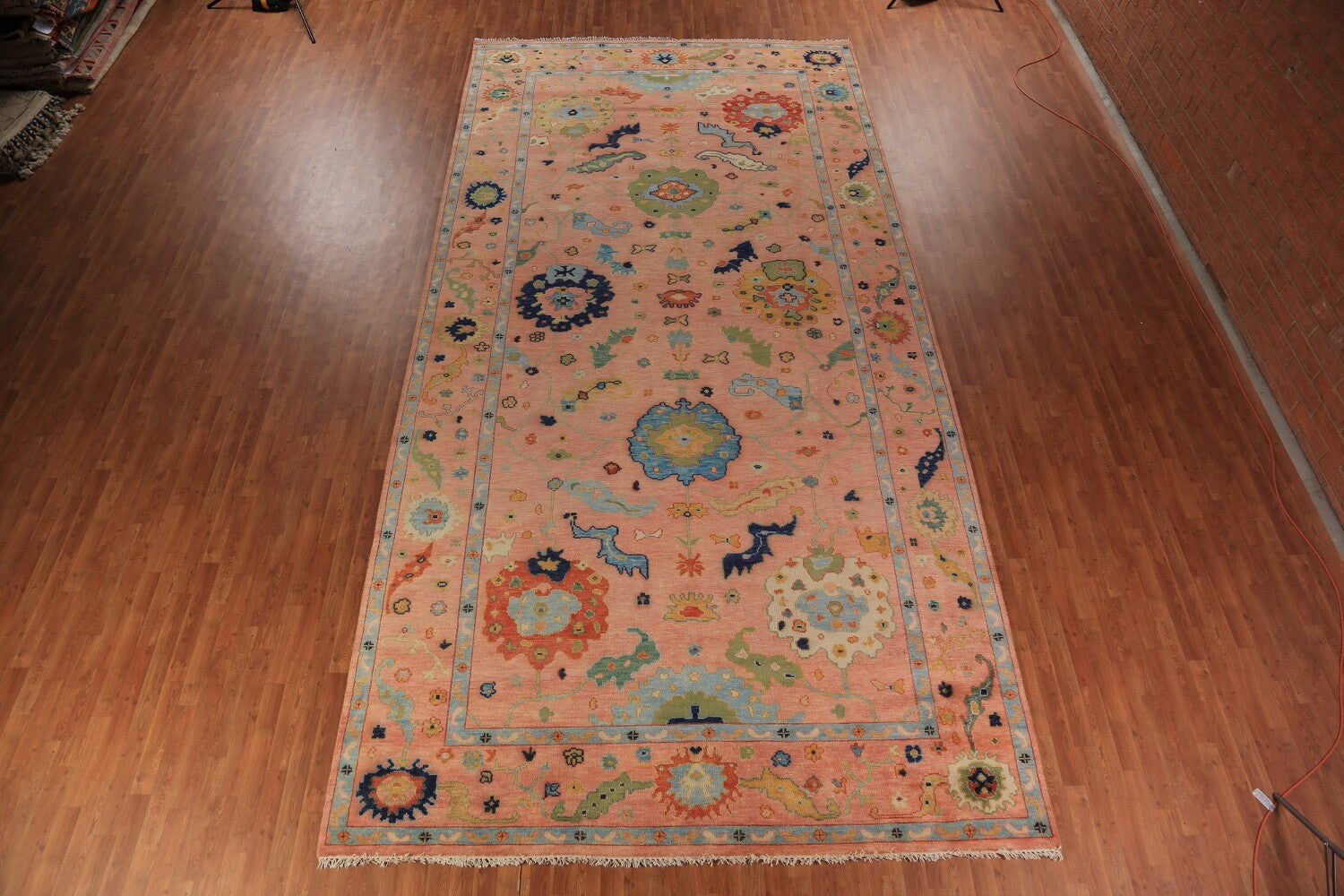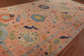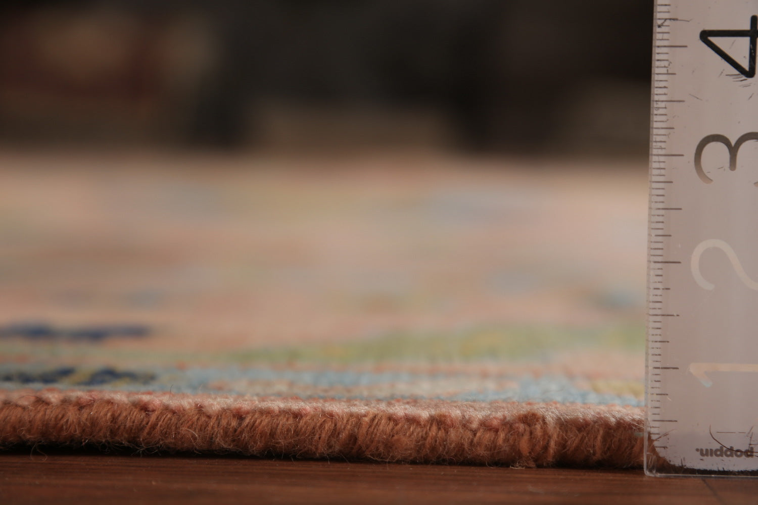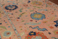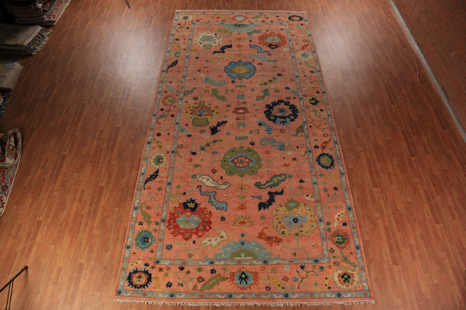 A Beautiful Genuine India Oushak rug is Hand Knotted by skillful weavers in India with 100% Wool Material. This rug is in New, First Quality condition. dimensions are 18' 0'' X 9' 0'' in foot and 549 X 274 in centimeter. the primary color is Coral.