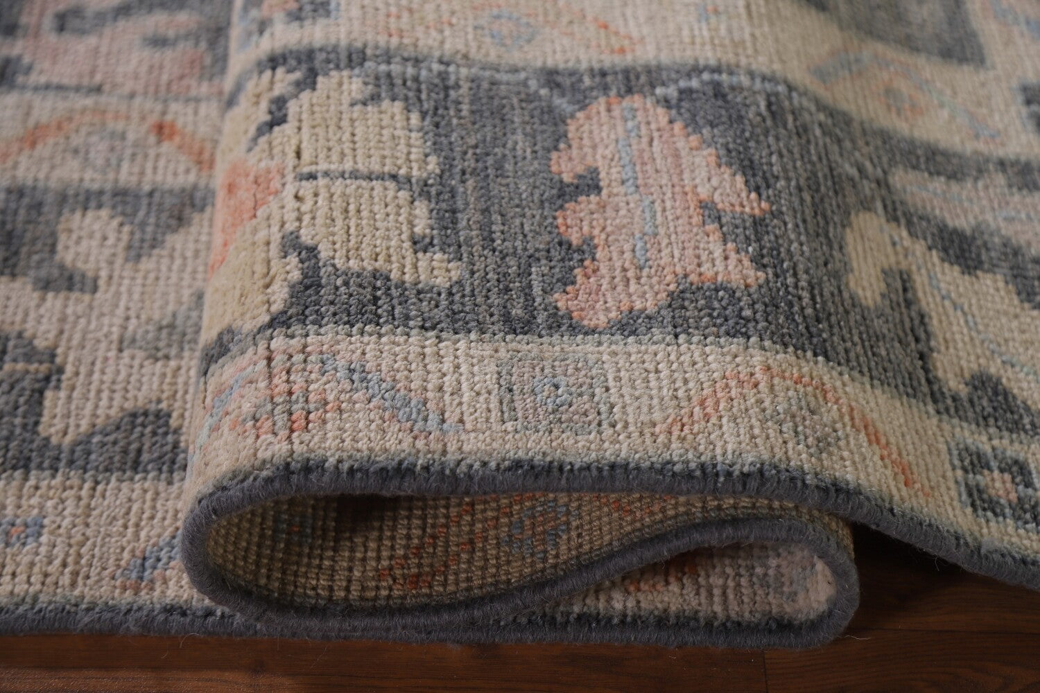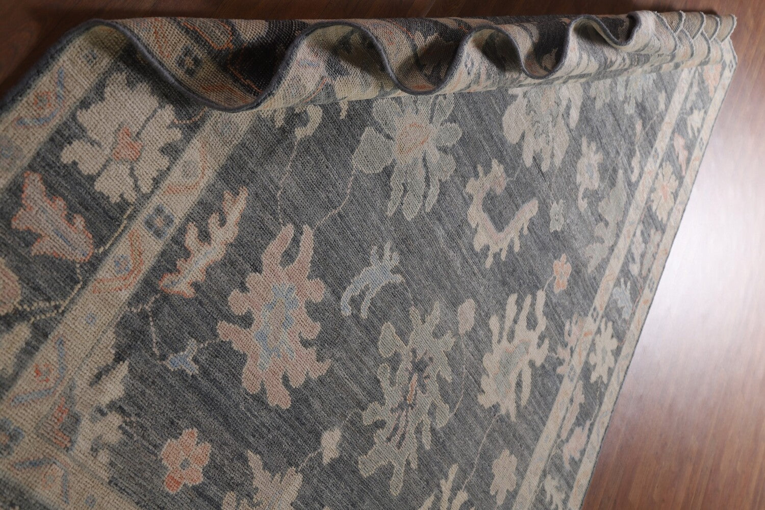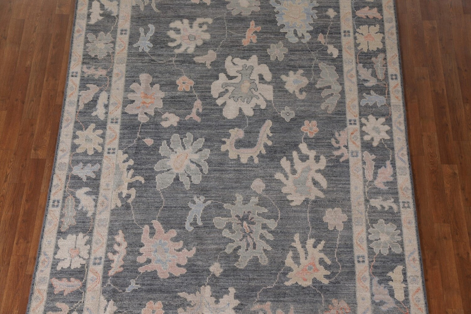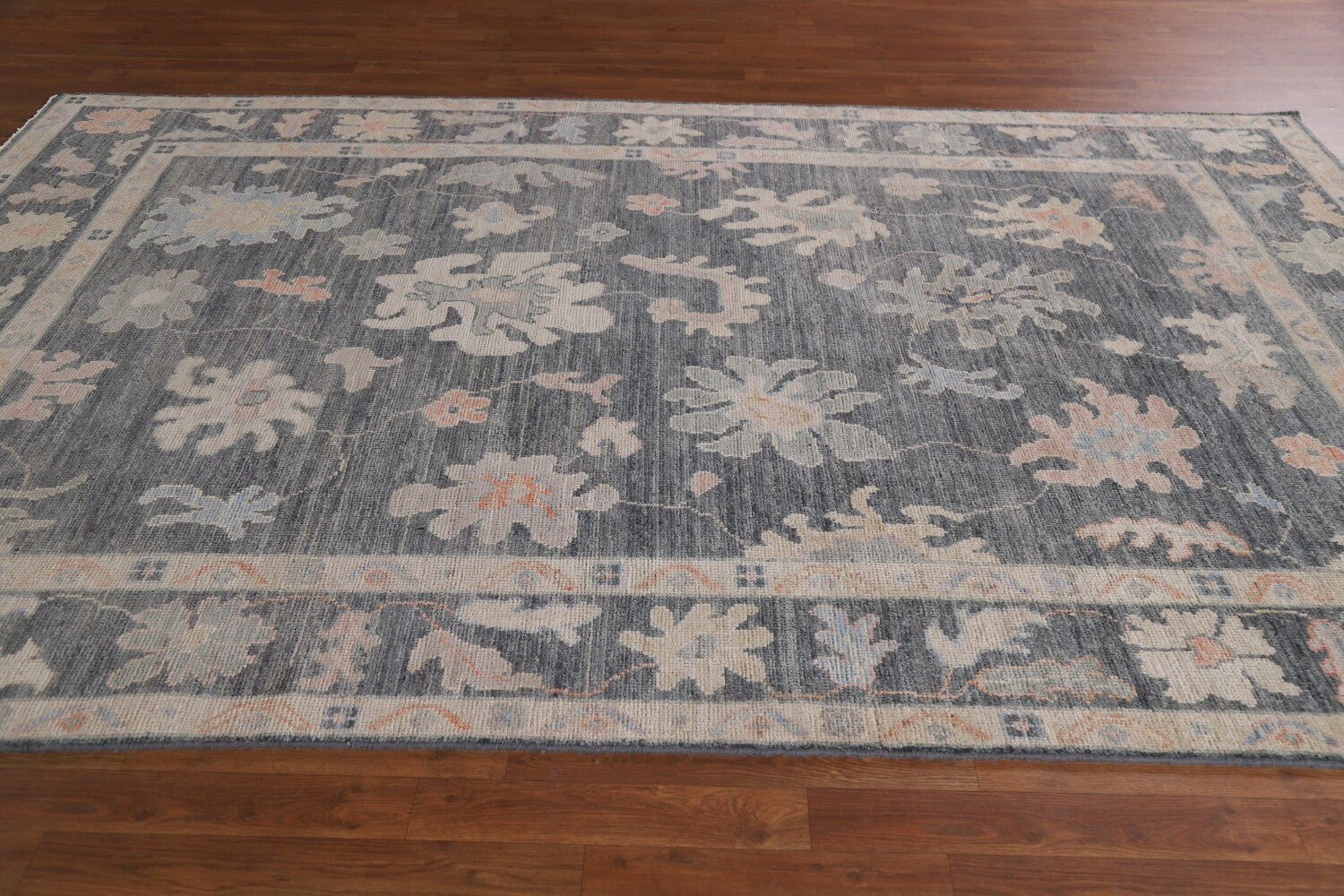 A Beautiful Genuine Turkey Oushak rug is Hand Knotted by skillful weavers in Turkey with 100% Wool Material. This rug is in New, First Quality condition. dimensions are 9' 9'' X 6' 3'' in foot and 297 X 191 in centimeter. the primary color is Greys & Charcoal.