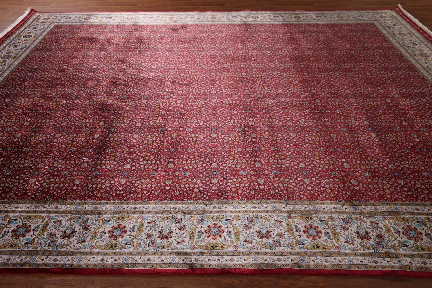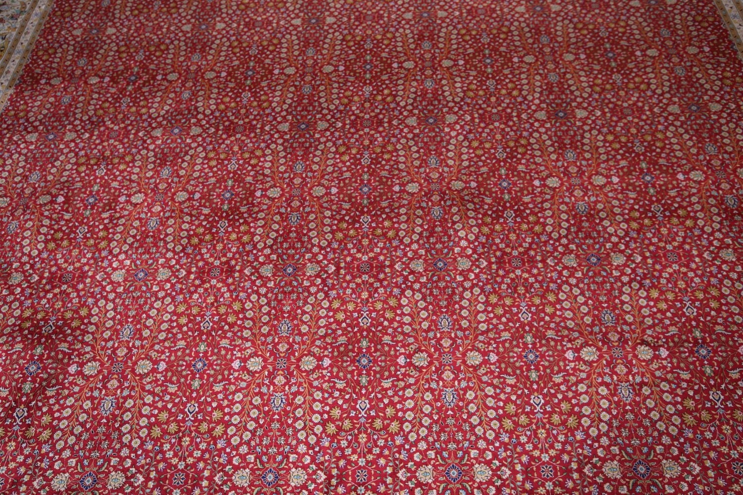 A Beautiful Genuine Turkey Qum rug is Machine Made by skillful weavers in Turkey with 90% Silk - 10% Polyester Material. This rug is in New, First Quality condition. dimensions are 13' 1'' X 9' 10'' in foot and 399 X 300 in centimeter. the primary color is Red.