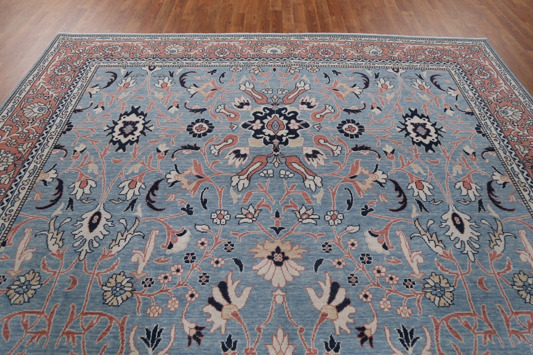 A Beautiful Genuine Turkey Sultanabad (Ziegler) rug is Hand Knotted by skillful weavers in Turkey with 100% Wool Material. This rug is in New, First Quality condition. dimensions are 12' 0'' X 9' 0'' in foot and 366 X 274 in centimeter. the primary color is Navy Blue & Blues.